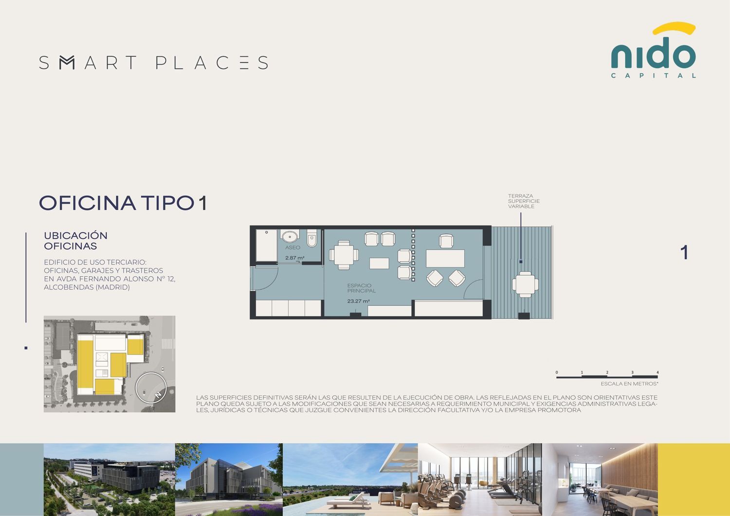 ¡Un lugar, infinitas posibilidades! La oportunidad de invertir y asegurar tu futuro. Grupo Nido Capital presenta Smart Places Alcobendas, una construcción funcional y elegante para combinar trabajo, ocio y deporte, todo en un solo lugar.130 Espacios profesionales con terrazas privadas, 159 plazas de garaje y 40 trasteros en un amplio edificio con extraordinarias zonas comunes: Espacios de coworking y de reuniones, infinity pool, sky bar con visión 360 º de Madrid, espacio gourmet con terraza, spa, sauna, pista de pádel, gimnasio, after work garden, servicio de movilidad eléctrico gratuito y más de 2.500 m2 de zonas ajardinadas. Desde 99.900€ + IVA. La oportunidad perfecta de inversión.En una ubicación privilegiada y estratégica: Al lado de la Universidad Europea de Madrid y cerca de la salida 17 de la Autovía A-1, que te permitirá estar en cuestión de minutos en el centro de Madrid, en el aeropuerto, AZCA y Cuatro Torres Business Area.