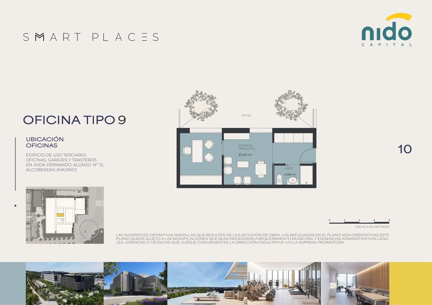¡Un lugar, infinitas posibilidades! La oportunidad de invertir y asegurar tu futuro. Grupo Nido Capital presenta Smart Places Alcobendas, una construcción funcional y elegante para combinar trabajo, ocio y deporte, todo en un solo lugar.130 Espacios profesionales con terrazas privadas, 159 plazas de garaje y 40 trasteros en un amplio edificio con extraordinarias zonas comunes: Espacios de coworking y de reuniones, infinity pool, sky bar con visión 360 º de Madrid, espacio gourmet con terraza, spa, sauna, pista de pádel, gimnasio, after work garden, servicio de movilidad eléctrico gratuito y más de 2.500 m2 de zonas ajardinadas. Desde 99.900€ + IVA. La oportunidad perfecta de inversión.En una ubicación privilegiada y estratégica: Al lado de la Universidad Europea de Madrid y cerca de la salida 17 de la Autovía A-1, que te permitirá estar en cuestión de minutos en el centro de Madrid, en el aeropuerto, AZCA y Cuatro Torres Business Area.