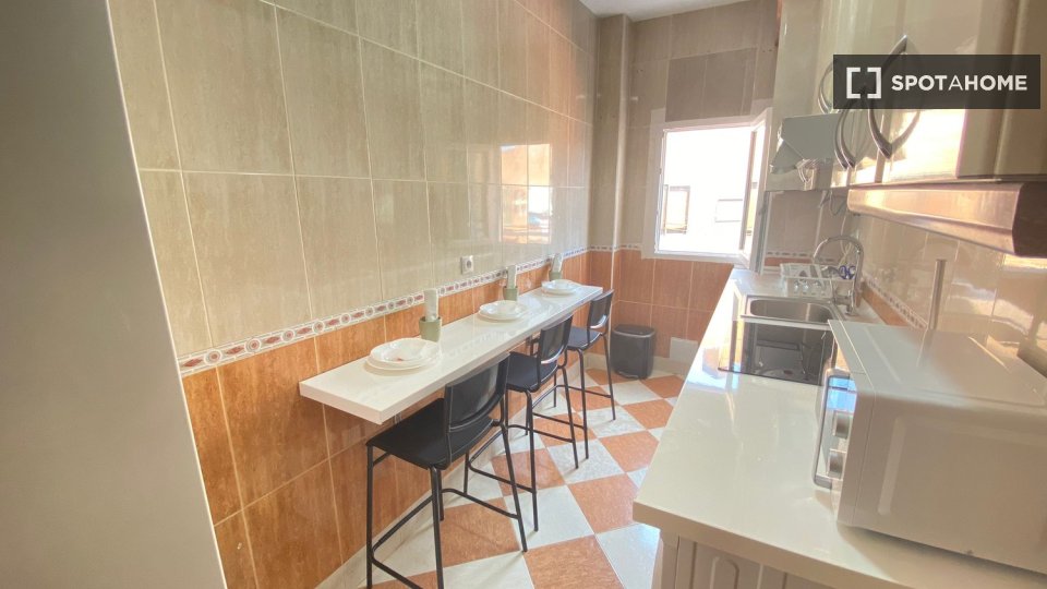 En cuanto a las zonas comunes, la vivienda cuenta con una amplia cocina, amueblada y equipada con todos los electrodomésticos (frigorífico, vitrocerámica, lavadora, microondas) y el menaje necesario (cacerolas, sartenes, cubertería y cristalería). Asimismo, la propiedad cuenta con un Baño completo.