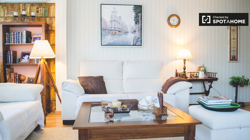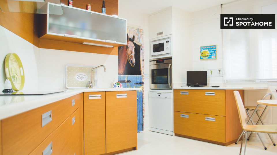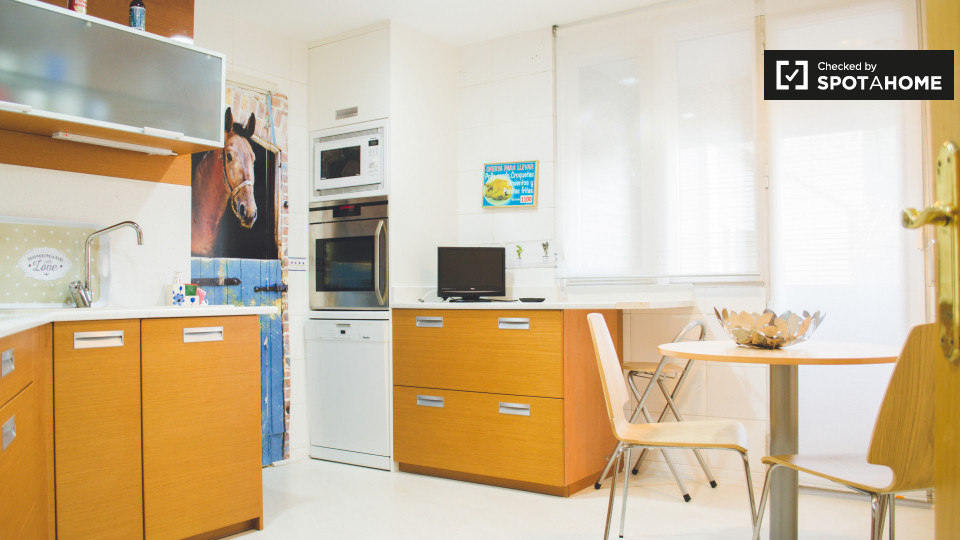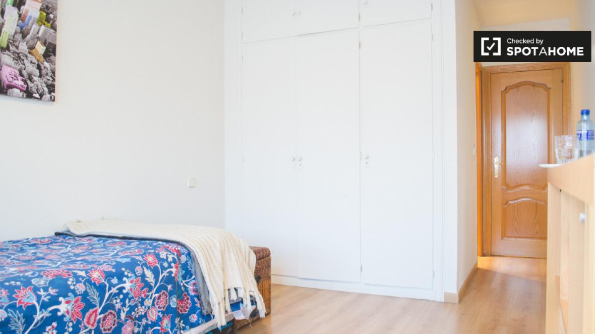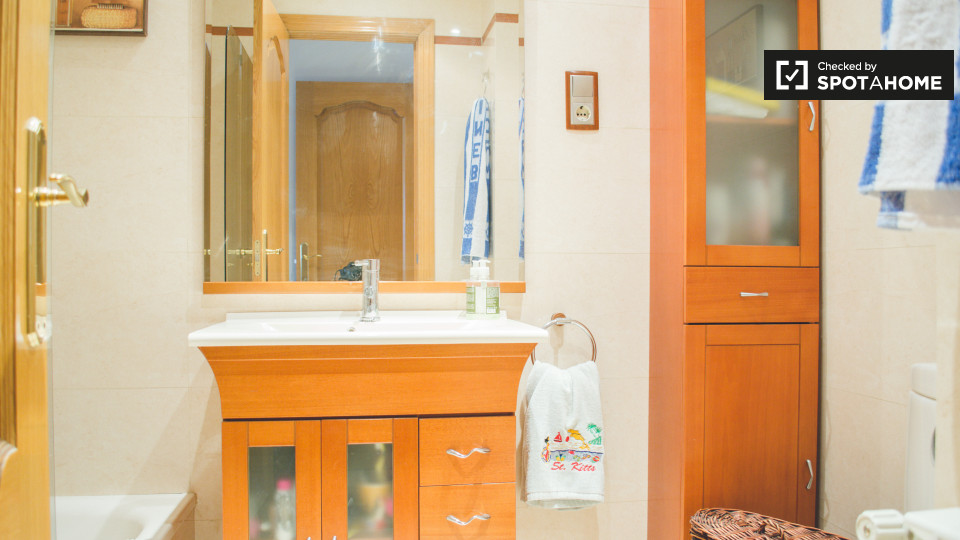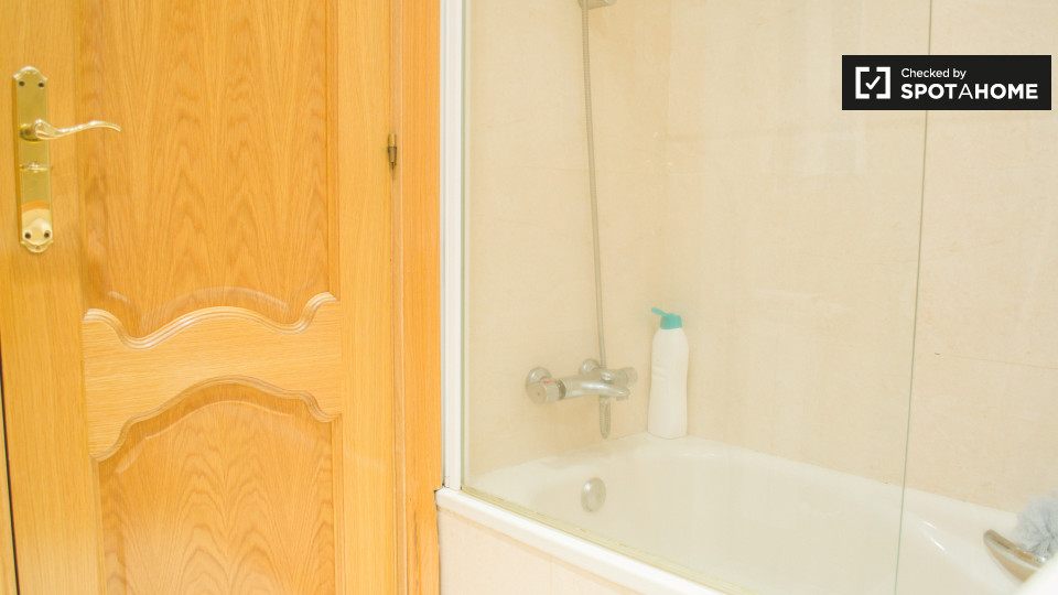 Se alquila una habitación en este apartamento de 2 dormitorios en Ciudad Lineal con una casera de 100 m² y 1 baño privado, una sala de estar y una cocina equipada. El complejo de apartamentos también tiene una piscina, ideal para el verano.