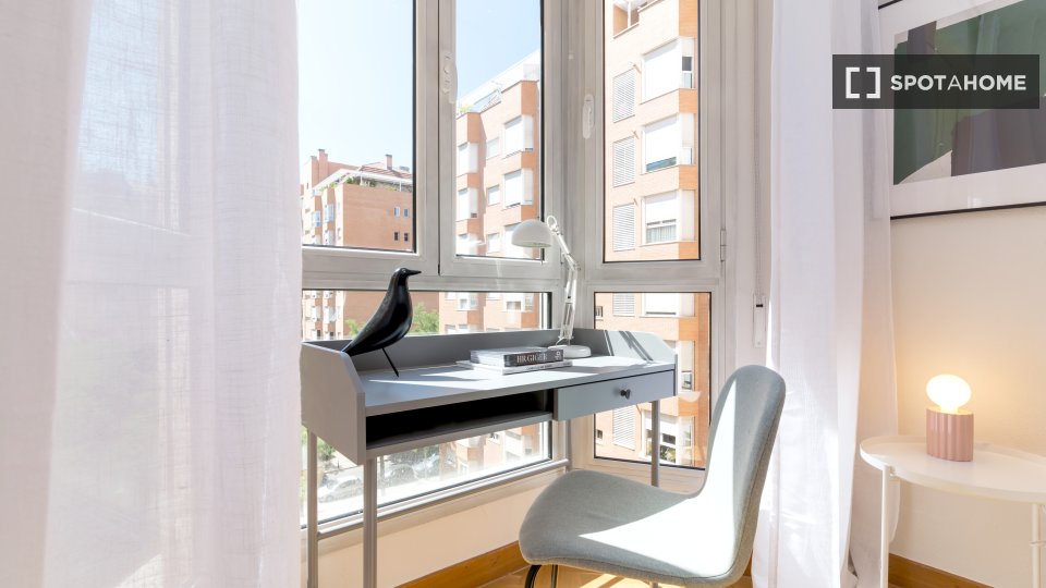 Esta habitación compartida en un apartamento de 4 habitaciones en Casa de Campo, Madrid, ya está disponible para alquilar. La propiedad se entrega completamente amueblada con aire acondicionado central y calefacción de gas natural, lo que ofrece a los inquilinos comodidad y conveniencia. Además, el apartamento incluye comodidades modernas como lavavajillas y secadora, y una cocina equipada para mayor comodidad. El alquiler incluye los gastos de agua, gas, electricidad y wifi.