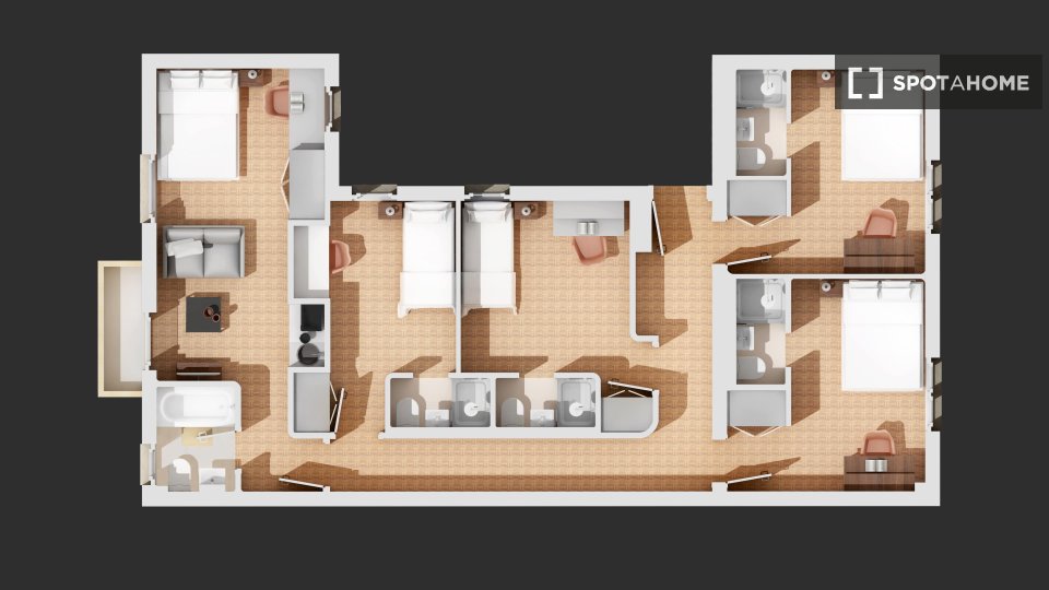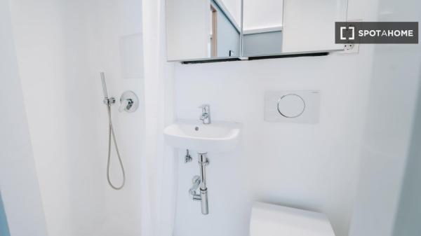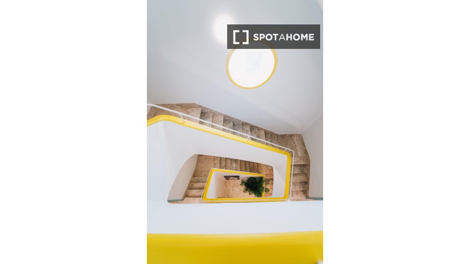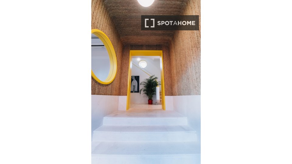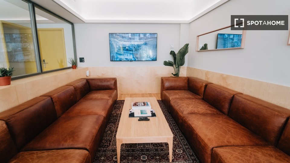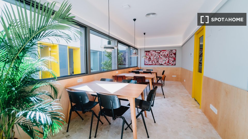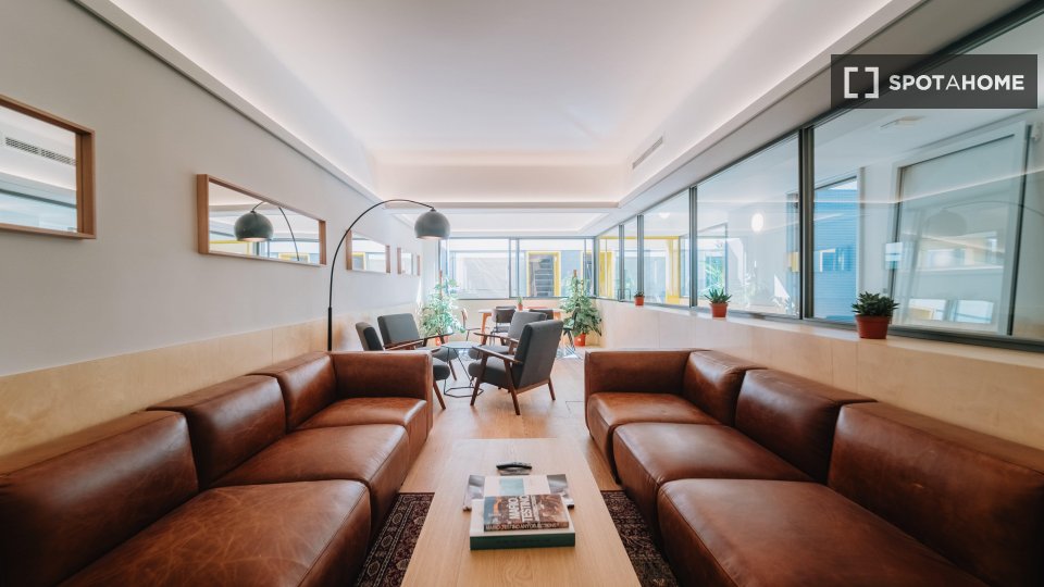 La habitación está ubicada dentro de nuestro edificio de convivencia, lo que significa que tendrá acceso a nuestras amplias áreas comunes, como nuestra sala de televisión/sala de estar, comedor, cocina grande y terraza en la azotea, donde a nuestra comunidad internacional le gusta relajarse y pasar el rato. Se encuentra muy cerca de la estación de metro de Cuatro Caminos, por lo que es muy fácil llegar al centro de la ciudad.