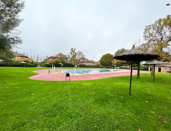 GRAN OPORTUNIDAD! CHALET PAREADO 313 m2 de vivienda y 160 de parcela.Cuenta con 4 plantas, en la planta de entrada amplio recibidor, cocina con doble comunicación y espacio para mesa, salón comedor de 40m2 con chimenea francesa y salida al porche del jardín y parte trasera del mismo. En la misma planta también cuenta con aseo de cortesía y garaje cubierto para 1 coche con ventana. En la primera planta cuenta con cuatro dormitorios, el principal se encuentra en suit con amplia zona de armarios empotrados y vestidos en su interior y baño completo con ventana, muy luminoso. Los dormitorios secundarios se encuentran distribuidos en un pasillo aparte, los tres cuentan con armarios empotrados vestidos y dos baños completos, uno de ellos con ventana. La buhardilla se encuentra totalmente diáfana, muy luminosa con baño adaptado para lavandería donde se ha aprovechado la caída del techo para hacer un cuarto trastero y cuenta además cuenta con terraza solarium muy amplia. El sótano de 77m2 se encuentra totalmente en bruto, con ventanas y tiene su acceso desde el garaje de la misma planta.La vivienda cuenta con suelos de mármol y parquet de roble, carpintería interior de madera y exterior lacada en blanco. Dispone además de Aire acondicionado frio y calor en todas las estancias salvo en la buhardilla.Como añadido la vivienda cuenta con una oficina de 70 m2 totalmente independiente de la vivienda, que dispone de espacios de trabajo, sala independiente y aseo. La misma tiene mucha luz gracias a sus patios ingleses. Ubicado en la Hacienda de Majadahonda, una de las mejores urbanizaciones de la zona que cuenta con 3 piscinas, 2 parques infantiles, pista de tenis, pista polideportiva, campo de futbol de hierba, y dos pistas de padel, además de inmensos jardines. Cerca dispones de todo tipo de servicios, comunicación directa con M-50 y M-503, autobús circular y directo al Intercambiador de Moncloa, Hospital Puerta de Hierro, Farmacias, Colegios, como el Colegio Caude, supermercados, centros comerciales (equinocio y carralero), gimnasios y zonas verdes.¡NO LO DUDES Y VEN A VERLO!