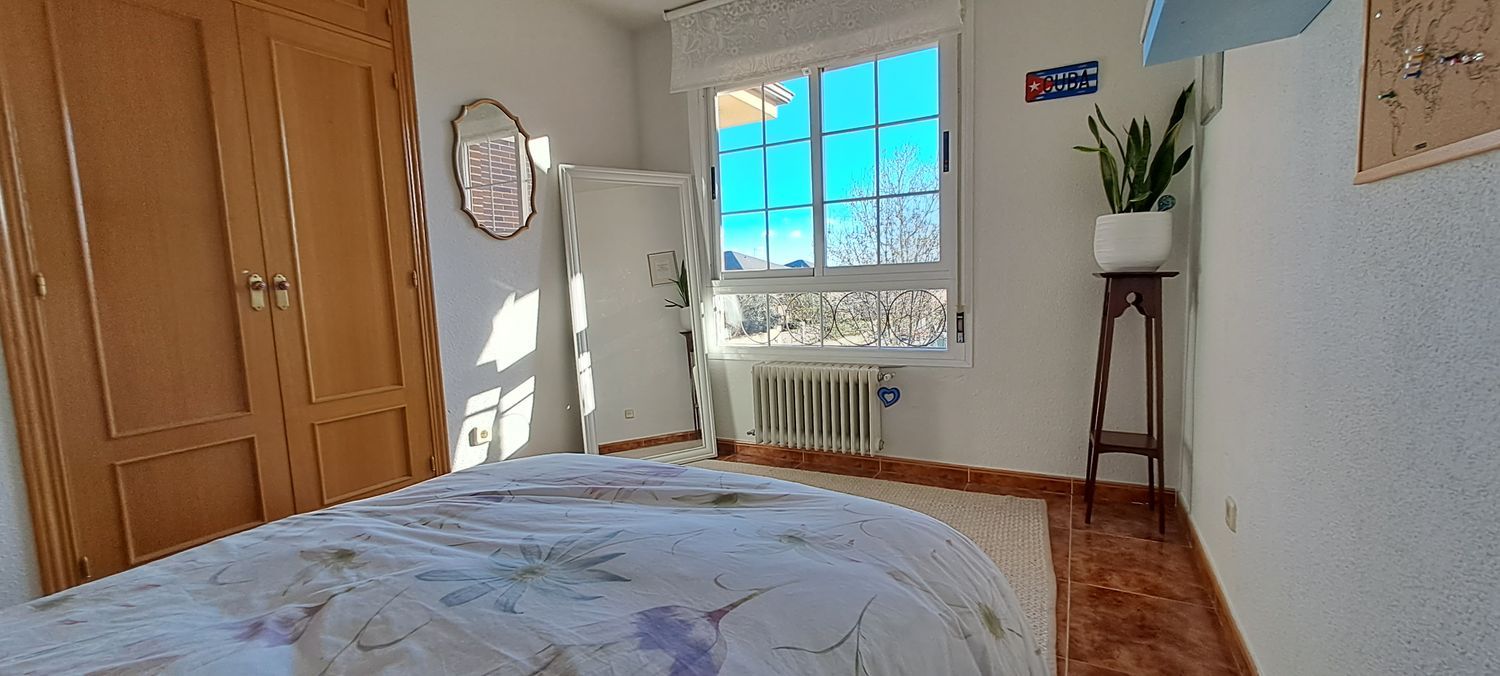 Particular vende casa adosada muy luminosa, con vistas preciosas y una ubicación inmejorable en Moralzaral. Planta calle: hall, salon-comedor de 30m2 con chimenea caset, aseo y cocina con acceso directo al jardín de atrás.Segunda planta: tres grandes dormitorios todos ellas con armarios empotrados, baño familiar. El dormitorio principal cuenta con baño en-suite con placa de ducha.Tercera planta: habitación grande abuhardillada. La casa comparte una piscina grande con 20 vecinos. Hay mucho espacio para aparcar fácilmente varios coches justo enfrente de la casa.Destaca la luminosidad de la casa, las vistas despejadas del monte y la excelente ubicación de la casa. La casa esta muy bien comunicada a pocos minutos andando de los colegios públicos y concertados, Mercadona, el centro del pueblo y todos sus servicios. La parada del autobús para ir directo tanto a Moncloa como a Plaza Castilla está también a pocos minutos andando.Memoria de calidades: fachada en ladrillo visto, cubierta tradicional de pizarra, asilamiento térmico y acústico, carpintería exterior de aluminio y persianas de p. v. c. doble acristalamiento con cámara de aire, carpintería interior de roble macizo, suelo porcelánico.