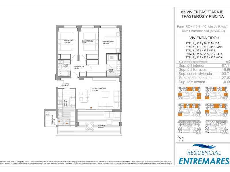 Alborea Real Estate gestiona en Rivas Vaciamadrid el Residencial Entremares, 65 viviendas exclusivas de 3 y 4 dormitorios dotadas de grandes terrazas, 2 plazas de garaje y trastero que se desarrolla en régimen de cooperativa.La promoción se encuentra en el Cristo de Rivas, una de las zonas de mayor crecimiento y mejor valoradas del municipio, inspirada en la estrategia de desarrollo urbano sostenible de Rivas.La zona está dotada de parques, supermercados y colegios. Un futuro centro deportivo, centro de salud con especialidades y un centro de urgencias completarán sus equipamientos. Cuenta con transporte público de autobuses y la línea 9 de metro. Muy importante es el nuevo acceso directo a Rivas desde la M-50 que estará finalizado para el 2023.Una construcción cerrada con planta baja, más 5 alturas y ático con zona común interior ajardinada, piscina y local comunitario.Las viviendas destacan por sus excelentes calidades. Con doble orientación y ventilación cruzada, dispone de aerotermia, para calefacción y refrigeración por suelo radiante. Eficiencia energética A que supondrá un gran ahorro energético.Las cocinas amuebladas con electrodomésticos, carpintería interior lacada en blanco, suelos de gres imitación madera, tabiques de doble placa de yeso con aislante, pintura lisa plástica…. son algunas de los acabados de nuestras viviendas.Las obras están iniciadas y la entrega de las viviendas está prevista para Abril de 2025.La promoción está ocupada al 70% quedando viviendas disponibles a la venta. No te quedes sin la tuya.Contacta con nosotros, estaremos encantados de asesorarte en nuestra oficina de información y venta, con cita previa.