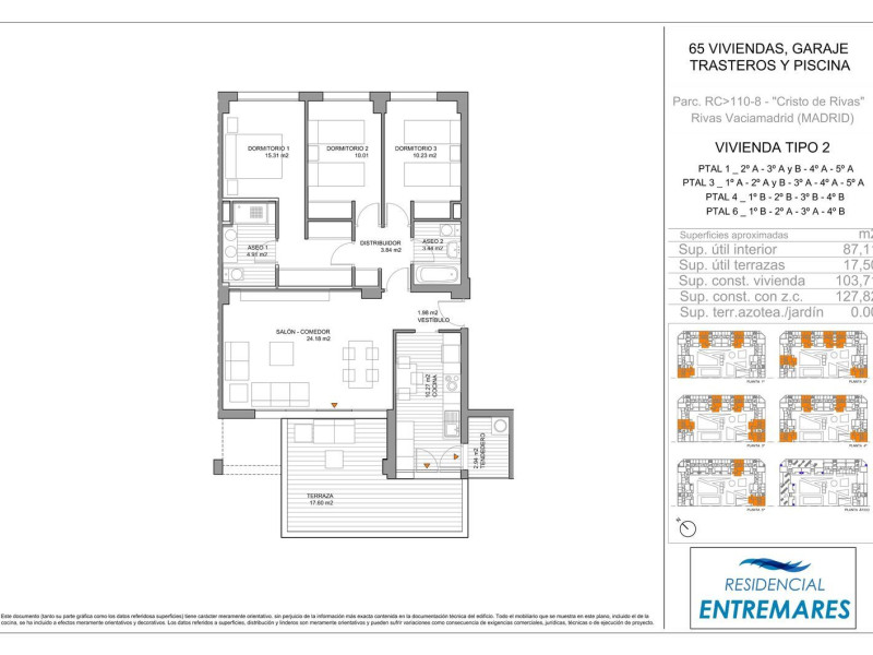 Alborea Real Estate gestiona en Rivas Vaciamadrid el Residencial Entremares, 65 viviendas exclusivas de 3 y 4 dormitorios dotadas de grandes terrazas, 2 plazas de garaje y trastero que se desarrolla en régimen de cooperativa.La promoción se encuentra en el Cristo de Rivas, una de las zonas de mayor crecimiento y mejor valoradas del municipio, inspirada en la estrategia de desarrollo urbano sostenible de Rivas.La zona está dotada de parques, supermercados y colegios. Un futuro centro deportivo, centro de salud con especialidades y un centro de urgencias completarán sus equipamientos. Cuenta con transporte público de autobuses y la línea 9 de metro. Muy importante es el nuevo acceso directo a Rivas desde la M-50 que estará finalizado para el 2023.Una construcción cerrada con planta baja, más 5 alturas y ático con zona común interior ajardinada, piscina y local comunitario.Las viviendas destacan por sus excelentes calidades. Con doble orientación y ventilación cruzada, dispone de aerotermia, para calefacción y refrigeración por suelo radiante. Eficiencia energética A que supondrá un gran ahorro energético.Las cocinas amuebladas con electrodomésticos, carpintería interior lacada en blanco, suelos de gres imitación madera, tabiques de doble placa de yeso con aislante, pintura lisa plástica…. son algunas de los acabados de nuestras viviendas.Las obras están iniciadas y la entrega de las viviendas está prevista para Abril de 2025.La promoción está ocupada al 70% quedando viviendas disponibles a la venta. No te quedes sin la tuya.Contacta con nosotros, estaremos encantados de asesorarte en nuestra oficina de información y venta, con cita previa.