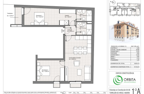 OBRAS INICIADAS. 70% VENDIDO. Edificio de 13 viviendas y 1 oficina en planta baja, en plena zona centro de Torrejón, de 1 y 2 dormitorios, con trastero y alguna de ellas con plaza de garaje.Alto grado de eficiencia y ahorro energético. Climatización mediante sistema centralizado de suelo radiante y refrescante por aerotermia.La fecha de entrega de llaves está prevista para el primer trimestre de 2024.Proyecto de viviendas libres de nueva construcción que promueve Órbita y comercializa Vigermo en régimen de promoción directa a precio cerrado (no cooperativa).
