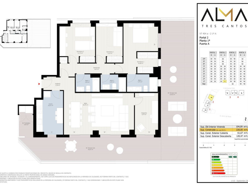 La vivienda tiene dos plazas de garaje incluidas en el precio.ALMA DE TRES CANTOS EL RESIDENCIAL DE TUS SUEÑOS!Volvemos a Tres Cantos estrenando nuestra nueva promoción pensada para cubrir todas tus necesidades y hacer realidad tus sueños. Urbanización cerrada, con unas áreas comunes exclusivas, formada por 77 viviendas de 2 a 5 dormitorios, todas con espectaculares terrazas para disfrutar del aire libre. Ubicada en Nuevo Tres Cantos, integrada en el Parque Regional de la Cuenca Alta del Manzanares, el mayor espacio natural protegido de la región. Vive en un entorno natural y a tan solo 21 Km de Madrid. Muy bien comunicada a nivel de accesos con conexión directa a la M-607 (Autovia de Colmenar Viejo) a poco más de 5 minutos en coche. También se puede llegar a la capital con la línea C4 de Tren y varias lineas de autobuses urbanos e interurbanos.Para que la experiencia de adquirir tu vivienda de obra nueva esté completamente adaptada a tus necesidades. Personaliza tu vivienda eligiendo entre los distintos acabados de que dispone la promoción.SERVICIOS:Viviendas de 2, 3, 4 y 5 dormitorios.Bajos con jardín de 3 y 4 dormitorios.Piscinas de cloración salina con solárium.Gimnasios equipados y climatizados con zona de yoga y con acceso a terrazas para actividades al exterior.Area de juegos infantiles. Huerto Urbano.Zona lavado coches. Sala multifuncional Coworking-gourmet. Pista de Padel acristalada y con iluminación nocturna.Aerotermia individual como energía renovable.