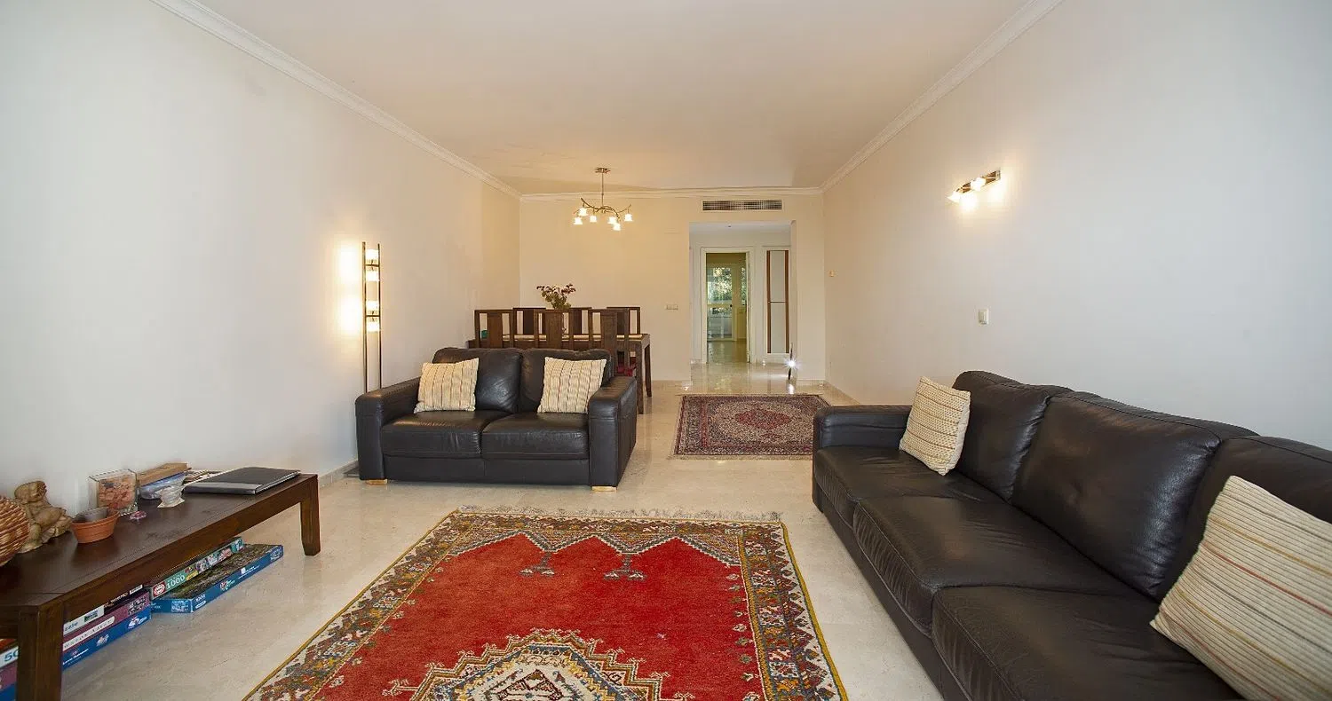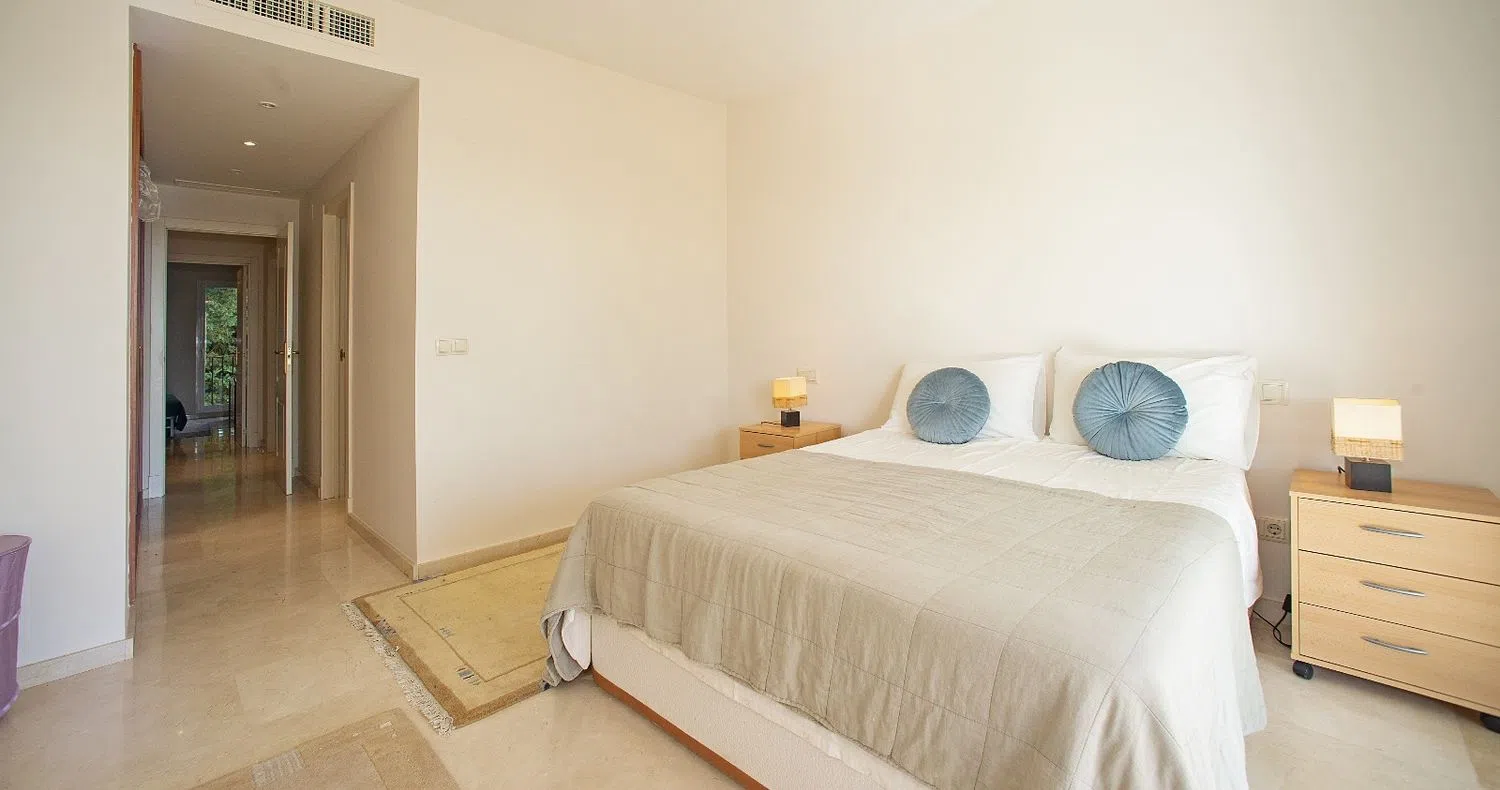 IMPRESIONANTE APARTAMENTO DE 2 DORMITORIOS CON VISTAS AL MAR Y A LA MONTAÑA EN ALTOS DE LA QUINTA II - BENAHAVÍS Excepcional relación calidad-precio en este apartamento en planta baja en una comunidad privada cerrada con seguridad nocturna. Este espacioso apartamento en planta baja cuenta con dos dormitorios/dos baños y acceso a una gran terraza cubierta desde el salón y el dormitorio principal. Desde la agradable terraza cubierta, que se puede utilizar en cualquier época del año, se tienen preciosas vistas a la piscina, a la agradable montaña y al mar. El precio incluye un trastero grande y una plaza de aparcamiento cubierta. El apartamento está situado en una urbanización cerrada y cuenta con una cocina totalmente equipada con encimera de granito y electrodomésticos Bosch, lavadero con lavadora y secadora, suelo de mármol crema marfil en el salón-comedor, pasillos y dormitorios. Aire acondicionado con control individual, armarios empotrados y caja fuerte.