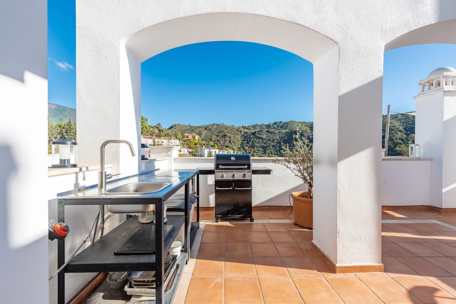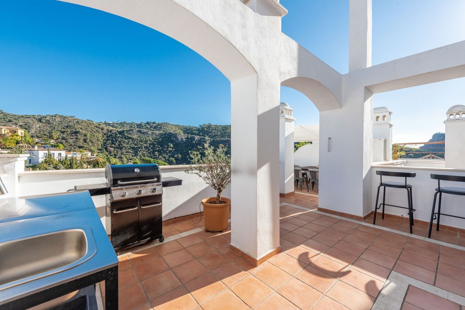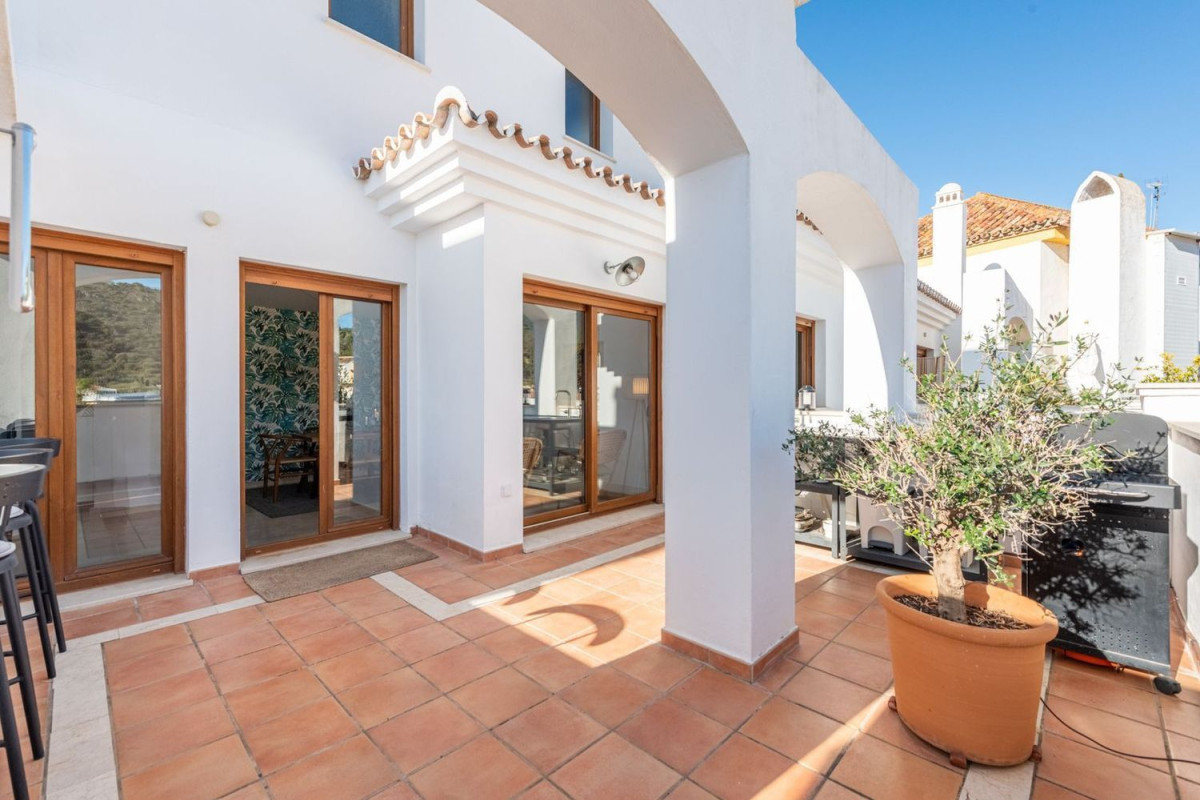 Descubra la serenidad del encantador pueblo de Benahavís en este excepcional apartamento de 3 dormitorios. Esta espaciosa casa combina a la perfección las comodidades modernas con un entorno idílico. La cocina totalmente equipada y el amplio salón proporcionan un espacio acogedor para la vida cotidiana. Los tres luminosos dormitorios ofrecen privacidad y comodidad para toda la familia.Lo más destacado de esta propiedad es su espectacular terraza de 80 metros cuadrados, dividida en dos tramos independientes. Uno perfecto para cenar al aire libre y hacer barbacoas, mientras que el otro ofrece un espacio más íntimo para relajarse con vistas panorámicas de las montañas circundantes. Esta dualidad hace que la terraza sea versátil y perfecta para todas las ocasiones. Este complejo ofrece, sólo una planta encima de la propiedad, una piscina comunitaria en la azotea y un solárium donde disfrutar de vistas panorámicas de las montañas que rodean el pueblo.Además, la ubicación estratégica del apartamento lo sitúa a poca distancia de restaurantes de renombre y tiendas locales. La inclusión de una plaza de aparcamiento subterráneo privado garantiza comodidad y seguridad para sus vehículos, desde este nivel tiene un ascensor que le llevará directamente a la puerta de entrada.Esta propiedad representa una oportunidad única para quienes buscan un estilo de vida mediterráneo sin compromisos. Sumérgete en la belleza de Benahavís y haz de este apartamento tu nuevo hogar. ¡Te invitamos a descubrir la armonía y la elegancia en cada rincón de este oasis!
