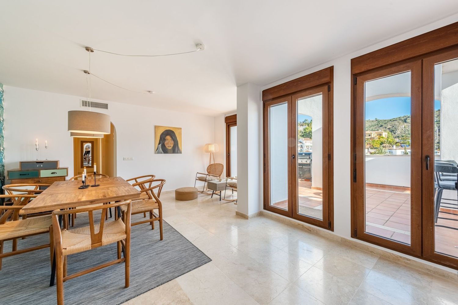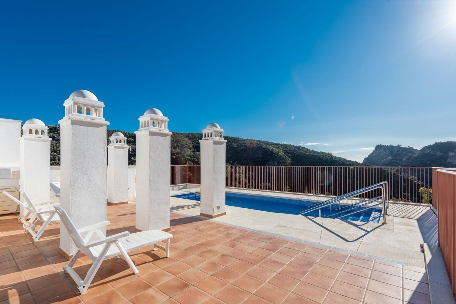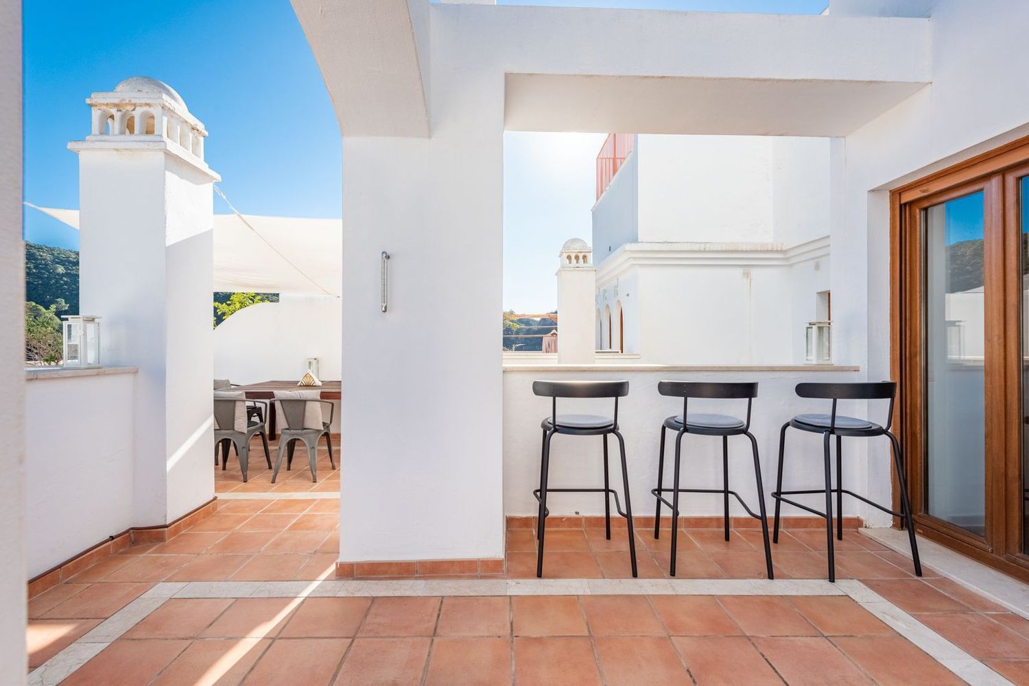 Descubra la serenidad del encantador pueblo de Benahavís en este excepcional apartamento de 3 dormitorios. Esta espaciosa casa combina a la perfección las comodidades modernas con un entorno idílico. La cocina totalmente equipada y el amplio salón proporcionan un espacio acogedor para la vida cotidiana. Los tres luminosos dormitorios ofrecen privacidad y comodidad para toda la familia.Lo más destacado de esta propiedad es su espectacular terraza de 80 metros cuadrados, dividida en dos tramos independientes. Uno perfecto para cenar al aire libre y hacer barbacoas, mientras que el otro ofrece un espacio más íntimo para relajarse con vistas panorámicas de las montañas circundantes. Esta dualidad hace que la terraza sea versátil y perfecta para todas las ocasiones. Este complejo ofrece, sólo una planta encima de la propiedad, una piscina comunitaria en la azotea y un solárium donde disfrutar de vistas panorámicas de las montañas que rodean el pueblo.Además, la ubicación estratégica del apartamento lo sitúa a poca distancia de restaurantes de renombre y tiendas locales. La inclusión de una plaza de aparcamiento subterráneo privado garantiza comodidad y seguridad para sus vehículos, desde este nivel tiene un ascensor que le llevará directamente a la puerta de entrada.Esta propiedad representa una oportunidad única para quienes buscan un estilo de vida mediterráneo sin compromisos. Sumérgete en la belleza de Benahavís y haz de este apartamento tu nuevo hogar. ¡Te invitamos a descubrir la armonía y la elegancia en cada rincón de este oasis!