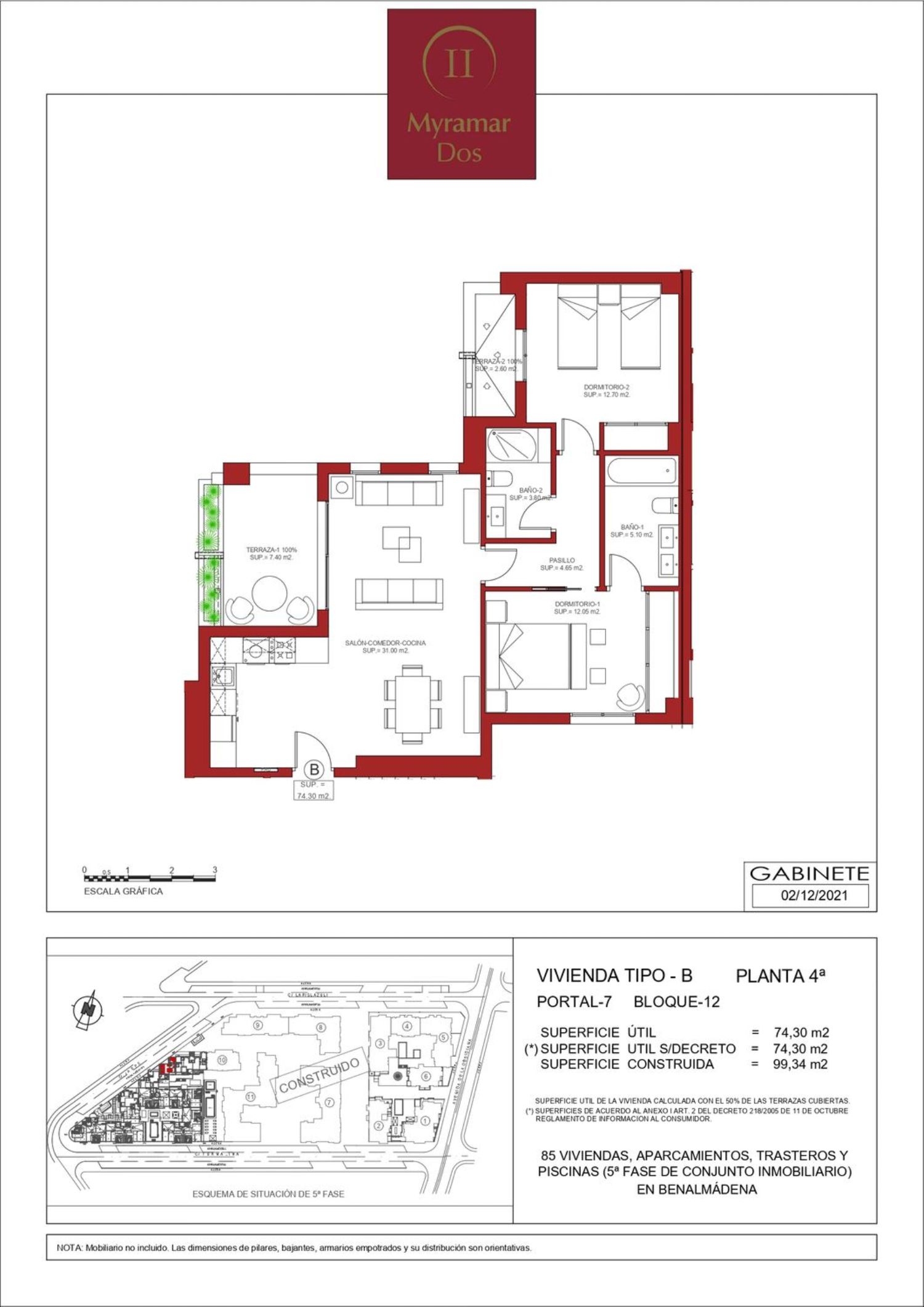 Última fase en venta en Myramar Dos con amplias viviendas de 1, 2, 3 y 4, espectaculares zonas comunes con piscinas y jardines.Descubra un Oasis junto a Málaga y las principales ciudades de la Costa del Sol, donde desconectar y disfrutar en una vivienda luminosa para residir todo el año, o disfrutar de sus vacaciones, podrá elegir la distribución que mejor se adapte a su familia: cocinas integradas en salón o independientes, bajos con patios, pisos con soleadas terrazas y en las últimas plantas viviendas con solárium.Acabados de calidad en los que destaca el suelo de tarima de madera, armarios empotrados, cocinas amuebladas y equipadas, dos plazas de parking y trastero incluido en precio. Zona Residencial consolidada en Arroyo de la Miel, Benalmádena, junto a todo tipo de servicios: centro de salud, hospitales, colegios, supermercados, tren de cercanías, con fácil y directo acceso a la autovía.Nuestra Urbanización no le dejará indiferente. No dude en concertar visita con nuestro equipo de ventas para ver piso piloto y pasear por sus zonas comunes Fase 5 en construcción, entrega cuarto trimestre 2024.En cumplimiento del Decreto de la junta de Andalucía 218/2005, del 11 de octubre, los gastos y tributos que deberá pagar el comprador por la compraventa son I. V. A. , aranceles de Notario y de Registro de la propiedad no incluidos en el precio indicado.