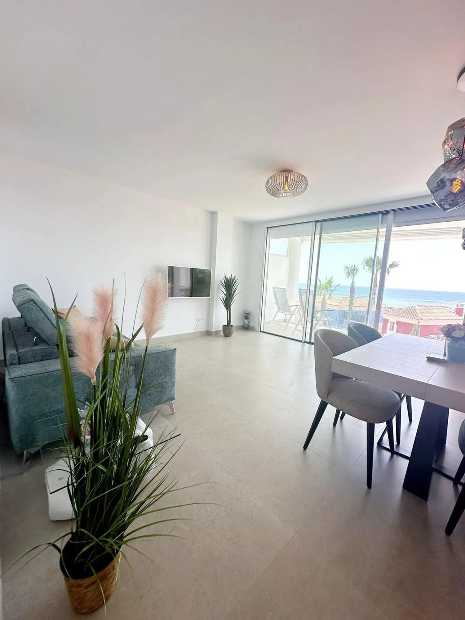 Dos amplios dormitorios, dos baños, salón con fantásticas vistas al mar y a la costa de Fuengirola. Una deliciosa cocina moderna con todos los electrodomésticos Bosch. El apartamento tiene una gran terraza con espacio tanto para una mesa de comedor como para una zona acogedora. El apartamento dispone de aire acondicionado frío/calor y se vende con dos plazas de aparcamiento interiores y un amplio trastero. Además, el apartamento dispone de persianas eléctricas en las ventanas y un bonito toldo eléctrico nuevo en la terraza. El edificio fue terminado en 2023 y dispone de ascensor. El ascensor te lleva a una preciosa piscina infinita en el séptimo piso con vistas al mar, Fuengirola y la montaña. La vista al mar más hermosa. Piscina en el 7mo piso con una vista majestuosa Cerca de la playa, tiendas, campo de golf y varios restaurantes. Persianas eléctricas para las ventanas con mando a distancia. Parasoles eléctricos que se pueden accionar independientemente unos de otros mediante un mando a distancia. Refrigeración y calefacción mediante dos unidades de aire acondicionado independientes. Todo el equipamiento es de Bosch, como lavadora, lavavajillas, microondas y horno. Dos plazas de aparcamiento privadas en un garaje privado cubierto y cerrado que se puede abrir mediante los dos mandos a distancia suministrados. Acabado de lujo Dos dormitorios grandes que se pueden convertir en tres. A 20 minutos del Aeropuerto de Málaga Todo lo que está cerca: playa compras farmacia Restaurantes transporte público Escuela aeropuerto de málaga.
