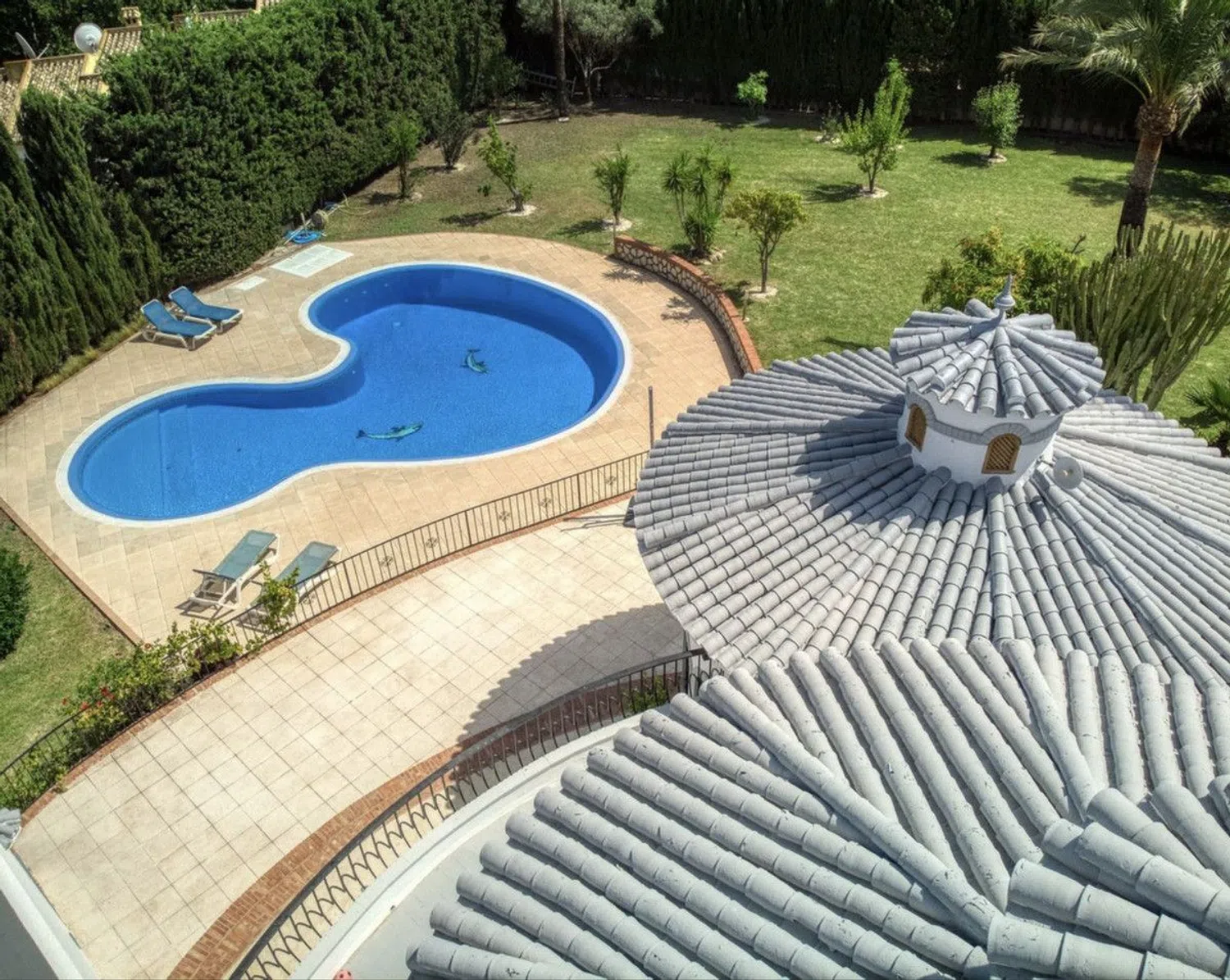 Esta lujosa villa, una joya escondida, se encuentra a poca distancia de las vibrantes calles de Arroyo de la Miel en el centro de Benalmádena. La propiedad cuenta con una extraordinaria parcela de más de 2000 m², con una zona exterior excepcional con una amplia piscina. Esta propiedad orientada al sur es un santuario iluminado por el sol. Resumen El pasillo de entrada se abre directamente al impresionante jardín y conduce a una amplia y luminosa sala de estar y comedor. La cocina clásica, adornada con encimeras de granito y mosaicos, conduce a un encantador rincón para desayunar, perfecto para el desayuno y la tarde. La villa incluye 3 dormitorios, 3 baños y una cuarta habitación versátil que se puede adaptar a sus necesidades, con un tamaño total de 454m2. Además, la propiedad incluye un estudio independiente para alojamiento de huéspedes. Afuera Salga para explorar los vastos espacios al aire libre que ofrece esta villa. La terraza, que se extiende desde la casa hasta la piscina y el jardín, ofrece el lugar perfecto para relajarse y disfrutar del sol español. El amplio jardín ofrece un lienzo en blanco para sus sueños al aire libre, ya sea tomando el sol, jugando o simplemente relajándose. La lujosa piscina privada, bañada por la luz del sol todo el día, añade un toque de elegancia a su oasis al aire libre. Este espacio es verdaderamente un paraíso para los amantes del aire libre. Ubicación Situada en la animada Benalmádena, las animadas tiendas de la zona, la vibrante vida nocturna y el variado entretenimiento garantizan que siempre haya algo que hacer. Escuelas de renombre y excelentes conexiones de transporte lo convierten en un lugar ideal para familias. Vivir en Benalmádena ofrece más que solo un hogar; se trata de adoptar un estilo de vida alegre y aventurero. Aeropuertos Convenientemente cerca de Benalmádena, el aeropuerto de Málaga sirve como puerta de entrada a destinos globales.