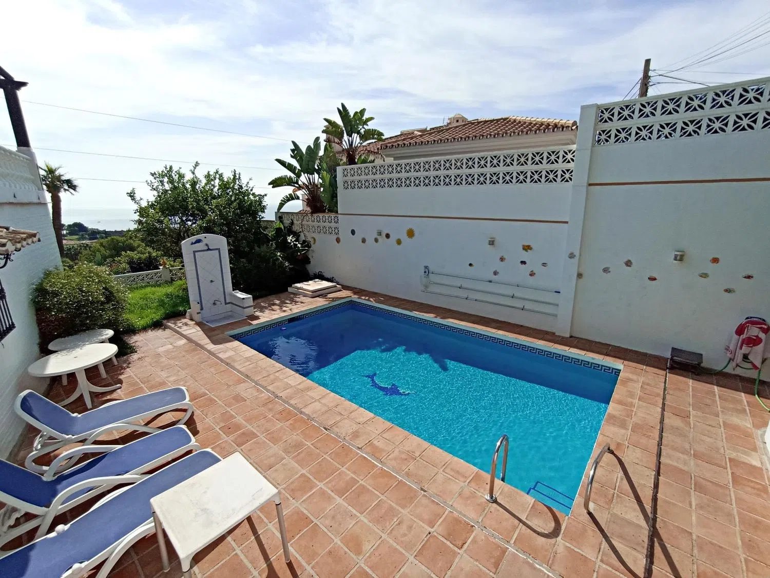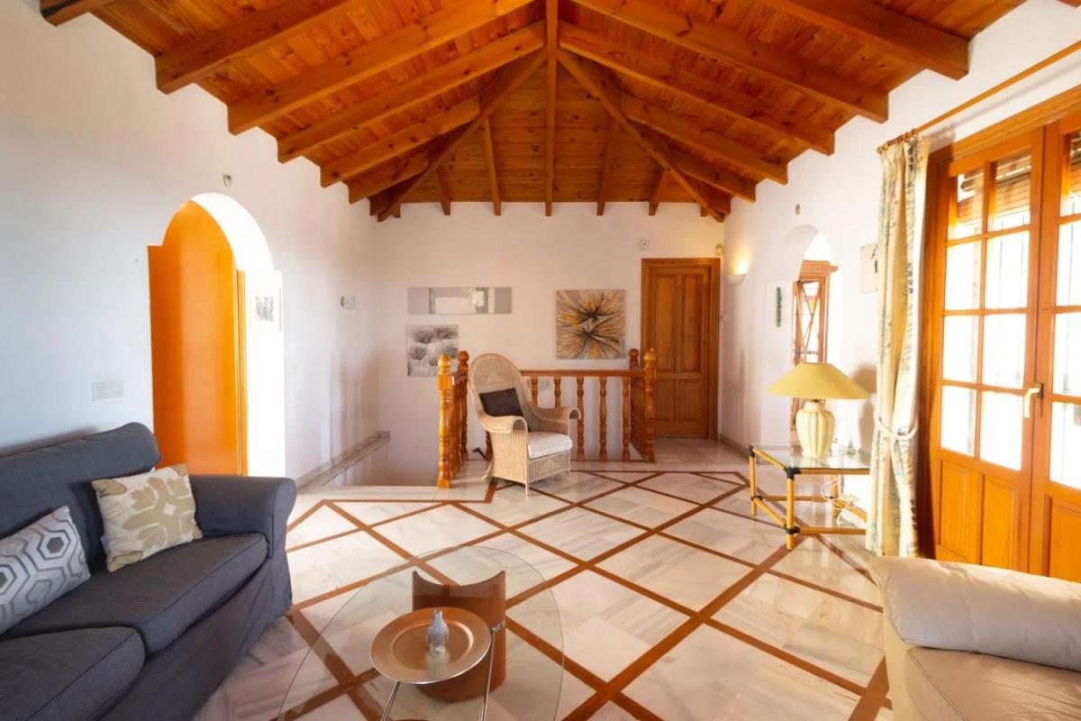 Esta excelente villa de estilo andaluz, está situada en la conocida Urbanización La Capellanía, muy cerca de la playa y con panorámicas vistas a la costa. La vivienda está distribuida en 2 plantas, muy luminosa y orientación sur. Tiene parking techado. Desde la entrada principal se accede a la planta alta, dispone de salón con chimenea y comedor independiente - tipo office con unos techos artesanados muy cuidados. Desde este nivel se accede a una gran terraza cubierta con espectaculares vistas al mar. La cocina está completamente equipada, dispone de una terraza independiente orientada a sureste para desayunar con el primer sol de la mañana; en esta planta hay aseo y armario empotrado en el recibidor. En la planta inferior se encuentran los dormitorios, y la zona de lavandería. El dormitorio principal tiene buen tamaño, dispone de una sala con salida al jardín, 2 cuartos de baño completos en suite, uno con ducha y otro con bañera, además de varios armarios empotrados. Una habitación doble con armarios empotrados, salida al jardín y baño en suite con bañera; y también un dormitorio simple con armario empotrado y un baño completo a su lado: la habitación de lavandería tiene salida a un porche en el jardín, todas las habitaciones tienen orientación sur y vistas al mar. La villa está rodeada de jardines, en el nivel inferior se encuentra la piscina, con jardines y espacio para hamacas, además cuenta con trastero para las herramientas. Esta urbanización esta a 5 minutos de la autovía, a 20 minutos del Aeropuerto Internacional de Málaga y a 40 minutos de Puerto Banús. Hay zona comercial muy próxima. The British collegue y el Colegio internacional Torrequebrada a menos de 15 minutos. ** En cumplimiento del Decreto de la Junta de Andalucía 2182005 del 11 de octubre, se informa al cliente que los gastos notariales, registrales, IVA, ITP y todos aquellos gastos inherentes a la compra no están incluidos en el precio **.
