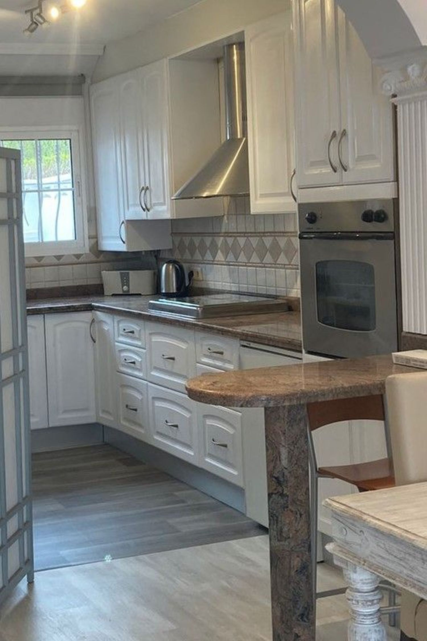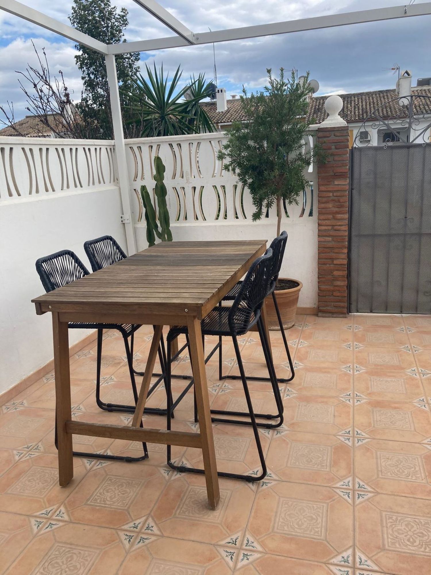 Estupendo adosado a tan solo 5 min andando de todos los servicios, transporte público y unos cuantos privados ycolegios públicos cercanos. A 20 min andando de la playa. El centro comercial Diana está a solo 3 min.distancia. La casa tiene mucha luz natural, es amplia y luminosa, decorada con mucho gusto.Tiene una cocina totalmente equipada, chimenea, ventanas de doble acristalamiento y aire acondicionado en el salón.sala y el dormitorio principal. La casa tiene 3 dormitorios, 2 baños y 1 aseo para invitados. ElEl dormitorio principal tiene baño en suite con ducha.Tiene una terraza privada con una agradable zona de estar con barbacoa.La comunidad está cerrada y segura e incluye una piscina.Aparcamiento en la calle.Múdate el 1 de marzo.