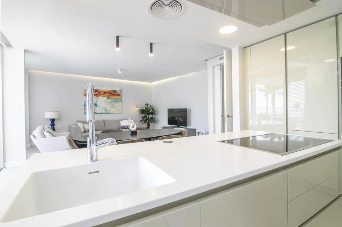 Exclusivo apartamento frente al mar con 3 dormitorios listo para entrar a vivir en Estepona. Primera planta de esquina frente al mar con 170m2 construidos, situado estratégicamente en una urbanización de diseño privada frente al mar Mediterráneo, con impresionantes amaneceres de la bahía de Estepona, y vistas al Peñón de Gibraltar y la Costa de África. Esta joya está perfectamente diseñada y pensada para su bienestar en todo momento, espectacular terraza con vistas, y todas con las comodidades de formar parte de una urbanización de lujo con servicios incluidos, seguridad 24 horas, garaje privado con trastero, piscina climatizada, spa, sauna, baño turco, gimnasio, pista de pádel, zona de trabajo con sala de reuniones, piscina exterior cloración salina y de niños, jardines comunitarios con iluminación nocturna y beach club en el exterior del recinto con un servicio excepcional. Los materiales utilizados son resistentes y de última generación como la fachada ventilada de corian®, grandes ventanas de aluminio, suelo radiante en toda la vivienda, electrodomésticos Gaggenau, aire acondicionado AirZone® con sistema de aerotermia instalado, sistema de alarma, control de domótica y mucho más. Localizado en un enclave estratégico, dispone cerca de servicios como Aldi, Mercadona, Burger King, restaurantes, farmacia y a tan sólo 5 minutos en coche Estepona y a 20minutos de Marbella.