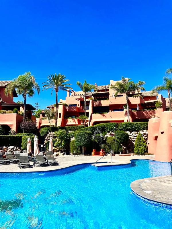 Excepcional apartamento de lujo en venta en el exclusivo y prestigioso complejo Torre Bermeja junto a la playa. Torre Bermeja está situado en la nueva Milla de Oro, en la codiciada zona de Estepona Este. El hermoso complejo es famoso por su calidad de primera clase y sus instalaciones de primer nivel que incluyen múltiples jardines exóticos, piscinas al aire libre y áreas para tomar el sol impecablemente mantenidas, una piscina cubierta climatizada, gimnasio totalmente equipado, sauna y acceso directo a la playa. El complejo también ofrece un servicio de seguridad de alto nivel las 24 horas, que siempre le brinda tranquilidad. Este impresionante apartamento, en el piso medio, da a la piscina y los jardines, y ofrece una vista parcial al mar, desde la gran terraza de 50 metros cuadrados, perfecta para relajarse, tomar el sol y entretenerse mientras disfruta de los impresionantes jardines bien cuidados. Con decoraciones de alta gama, que incluyen pisos de mármol pulido y ornamentado en todas partes, el alojamiento está bien proporcionado, disfruta de mucha luz natural y los acabados son de la más alta calidad. Perfecto para recibir invitados, con una cocina independiente totalmente equipada, lavadero y terraza, con electrodomésticos de primera línea, con vista que se abre al comedor que conduce a la espaciosa sala de estar, que fluye a la perfección hacia la terraza exterior. Dos habitaciones bien proporcionadas, la principal con su propio vestidor y un gran baño en suite con jacuzzi, tocador doble de mármol y ducha de hidromasaje separada; orientada al suroeste de la piscina, jardines y playa. El segundo dormitorio doble con vistas y una terraza al frente del complejo y armarios empotrados de madera maciza de alta calidad. Un cuarto de ducha y WC separados se encuentran justo al lado del pasillo interno del segundo dormitorio. Hay una plaza de aparcamiento privada en el garaje subterráneo seguro y un trastero designado. No pierda la oportunidad de ver esta encantadora propiedad que ha sido cuidadosamente mantenida por los propietarios actuales y experimente una vida cómoda y exquisita junto a la playa a solo 10 minutos en coche de Puerto Banús, a 15 minutos del casco antiguo de Marbella y a 10 minutos de la ciudad de Estepona. Las visitas se pueden organizar en 24 horas, con cita previa con el agente, Onyx Holiday Homes.