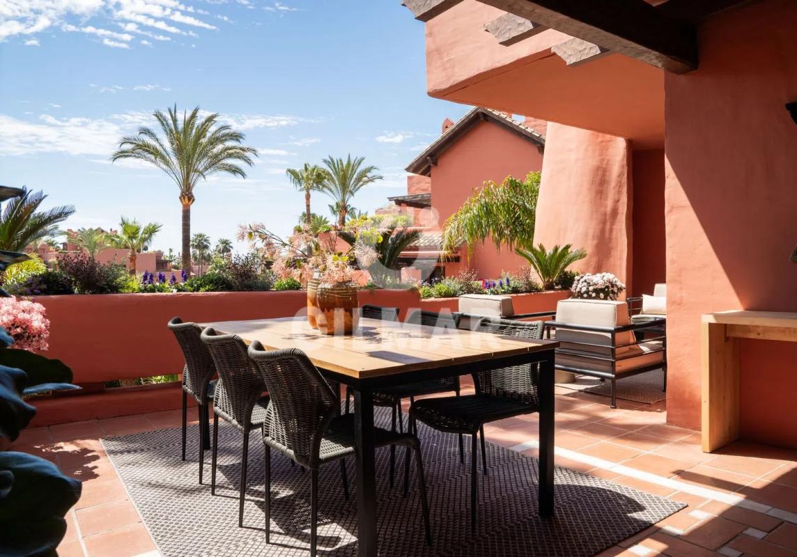 Este lujoso apartamento de 3 dormitorios está situado en el prestigioso complejo frente al mar Torre Bermeja en la Nueva Milla de Oro, Estepona. El apartamento cuenta con una cocina totalmente amueblada y equipada, perfecta para los amantes de la cocina. El salón-comedor es luminoso y espacioso, con grandes puertas de cristal que conducen a la terraza privada. La terraza ofrece un refugio tranquilo con impresionantes jardín, piscina y vistas parciales al mar. Dos dormitorios en este apartamento son de tamaño generoso y vienen con armarios empotrados, proporcionando un montón de espacio de almacenamiento. Dos dormitorios incluyendo el dormitorio principal disponen de baño en-suite, mientras que el tercer dormitorio tiene acceso a un baño separado. Todos los cuartos de baño. Todos los baños están en excelentes condiciones y disponen de calefacción por suelo radiante. Los residentes de Torre Bermeja tienen acceso a una serie de servicios, incluyendo una piscina comunitaria, un gimnasio y una piscina cubierta. El complejo está cerrado y ofrece servicio de seguridad las 24 horas, garantizando la seguridad y la privacidad de sus residentes. Situado en primera línea de playa, este apartamento está a pocos pasos del mar y las hermosas playas de la Costa del Sol. También está convenientemente situado cerca de tiendas, restaurantes y escuelas, por lo que es una opción ideal para familias. Tanto si busca una residencia permanente o una casa de vacaciones, este apartamento de lujo en Torre Bermeja ofrece la combinación perfecta de comodidad, comodidad y lujo.