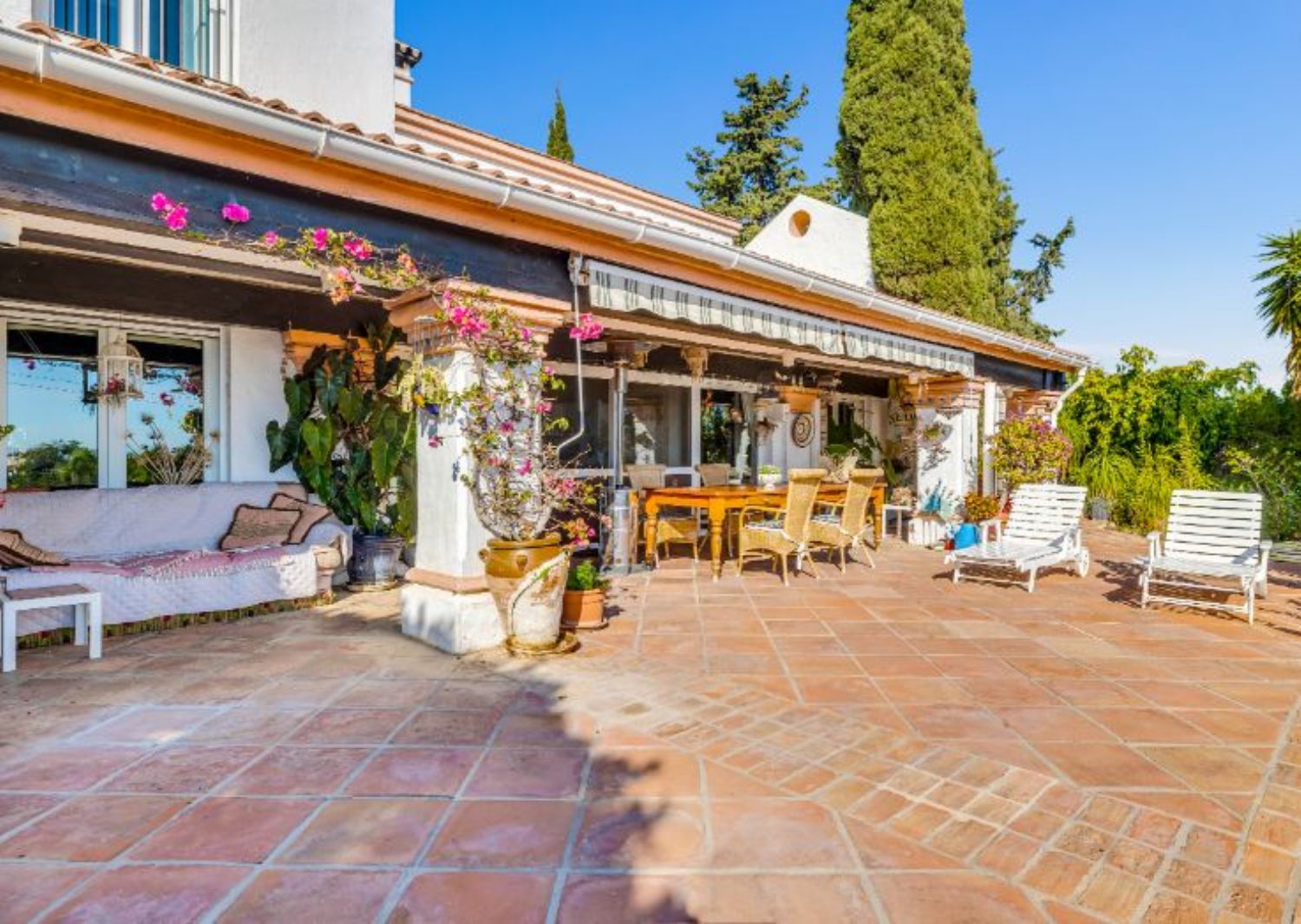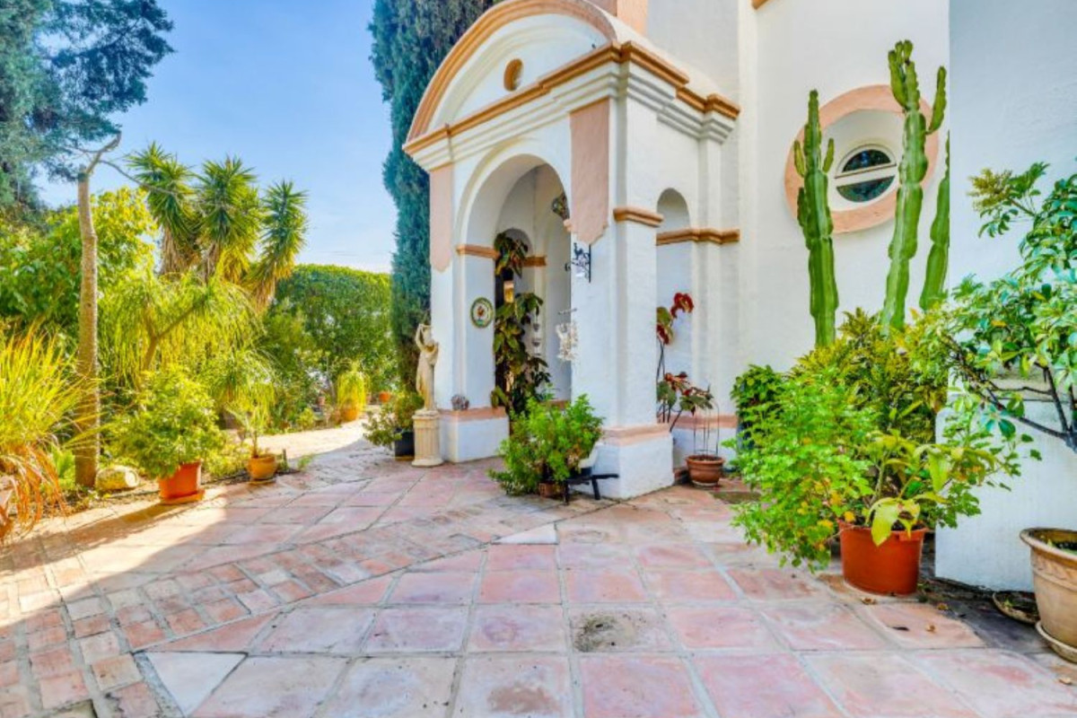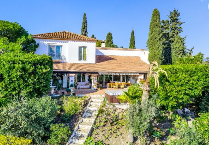 CASA ESTRELLASELWO, PLATINUM HILLS, ESTEPONA NUEVA MILLA DE OROUna villa rústica muy acogedora, estilo finca, situada en Selwo cerca de Platinum Hills en la Nueva Milla de Oro de Estepona. Tranquila y totalmente privada, con orientación sur-oeste y vistas impresionantes a la costa y al Mediterráneo.Hall de entrada, salón con chimenea, comedor separado, cocina moderna totalmente equipada. Desde las zonas de estar, acceso directo a las terrazas cubiertas y descubiertas con jacuzzi.Dormitorio principal en suite con vestidor. Cuatro dormitorios de invitados con tres baños y un aseo.Piscina privada con varias zonas chill out y un frondoso jardín maduro.Aparcamiento para dos coches.Otras características: Calefacción central de gas, A / C, calefacción solar de agua, pozo de agua propio.Céntricamente situado junto al parque Selwo, a sólo unos minutos de la playa, otros servicios y el centro de Estepona. A poca distancia de la Escuela Americana Atlas.Una oportunidad única que hay que ver.