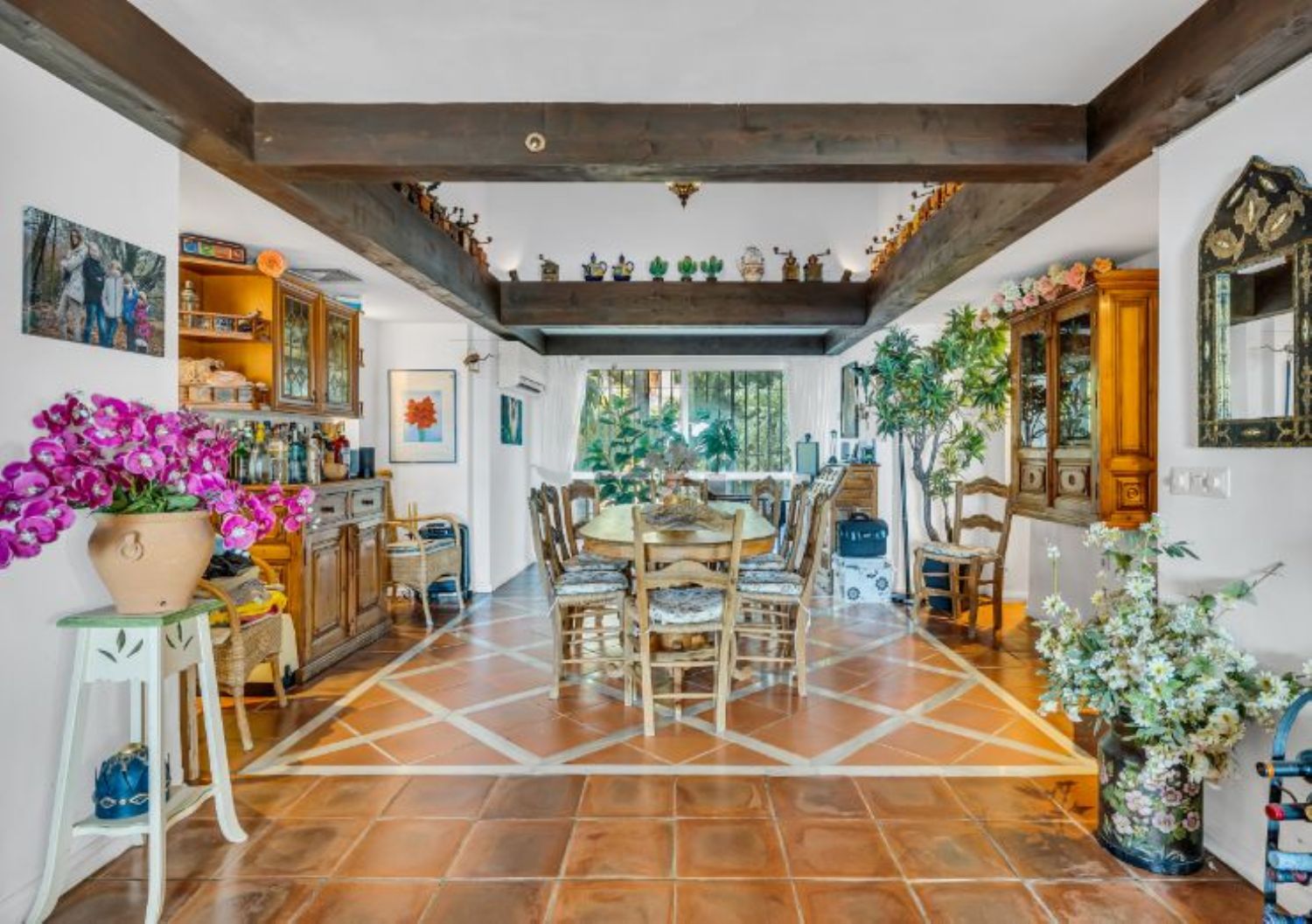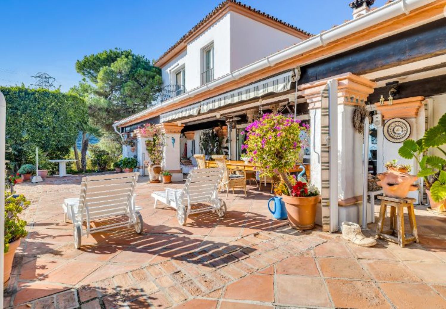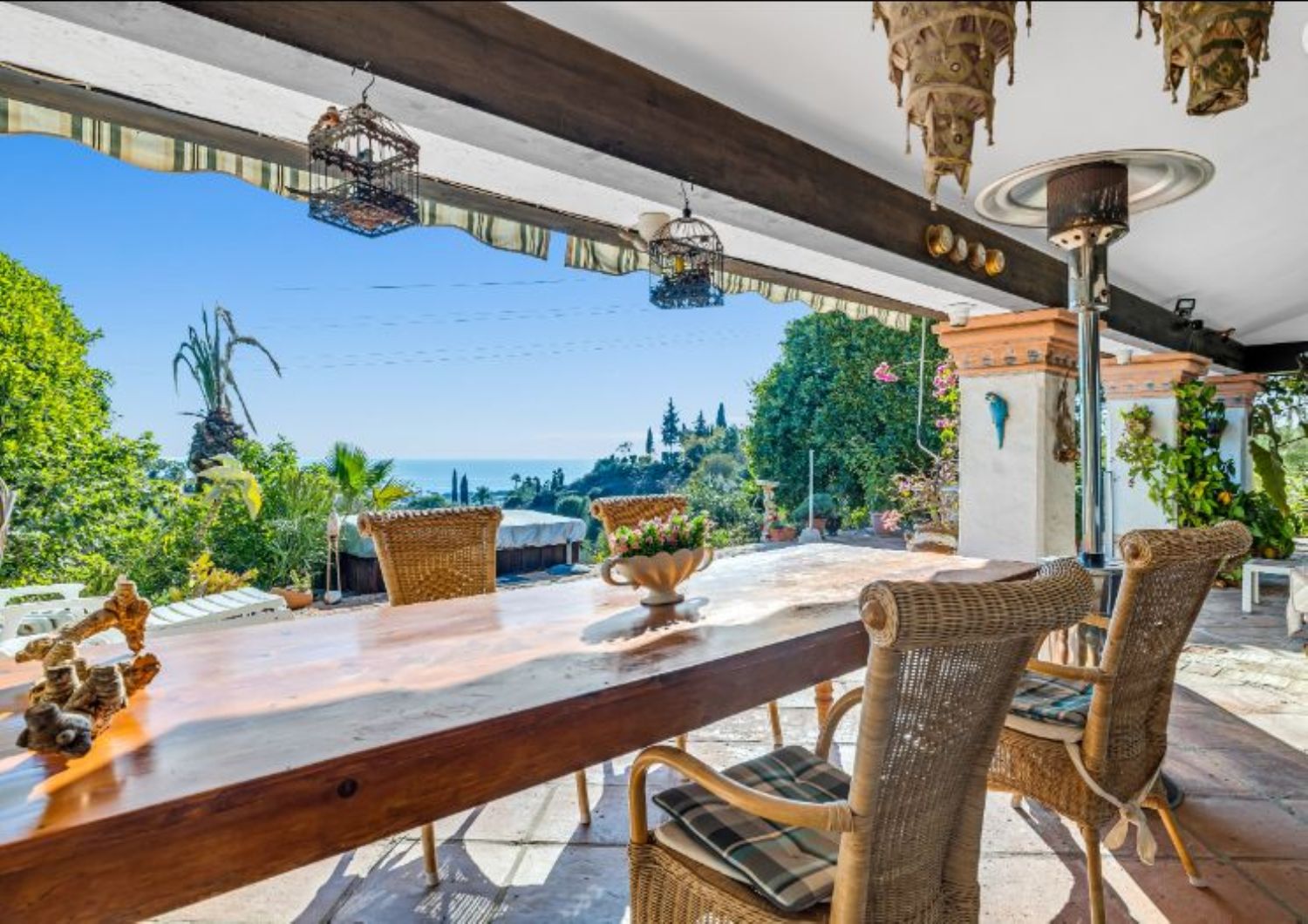 CASA ESTRELLASELWO, PLATINUM HILLS, ESTEPONA NUEVA MILLA DE OROUna villa rústica muy acogedora, estilo finca, situada en Selwo cerca de Platinum Hills en la Nueva Milla de Oro de Estepona. Tranquila y totalmente privada, con orientación sur-oeste y vistas impresionantes a la costa y al Mediterráneo.Hall de entrada, salón con chimenea, comedor separado, cocina moderna totalmente equipada. Desde las zonas de estar, acceso directo a las terrazas cubiertas y descubiertas con jacuzzi.Dormitorio principal en suite con vestidor. Cuatro dormitorios de invitados con tres baños y un aseo.Piscina privada con varias zonas chill out y un frondoso jardín maduro.Aparcamiento para dos coches.Otras características: Calefacción central de gas, A / C, calefacción solar de agua, pozo de agua propio.Céntricamente situado junto al parque Selwo, a sólo unos minutos de la playa, otros servicios y el centro de Estepona. A poca distancia de la Escuela Americana Atlas.Una oportunidad única que hay que ver.