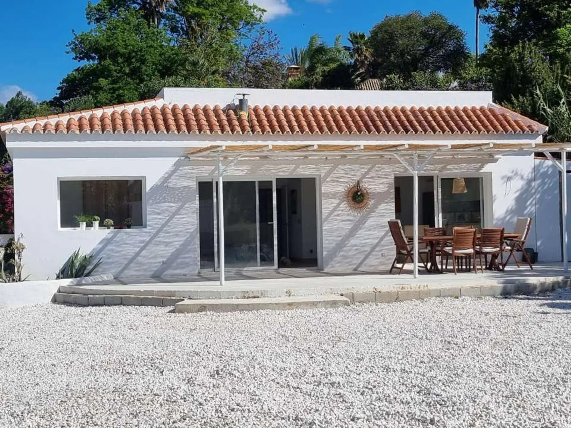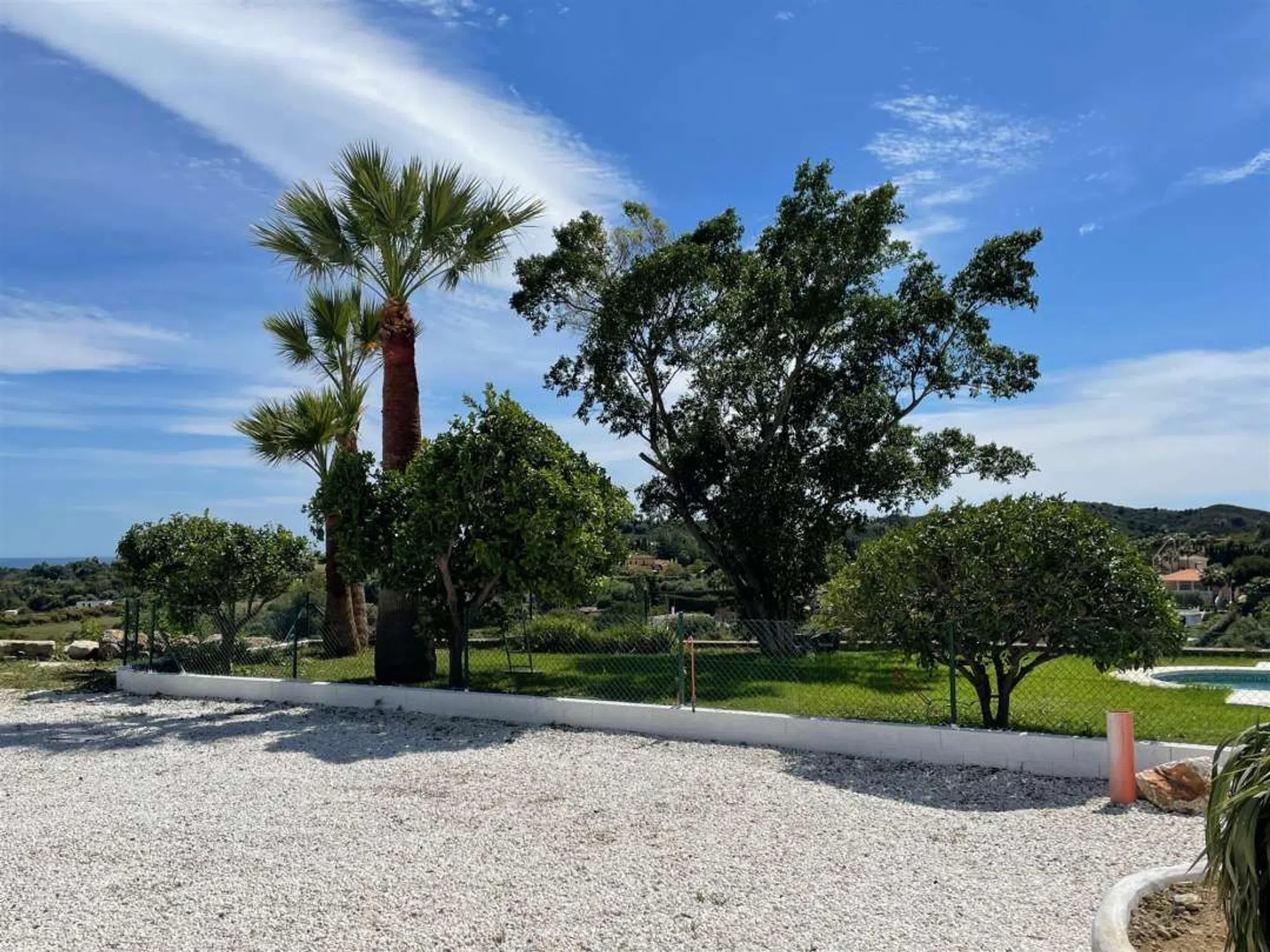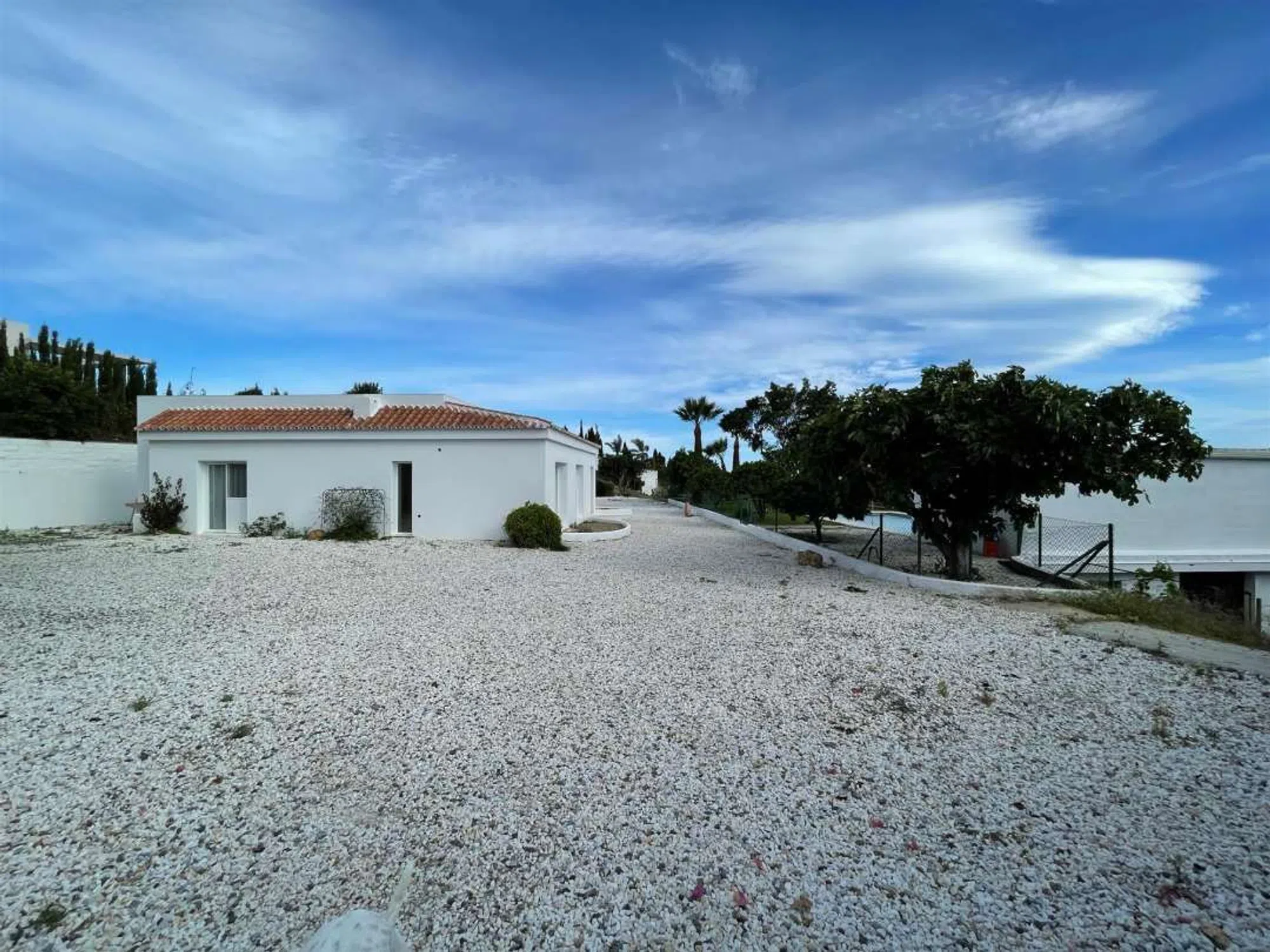 Terreno de 4.200 m2 en El Velerin con una casa de 165 m2 en una sola planta, consta de salon- comedor, tres habitaciones, tres baños, porche cubierto y pequeño trastero bajo la escalera, gimnasio, amplia zona de aparcamiento en el entorno de la casa, amplios jardines, huerta y árboles frutales (naranjos, limoneros, mandarinos, pomelos, aguacates, higueras, mangos, granados, olivos, etc. ). una piscina. La vivienda tiene red de agua que es filtrada y suavizada y pozo para el jardin y la piscina, ademas de calefaccion en todas las habitaciones y aire acondicionado en el salon. La parcela esta distribuida en cuatro grandes plataformas llenas de arboles frutales, vista al mar, zona muy tranquila con facil acceso desde la autovia.