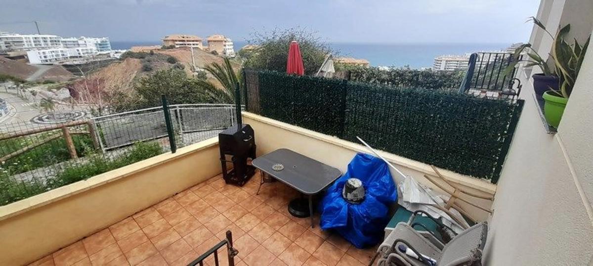 Piso ubicado en la Zona alta de Urb. Torreblanca del Sol (Fuengirola). Residencial Terrazas de Torreblanca. Superficie total construida 150,62 m2. Superficie Útil 95 m2. Se distribuye en 2 dormitorios, 1 baño, 1 aseo, salón comedor, cocina equipada, 2 terrazas con vistas al mar, patio y sótano (en bruto) con posibilidad de hacer 2 dormitorios mas o apartamento de invitados. Residencial con dos piscinas, zona ajardinada, gimnasio y sala para fiestas y reuniones. Cuota de comunidad 80 €/mes. Posibilidad de comprar plaza de garaje y trastero en el mismo recinto. Suelos de mármol. Impresionantes vistas al mar. Necesita algo de reforma.