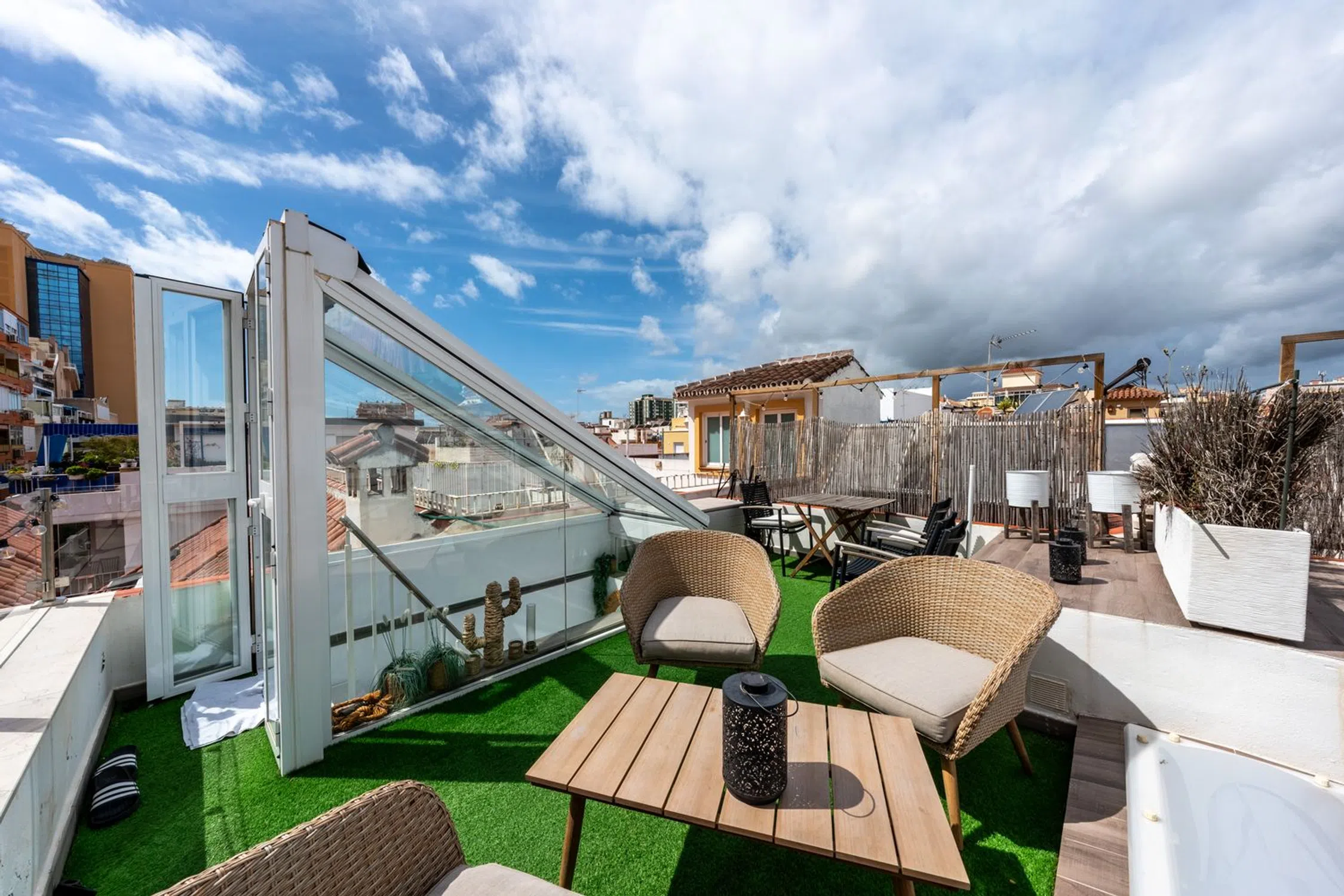 Este encantador ático, situado en segunda línea de playa en la popular Los Boliches, ofrece 61 m² de espacio bien distribuido. El apartamento cuenta con 2 dormitorios, 1 baño y una encantadora terraza orientada al sur en la planta principal. La impresionante azotea ofrece impresionantes vistas a la montaña, lo que convierte a esta propiedad en un oasis perfecto para la relajación y el disfrute. Con una cocina de diseño y una elegante escalera que conduce a la azotea, este apartamento es un sueño hecho realidad para quienes aprecian tanto la funcionalidad como la estética. Aquí encontrará un hogar único y personalizado, diseñado para brindar comodidad y estilo. La fantástica ubicación de la propiedad también ofrece proximidad a todas las comodidades que pueda desear. La playa está a un paso, mientras que la estación de tren y las paradas de autobús están a poca distancia a pie. Perfecto para aquellos que desean un fácil acceso tanto a Málaga como a Marbella, ciudades que ofrecen una gran variedad de compras, cultura y entretenimiento. Aquí puede disfrutar de la tranquilidad, pero al mismo tiempo tener toda la Costa del Sol a su alcance. Una propiedad que combina lo mejor de la comodidad y las comodidades: ¡esta es una oportunidad que no querrá perderse!