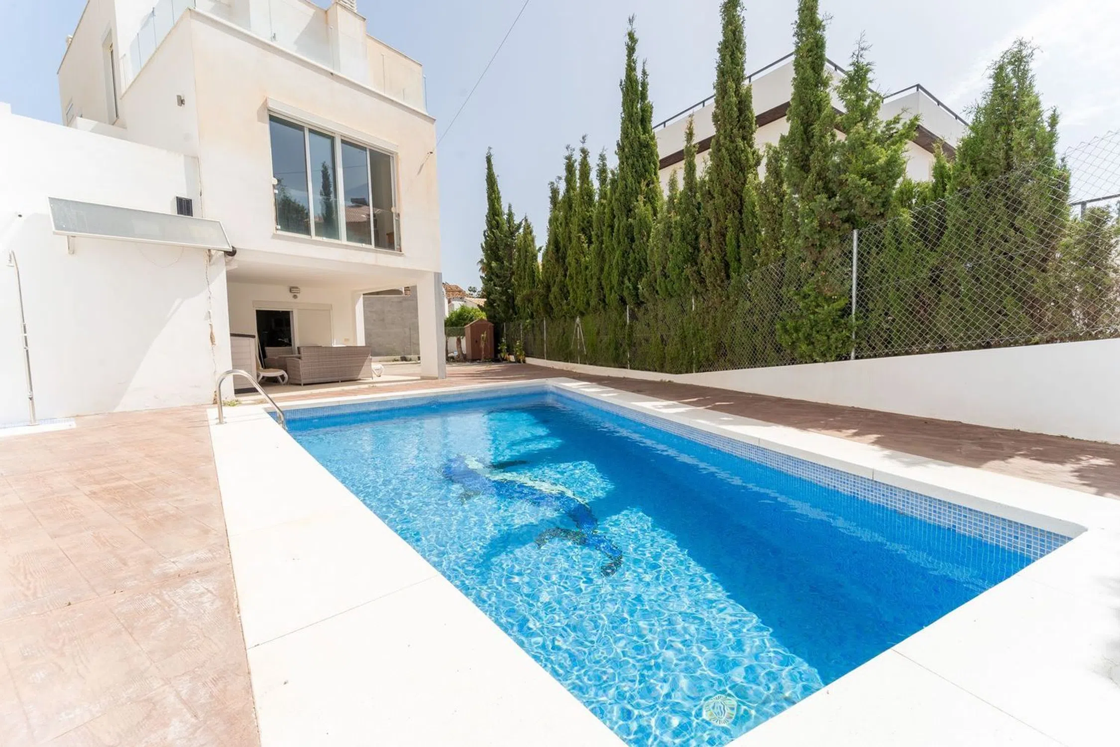 Encantadora Casa Independiente con Vistas al Mar en Torreblanca Ubicada en una zona residencial tranquila y consolidada de Torreblanca, esta vivienda unifamiliar independiente ofrece una excelente oportunidad para crear un hogar a medida en uno de los rincones más apacibles de Fuengirola. Situada sobre una amplia parcela, cuenta con jardín privado y piscina, y disfruta de vistas panorámicas al mar Mediterráneo desde su espaciosa terraza. La propiedad dispone de dos dormitorios y tres baños completos, ofreciendo comodidad y funcionalidad. Además, cuenta con dos cocinas totalmente equipadas, lo que aporta gran flexibilidad tanto para familias como para quienes reciben invitados con frecuencia. La planta baja presenta un claro potencial para ser transformada en un estudio independiente o apartamento de invitados, ideal como alojamiento adicional o para alquiler. Aunque la vivienda necesita reformas exteriores y algunas mejoras interiores, destaca por su carpintería de calidad y sólida estructura, lo que la convierte en una base ideal para una renovación moderna. Con su ubicación tranquila, vistas al mar y distribución versátil, esta propiedad representa una oportunidad única tanto como inversión como para vivienda habitual, a solo minutos de la playa, conexiones de transporte y todos los servicios locales.