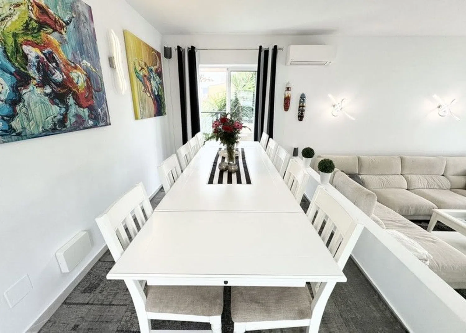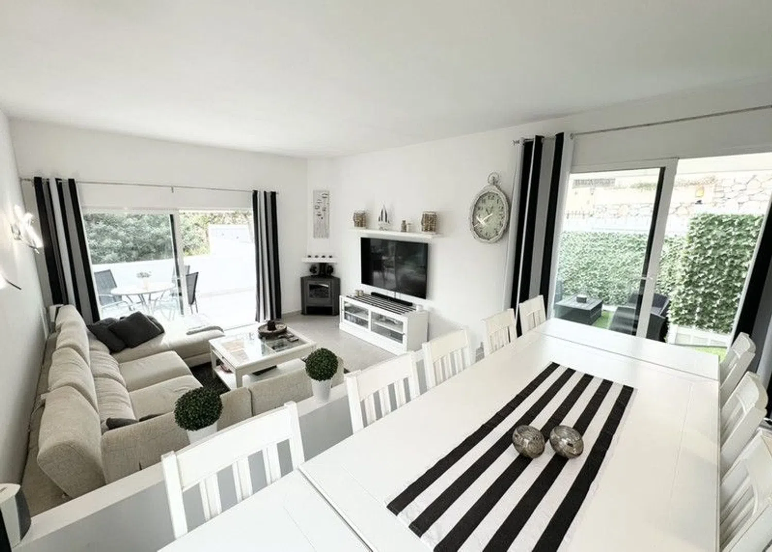 Fantástica villa en Torreblanca con gran parcela verde, piscina privada, varias plazas de aparcamiento y apartamento de invitados independiente. Bienvenido a esta casa completamente recientemente renovada ubicada en una zona tranquila pero cerca de la ciudad y la playa. Un total de 4 dormitorios, 3,5 baños y un amplio y luminoso salón/comedor con varias entradas a las terrazas circundantes. A nivel de la calle, tenemos opciones fáciles de estacionar en el garaje privado, puerta de acceso al patio con estacionamiento más grande y también un espacio de estacionamiento justo al lado de la entrada principal de la casa. Además de esta entrada, hay una puerta de entrada a la propiedad y acceso directo al espacioso lavadero y a la luminosa cocina totalmente equipada, así como una entrada independiente al apartamento de invitados con su propio baño/cocina. Esto brinda fantásticas oportunidades para alquilar el apartamento, o la casa completa si lo desea, ya que tanto la Lpo como la licencia de alquiler están disponibles. La iluminación interior y exterior, focos, cámaras y alarmas de seguridad, iluminación de la piscina, calefacción, música, alarmas contra incendios y más son de alta tecnología y se pueden controlar con una aplicación a través del teléfono móvil. Todo para crear el confort que deseas y mereces. Dos terrenos con un total de 1231 metros cuadrados, justo en el límite de una zona verde donde no se puede construir nada y contribuyen así a la transparencia y tranquilidad protegidas. Gran piscina climatizada, palmeras y árboles frutales, pequeño campo de juego con césped artificial y varias terrazas y patios. La ubicación es sur/oeste/este, por lo que sol de la mañana durante el desayuno, sol junto a la piscina durante el día y al mediodía y por la noche en partes del patio. Además de una hermosa vista del valle verde y de la zona, se puede ver el mar en el sureste.