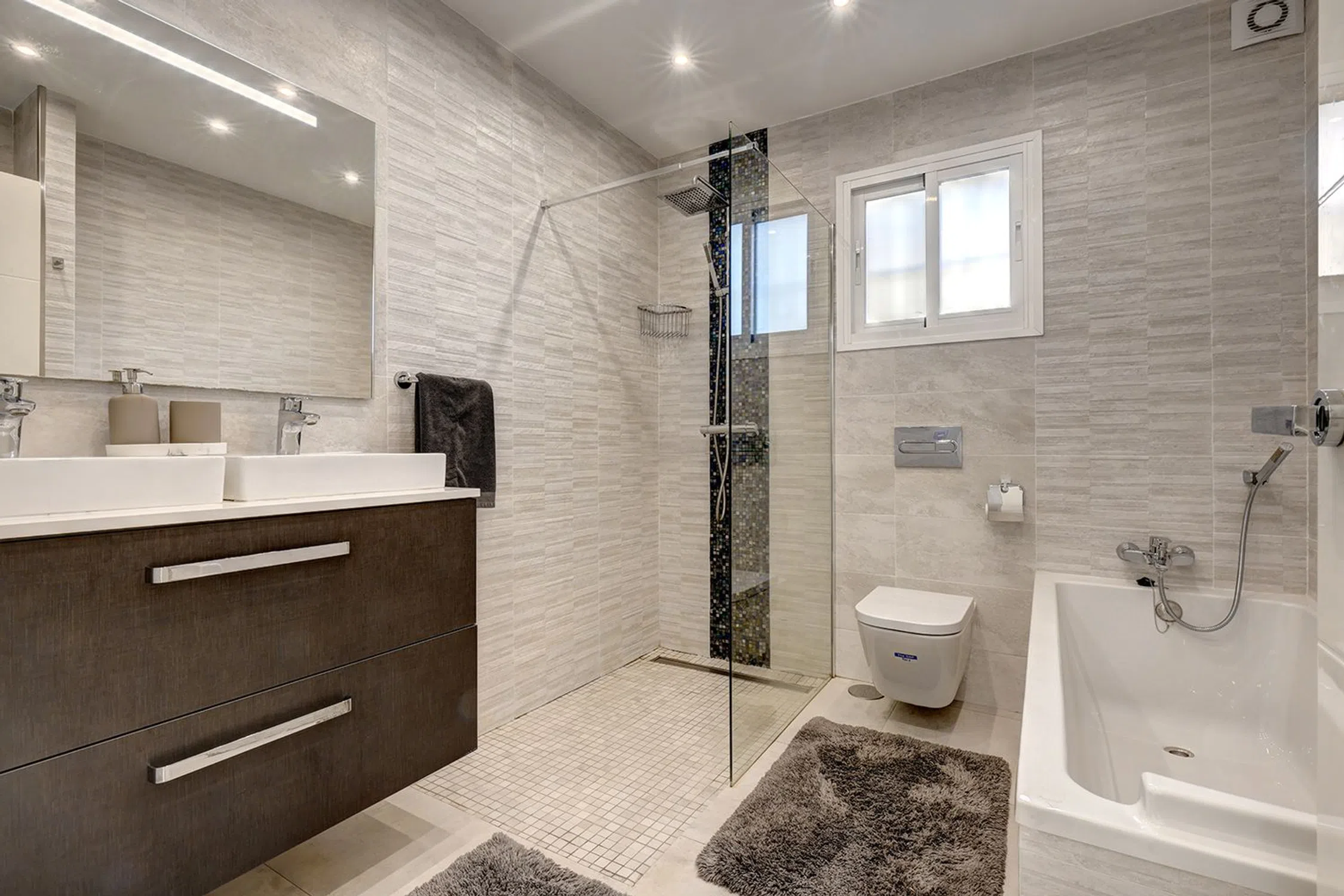 En el nivel inferior se encuentran tres amplios dormitorios, cada uno con su propio baño moderno en suite, ofreciendo privacidad y comodidad tanto para los residentes como para los invitados.