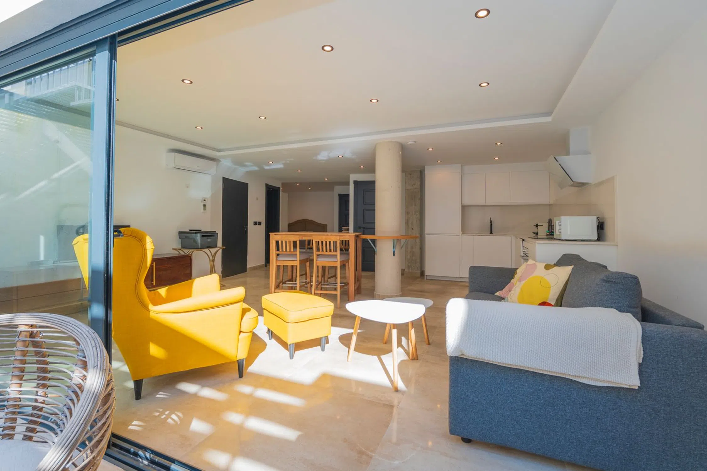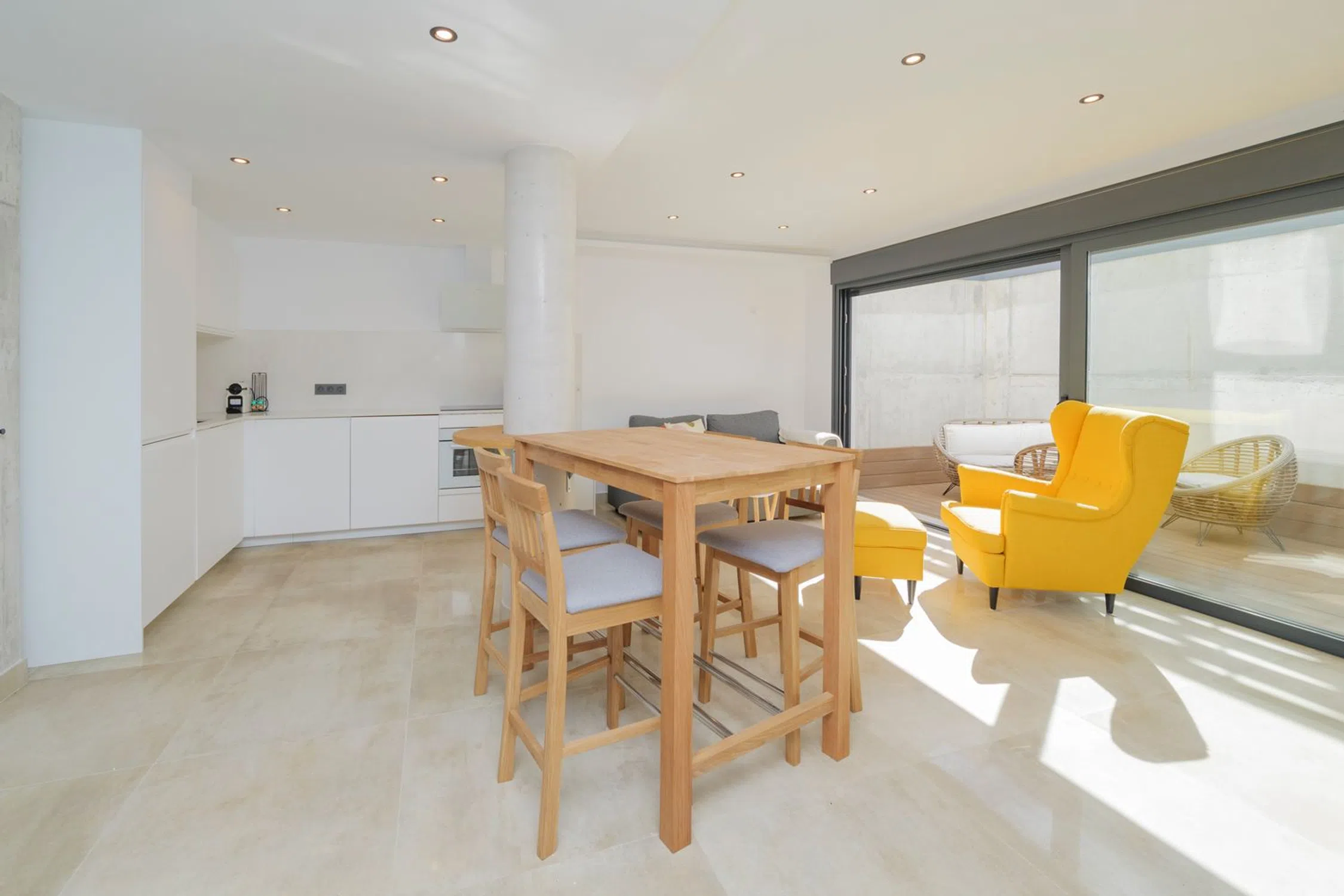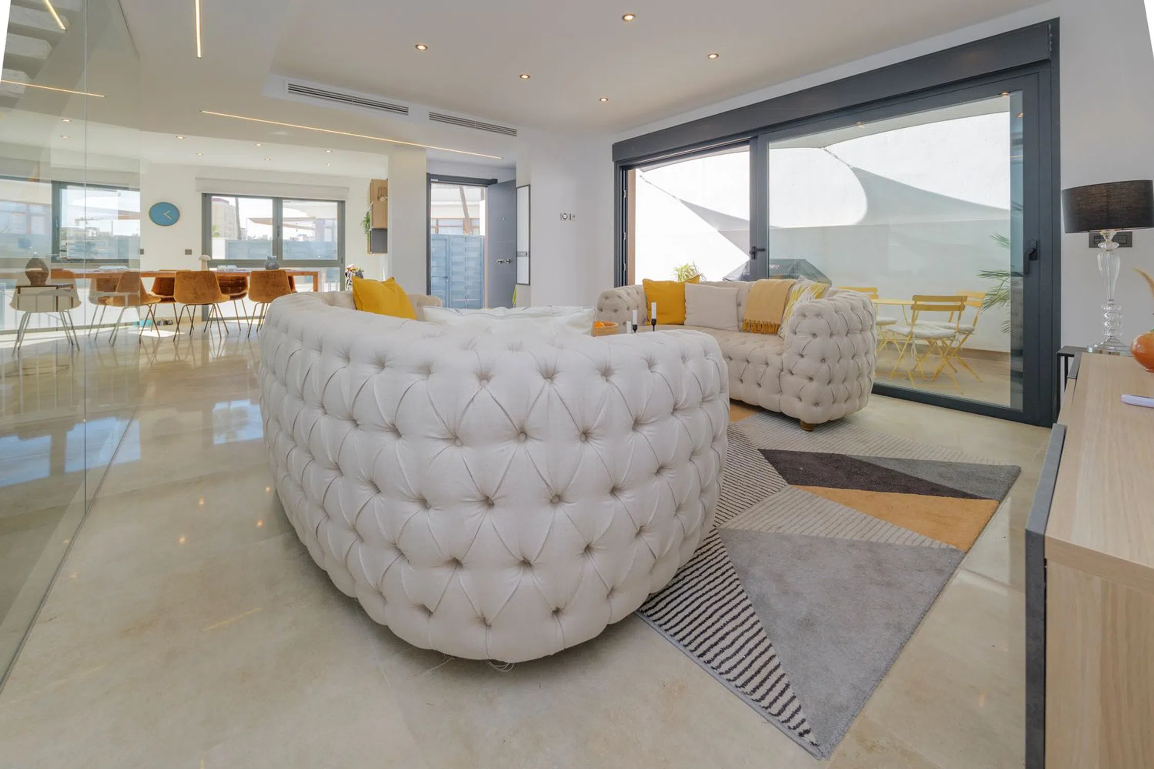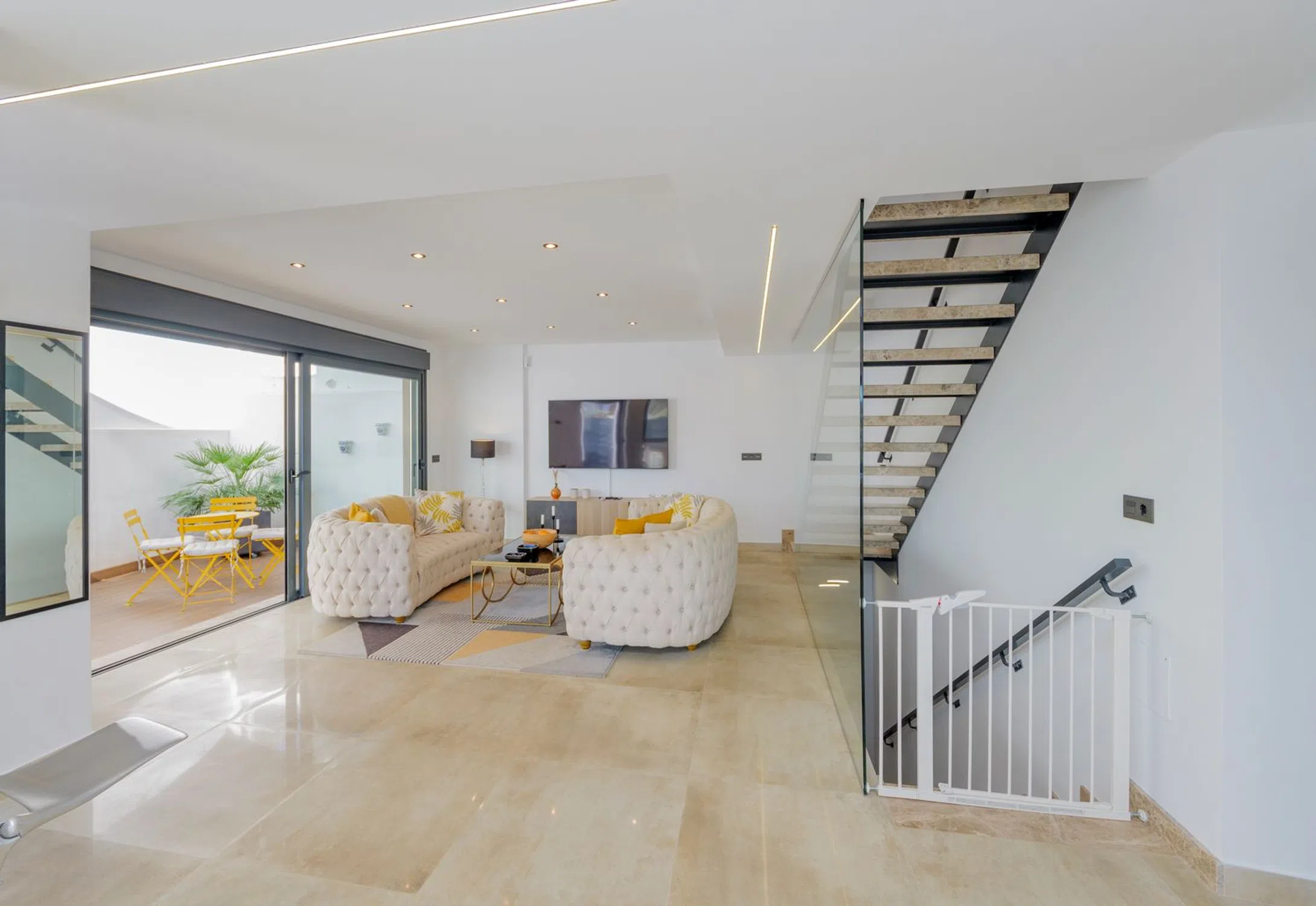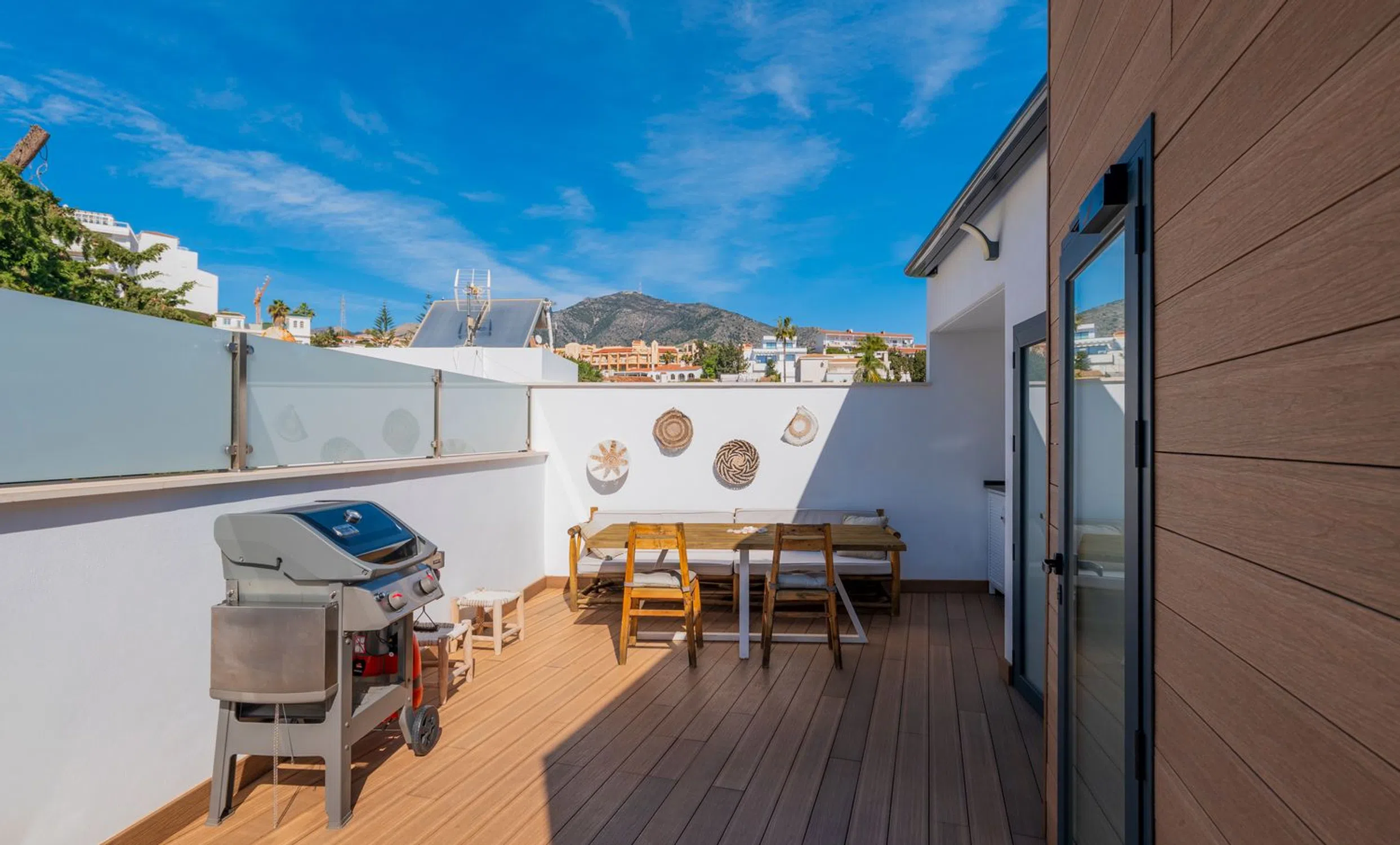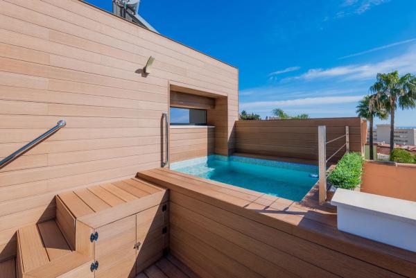 Ubicada en el corazón de la Urbanización Torreblanca, a solo 250 metros de la playa y a un corto paseo de 150 metros de la estación de tren, esta exquisita villa ofrece una combinación perfecta de elegancia moderna, artesanía de alta calidad y un estilo de vida costero privilegiado. Construida en 2021 con un diseño de inspiración escandinava, la casa exhibe una arquitectura elegante, líneas limpias y una gran cantidad de luz natural. Con 199 m² de espacio construido en una parcela de 119 m², cada rincón ha sido cuidadosamente diseñado para la comodidad y el estilo. Al entrar, un acogedor recibidor conduce a un sofisticado espacio de estar de planta abierta, donde la moderna cocina y el comedor se fusionan sin esfuerzo con el elegante salón. Las puertas de vidrio del piso al techo se abren a una hermosa terraza, ampliando la sala de estar e invitando a la suave brisa mediterránea al interior. Un elegante baño completa este nivel. Al subir la escalera con barandilla de vidrio, el piso superior revela un tranquilo dormitorio principal con vestidor, que irradia una sensación de espacio y lujo. Un baño de hermoso diseño agrega una sensación de spa, mientras que un segundo dormitorio espacioso ofrece comodidad y versatilidad. La terraza de la azotea es un santuario privado, perfecto para sumergirse en las impresionantes vistas al mar. Ya sea que esté relajándose en el área de descanso, dándose un chapuzón en su piscina privada o disfrutando de una barbacoa por la noche en la cocina al aire libre, este espacio está diseñado para relajarse y entretenerse. Además, un baño y un trastero brindan mayor comodidad. Para agregar aún más versatilidad, un apartamento de invitados separado se encuentra justo debajo de la residencia principal. Accesible a través de una escalera privada junto a la entrada, o internamente a través de una puerta segura, esta unidad independiente es un refugio perfecto para invitados, familiares o incluso como una oportunidad de alquiler. Cuenta con un amplio salón, una moderna cocina de planta abierta, un cómodo dormitorio, un baño elegante y una encantadora terraza con tarima de madera, lo que crea un espacio de vida acogedor e independiente. La propiedad se completa con un área de estacionamiento privado, una entrada segura con portón y una cerca de pared, lo que garantiza privacidad y tranquilidad. Esta villa es más que un hogar: es un estilo de vida. Con su ubicación inmejorable, diseño sofisticado y características lujosas, ofrece el equilibrio perfecto entre la tranquilidad costera y la vida moderna.