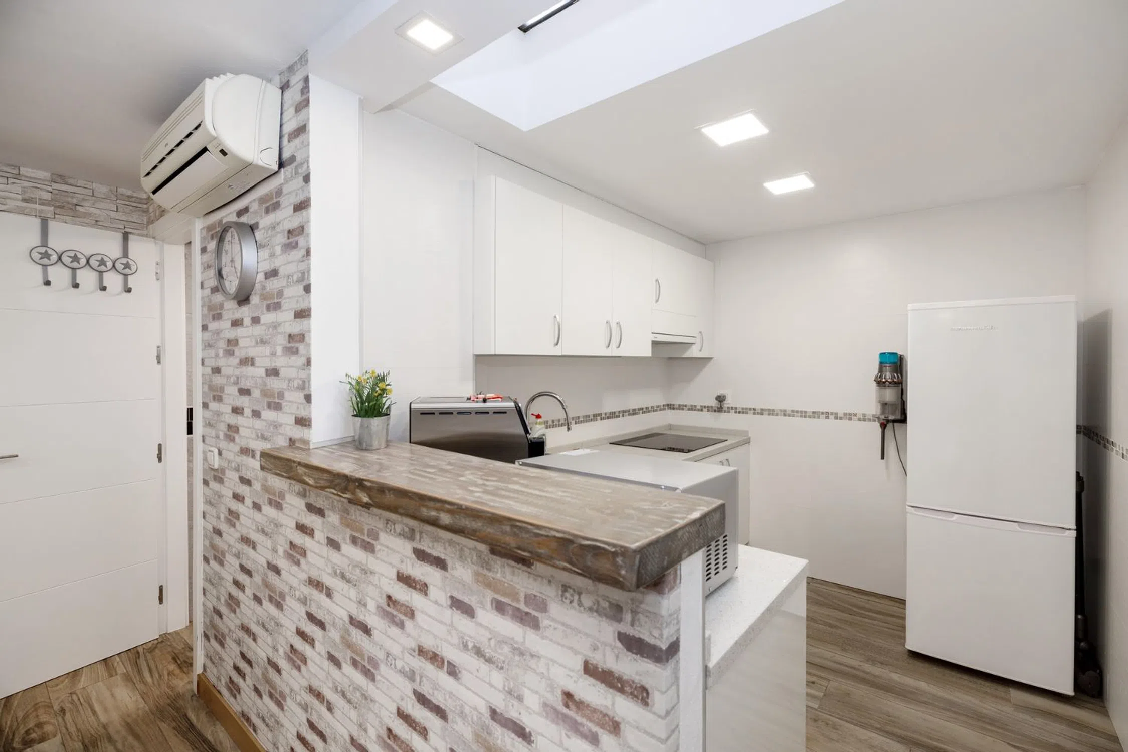 Magnífica casa adosada totalmente reformada en la Costa del Sol, una propiedad pensada para disfrutar al máximo tanto como segunda residencia, casa vacacional o vivienda habitual. Ubicada en tercera línea de playa, a solo dos minutos a pie (160 metros) del mar, esta vivienda combina a la perfección la proximidad al paseo marítimo con la tranquilidad de una calle poco transitada. Una oportunidad excepcional para quienes desean vivir cerca del mar sin renunciar al descanso. Distribuida en dos plantas más azotea, esta propiedad ha sido completamente renovada por su actual propietario, cuidando cada detalle en confort, funcionalidad y diseño. En la planta baja encontramos un salón-comedor amplio y luminoso con cocina americana, donde destaca un original lucernario cenital que conecta directamente con la azotea, aportando una entrada de luz natural que realza aún más la calidez del espacio. Esta planta también dispone de un baño completo con ducha, reformado con estilo moderno y práctico. En la primera planta se ubican dos dormitorios de práctica distribución y un segundo baño con calidades modernas. Como broche final, la vivienda ofrece una azotea privada convertida en una espectacular zona chill out y una barbacoa de obra, creando el ambiente perfecto para relajarse al aire libre o disfrutar de reuniones con amigos y familia bajo el sol de la Costa del Sol. Una propiedad lista para entrar a vivir, con acabados de calidad y un diseño funcional y acogedor, en una ubicación privilegiada cerca del mar. El barrio de Fuengirola, donde se sitúa esta propiedad, es conocido por su vibrante vida social y su variada oferta de servicios, ofreciendo una amplia gama de tiendas, restaurantes y opciones de entretenimiento.