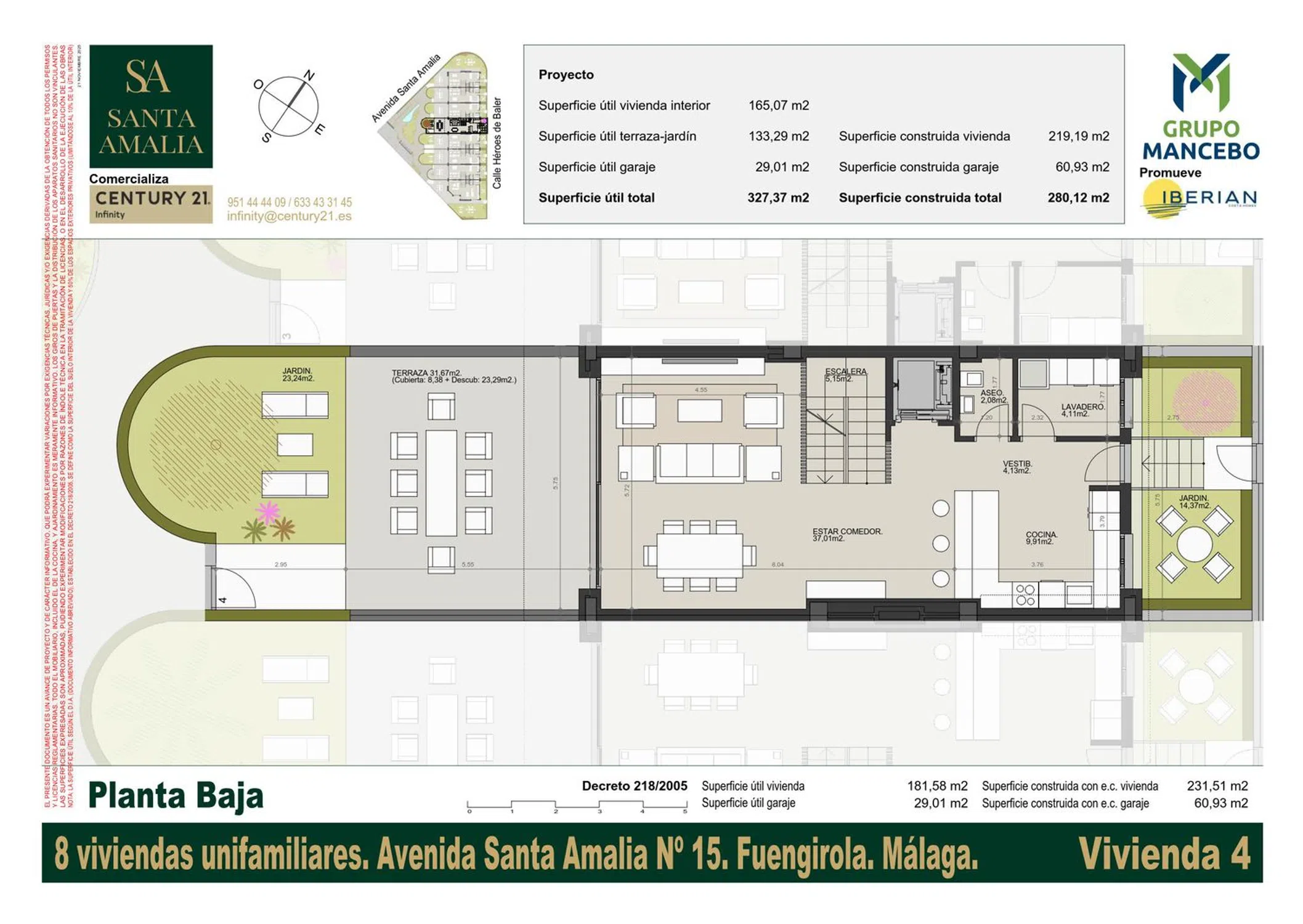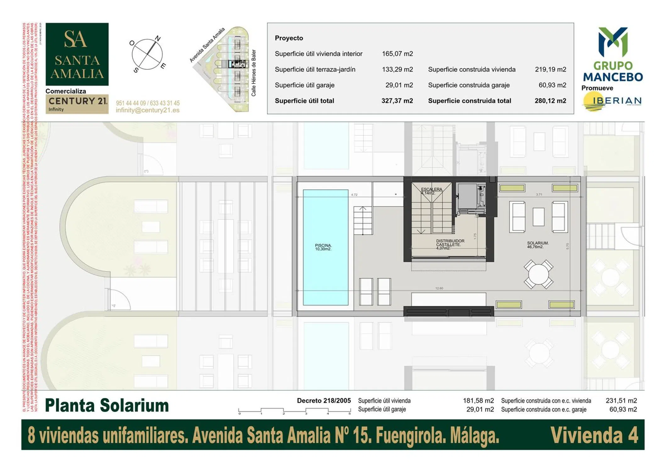Grupo Mancebo e Iberian Costa Homes presentan Santa Amalia. Un residencial de solo 8 viviendas con piscina privada y excelente ubicación en Fuengirola. Santa Amalia es un proyecto diseñado para disfrutar de la luz, el mar y la calma de Fuengirola. Exclusiva promoción de 8 viviendas unifamiliares de obra nueva, ubicada en una de las zonas premium de Fuengirola, a solo unos metros del mar. Viviendas de lujo totalmente personalizables, diseñadas para ofrecer el máximo confort, eficiencia energética y privacidad. Cada vivienda cuenta con 4 niveles, ofreciendo una distribución versátil y funcional. Además, incorpora un ascensor privado que conecta todas las plantas, aportando comodidad y accesibilidad. La vivienda permite configurar 3, 4 o 5 dormitorios, e incluye armarios completos, estancias amplias, grandes ventanales y acabados de alta gama. Características principales: 4 niveles por vivienda Ascensor privado Acabados de lujo Garaje privado para 2 vehículos Aerotermia individual de alta eficiencia Placas fotovoltaicas Suelo radiante Domótica avanzada Armarios completos en todas las estancias Viviendas amplias, luminosas y totalmente personalizables Accesos y zonas comunes Entrada privada independiente para cada vivienda Entrada comunitaria adicional Zona ajardinada comunitaria Espejo de agua en áreas comunes Espacios exteriores privados Cada vivienda incluye espacios exteriores ideales para disfrutar del clima mediterráneo: Terraza con pérgola Jardín privado Solárium con piscina privada Localizada en la zona premium de Fuengirola, a pasos del mar y rodeada de todos los servicios: supermercados, colegios, restauración, transporte público y zonas deportivas. Excelente conexión con Málaga, el aeropuerto y Marbella. Por qué elegir Santa Amalia? Una promoción exclusiva para quienes buscan un adosado de obra nueva en Fuengirola con piscina privada, eficiencia energética, lujo y una ubicación privilegiada. Imágenes orientativas sin valor contractual (RD 515/1989). Mobiliario y elementos decorativos no incluidos. Los acabados, tonalidades y colores podrán modificarse por razones técnicas o de diseño. Promueve: Grupo Mancebo / Iberian Costa Homes S. L.