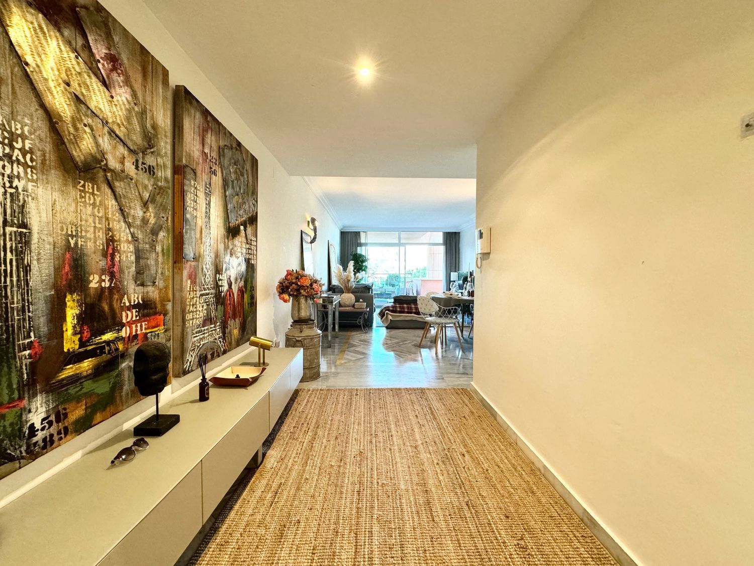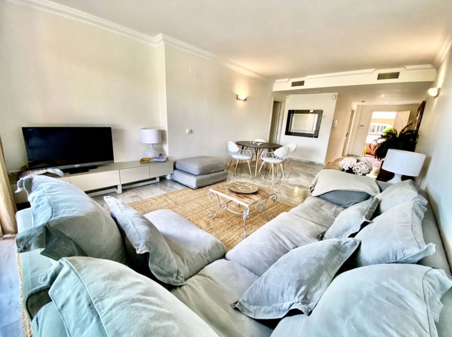 Precioso apartamento ubicado en una de las zonas más exclusivas de Marbella, la denominada urbanización Magna Marbella, que cuenta con amplias zonas recreativas y zonas de descanso.Este elegante apartamento tiene dos dormitorios, uno con jacuzzi y otro con una bañera. La cocina esta totalmente amueblada. El salón es bastante amplio, luminoso y tiene acceso a una terraza donde disfrutar de los inolvidables amanaceres. Una vivienda muy cuidada con suelos recién pulidos. La vivienda se vende/alquila completamente amueblada.El complejo residencial de Magna Marbella ofrece: hermosos jardines con vigilancia las 24 horas, 3 piscinas al aire libre, el lujoso restaurante Magna Café, donde podrá deleitarse con su excelente cocina y tiene su propio campo de golf de 9 hoyos.