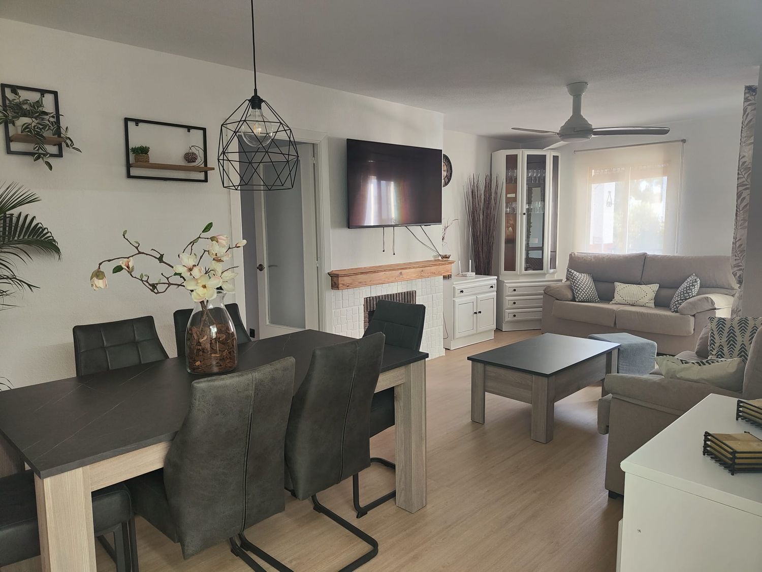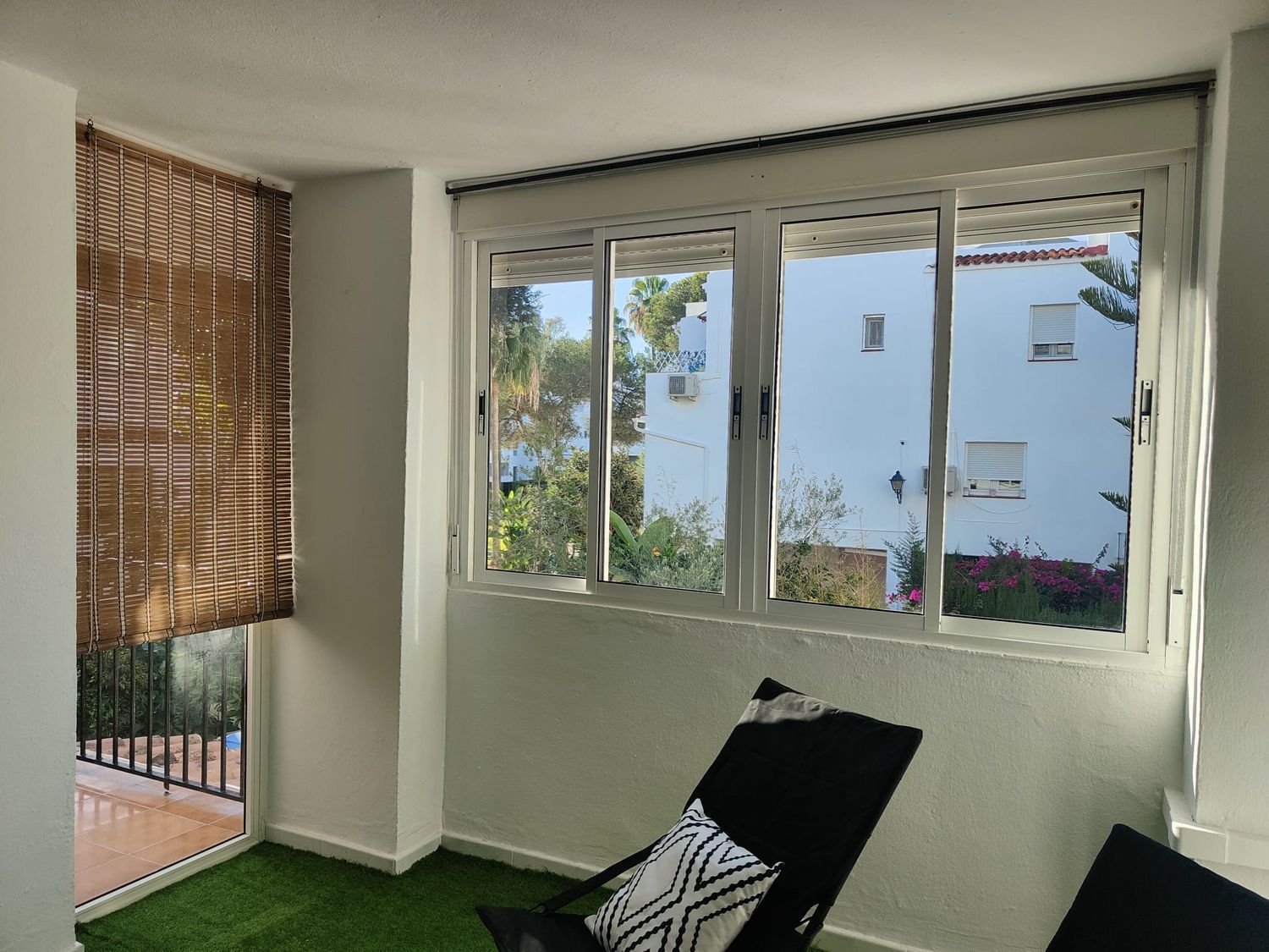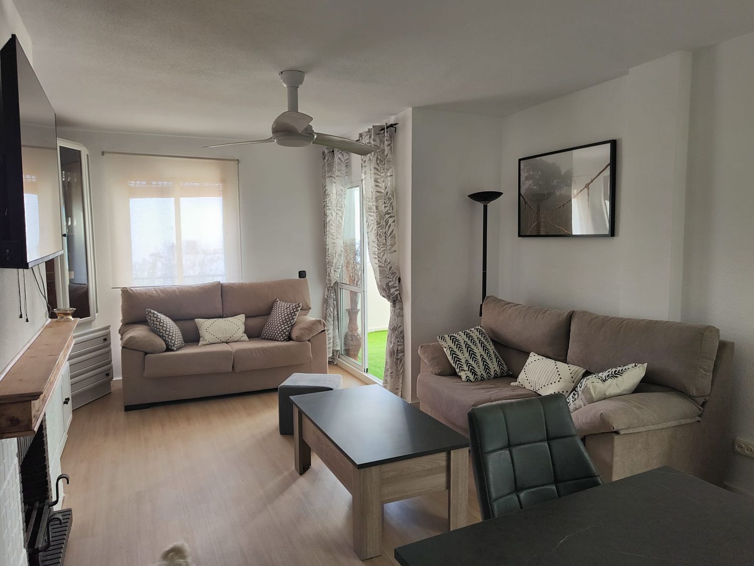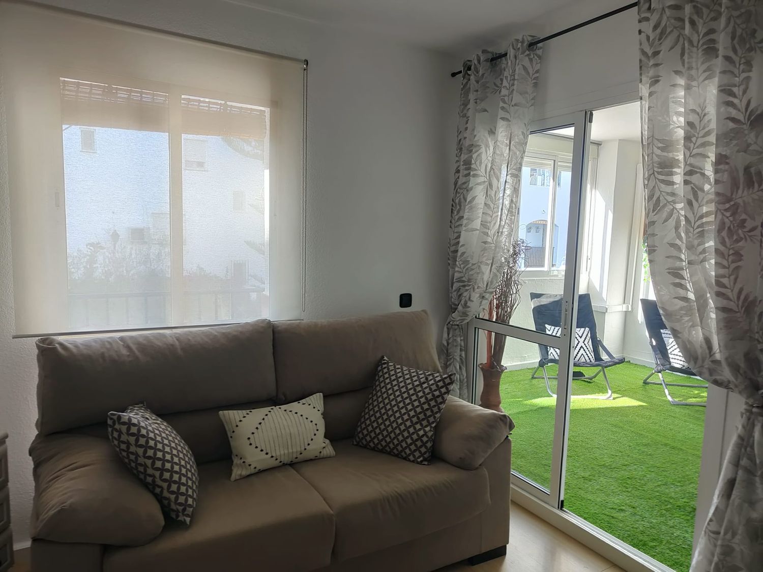 Fabuloso piso de 4 dormitorios recién reformado en alquiler para larga temporada.Situado en una zona inmejorable de Elviria, con fácil acceso a la autovía, a un paseo de la playa y rodeada de todos los servicios.Se trata de una amplia vivienda muy luminosa, recién reformada y amueblada con muy buen gusto.Cuenta con 4 amplios dormitorios, dos de ellos dobles, 2 baños completos, gran cocina completamente amueblada y equipada con amplios ventanales y zona que se puede habilitar como comedor, salón grande y luminoso con salida a una terraza cubierta. Todas las estancias cuentan con climatización y el salón con chimenea, lo que hace la estancia muy acogedora.La cocina es perfecta para los enamorados de la cocina, con mucha zona de trabajo y doble cocina, una eléctrica y otra de gas.La vivienda cuenta con plaza de parking exterior comunitaria.La urbanización tiene una bonita piscina con amplia zona ajardinada, es una comunidad muy mantenida, tranquila y familiar, donde no se permite alquiler vacacional.La ubicación es ideal, fácil acceso a la autovía, a 5 minutos en coche de Marbella, se puede ir andando a la playa, rodeado de todos los servicios (colegios, supermercados, farmacia, restaurantes, cafeterías, etc).Se requiere acreditación de ingresos. Consulte las condiciones.Para organizar visita, puede contactar directamente con Ana 6.2. 5.1. 3.2. 8.4. 1.