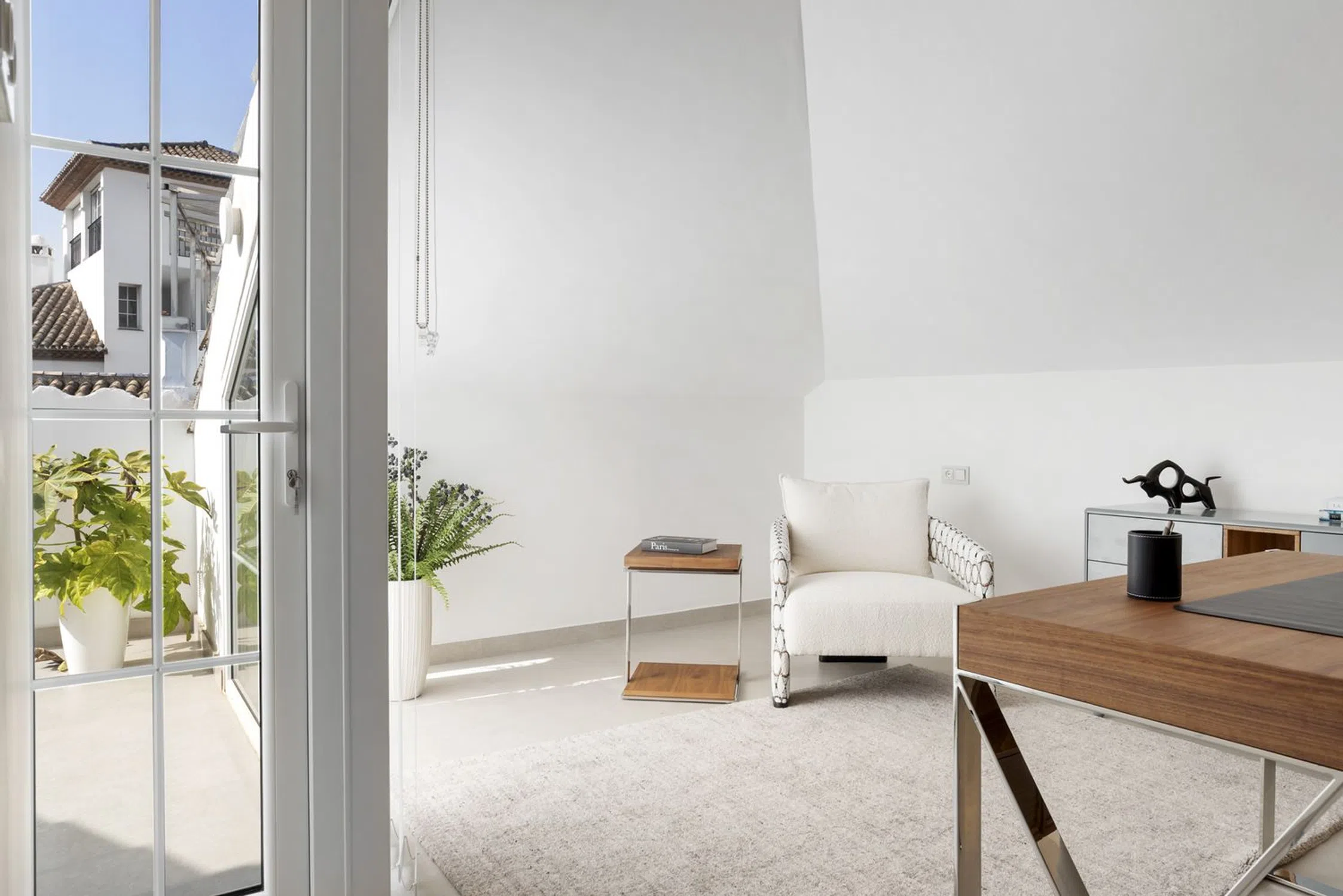 Penthouse Las Lolas es una de esas raras residencias que inmediatamente transmiten armonía, estilo y diseño reflexivo. Situado en la parte superior de uno de los edificios mejor ubicados de Nueva Andalucía, y a pocos minutos de Marbella Arena y Puerto Banús, esta casa ofrece una combinación única de tranquilidad, comodidad y vistas impresionantes. Aquí, la vida mediterránea se encuentra con la arquitectura moderna en un ático de doble nivel con 304 m2 de espacio interior y 100 m2 de terrazas, diseñado para disfrutar de mañana a noche. El salón de planta abierta se baña en luz natural desde tres direcciones, creando un ambiente espacioso y elegante. La cocina de nogal y porcelana hecha a medida —equipada con electrodomésticos premium Siemens, refrigeradores dobles, enfriador de vinos y sistema de filtración de agua— forma el corazón de la casa, fluyendo sin problemas en el comedor y las zonas de estar. La iluminación inteligente y los materiales cuidadosamente seleccionados aumentan la impresión general sofisticada. El ático incluye cinco dormitorios muy bien diseñados, incluyendo una espectacular suite principal en el nivel superior. Con techos inclinados, un amplio walk-in closet, un baño inspirado en el spa, y una terraza privada con vistas al mar y la montaña La Concha, este es un oasis de relajación completa. Dos dormitorios adicionales cuentan con baño en suite, mientras que dos comparten un baño familiar moderno. Una quinta habitación flexible sirve perfectamente como un dormitorio o oficina de invitados. Un lavadero separado con acceso a terraza muestra que incluso los detalles prácticos se han prestado la misma atención. El confort durante todo el año se garantiza mediante calefacción por suelo radiante en toda la propiedad, individualizada y complementada por tres sistemas Daikin que regulan la temperatura en cada piso. Un sistema de seguridad preinstalado, materiales de alta calidad y una paleta armoniosa de colores y texturas crean un sentido atemporal de calidad y paz mental. Cuatro terrazas rodean la casa, haciendo al aire libre vivir una extensión natural de la vida diaria. Aquí encontrará espacio para tomar el sol, comer, relajarse y reuniones sociales, todo enmarcado por vistas panorámicas de las montañas, el mar y la vegetación circundante. La gran terraza con barbacoa es perfecta para las noches con los huéspedes, y una capa de lujo adicional se puede lograr instalando un jacuzzi. La urbanización ofrece un ambiente tranquilo con jardines bien cuidados y una piscina privada. La proximidad a Marbella Arena trae vibración sin perturbaciones, mientras que la distancia a pie de Puerto Banús proporciona acceso inmediato a restaurantes, tiendas, playas y vida nocturna, sin comprometer la tranquilidad en casa. Penthouse Las Lolas también tiene una licencia de alquiler a corto plazo, por lo que es una oportunidad de inversión de alto nivel. La combinación de ubicación, vistas, tamaño y estilo resulta en un producto altamente deseable tanto en los mercados de vacaciones como a largo plazo de alquiler. Dos espacios de garaje y espacios de almacenamiento generosos contribuyen además a que la propiedad sea ideal como residencia permanente o un retiro exclusivo de vacaciones. Penthouse Las Lolas es más que un hogar, es un concepto de estilo de vida completo para aquellos que buscan elegancia moderna, comodidad funcional y una vida sin costura entre interiores y exteriores. Una de las residencias más impresionantes de Nueva Andalucía y una oportunidad única para adquirir un hogar donde cada detalle está pensado.