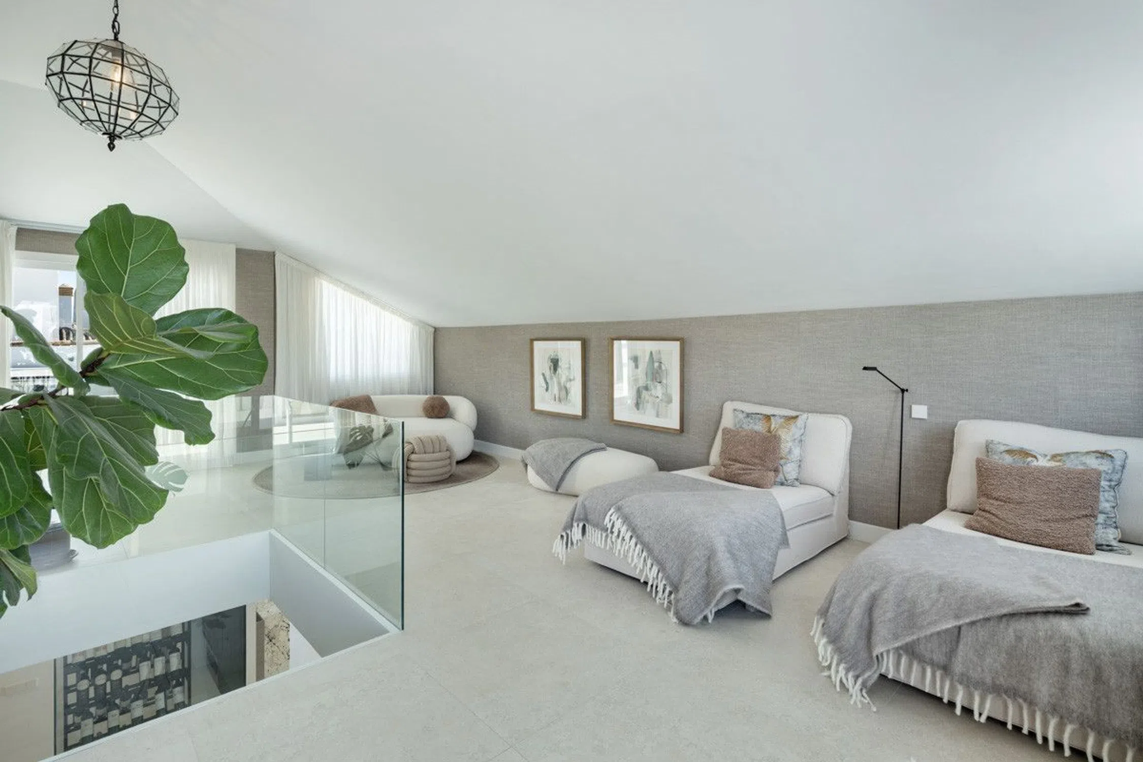 Ubicada en el codiciado distrito de Nagüeles, Costa PH se erige como un paradigma de sofisticación moderna y elegancia serena, un dúplex que ofrece un estilo de vida tan deslumbrante como el propio espacio. Desde el momento en que se cruza el umbral, es evidente que no se trata de una vivienda ordinaria. Diseñada para capturar tanto la vista panorámica del Mediterráneo como la majestuosa grandeza de las montañas circundantes, la propiedad fusiona a la perfección lo mejor de la naturaleza con el culmen del lujo contemporáneo. El dúplex es una obra maestra de la vida de concepto abierto, donde la cocina, el comedor y la sala de estar fluyen juntos con una fluidez ininterrumpida. Se puede imaginar uno de pie en la sala, mirando hacia el horizonte, donde el mar se extiende interminablemente, el cielo fundiéndose con la tierra en una composición pictórica. La cocina, un sueño para cualquier chef, cuenta con una isla de mármol de proporciones impresionantes, acompañada de elegantes gabinetes de madera que aportan calidez y profundidad al diseño moderno y minimalista. Los electrodomésticos de alta gama están listos para satisfacer los gustos más exigentes, mientras que una bien colocada bodega sirve tanto como una función práctica como un homenaje al gusto refinado. Los espacios exteriores, como corresponde a todo buen ático, sirven para elevar la experiencia de vivir. Con terrazas en ambos niveles, el ático crea una atmósfera de amplitud lujosa. La terraza inferior cuenta con una cocina equipada y una barbacoa incorporada, convirtiéndola en el lugar ideal para comer al aire libre. Aquí, una pequeña piscina privada invita a refrescarse en total intimidad mientras se disfruta de unas vistas impresionantes, ya sea de las suaves ondulaciones de las montañas o del azul tranquilo del Mediterráneo. La terraza superior, un oasis de calma, ofrece un espacio dedicado al descanso o a reuniones íntimas, con la brisa marina como una constante compañía. En el interior, los dormitorios desprenden confort y estilo, siendo la suite principal un verdadero lujo. Más que un simple dormitorio, es un santuario: ofrece un vestidor digno de una colección de las mejores telas, y un baño en suite que cautiva por su sofisticación y sus detalles indulgentes. Este es un espacio no solo para dormir, sino para renovarse, un lugar donde el estrés del mundo exterior parece desvanecerse. El ático se encuentra en una ubicación segura y privada, pero ofrece acceso rápido a lo mejor de Marbella. Restaurantes de prestigio, boutiques elegantes y playas bañadas por el sol están a solo unos minutos. En cada uno de sus detalles, Costa PH ejemplifica una vida de confort, clase y estilo excepcional: una propiedad que no solo invita a vivir, sino que también es una declaración de buen gusto.