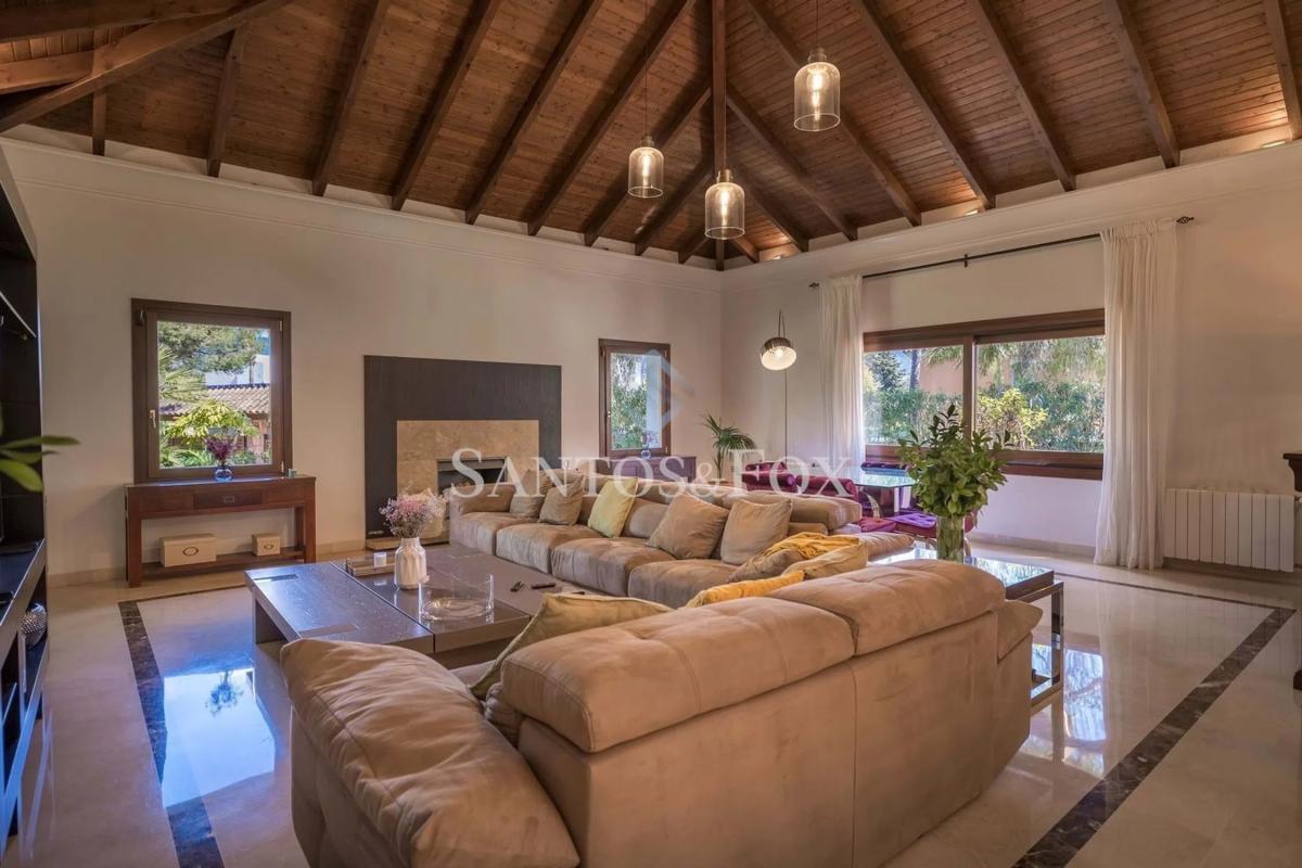 Elegante villa de lujo en la Golden Mile de Marbella Situada en el prestigioso enclave de Nueva Andalucía, la dirección más codiciada de Marbella, esta magnífica villa de 6 dormitorios y 6 baños redefine la vida opulenta. Rodeado de villas multimillonarias y protegido por seguridad itinerante 24/7, este santuario ofrece una privacidad y prestigio inigualables, a solo minutos del glamour de Puerto Banús. Una obra maestra de diseño y artesanía Con una extensión de 820 m² de espacio habitable refinado en un extenso terreno de 1.585 m² con terrazas al sol de 75 m2, la villa es una sinfonía de sofisticación. Entra por las grandes puertas, enmarcadas por teca africana artesanal de Iroco, un elemento principal en toda la casa y que conduce a interiores adornados con altos techos abovedados simétricos de catedral, barandillas de hierro forjado a medida y ventanas de doble acristalamiento que bañan la casa con mucha luz natural. Comodidades de lujo para gustos exigentes Disfruta de todas las comodidades imaginables, una bodega de vinos con temperatura controlada para colecciones seleccionadas, un gimnasio privado para actividades de bienestar y una lujosa chimenea para elevar las noches. Al aire libre, una terraza bañada por el sol envuelve una piscina reluciente, enmarcada por exuberantes jardines mediterráneos que envuelven la propiedad y vistas panorámicas de montañaun escenario idílico para la comida al aire libre o la tranquila reflexión. Integración Fluida de Seguridad y Comodidad Sistemas de seguridad avanzados, como una alarma de última generación, verjillas eléctricas y entrada de vehículos con reja para 8 vehículos, garantizan tranquilidad. Sin embargo, el vibrante pulso de Marbella nunca está lejos; un viaje de cinco minutos te lleva a Puerto Banús Marina, donde te esperan restaurantes con estrella Michelin, boutiques de alta costura y el electrizante Casino Marbella. Vive el sueño mediterráneo Ya sea disfrutando del amanecer sobre las sierras o organizando veladas bajo las estrellas, esta villa armoniza el sereno aislamiento con un acceso cosmopolita. Pasea por mercados gourmet y cafés elegantes cercanos, o sumérgete en la legendaria vida nocturna de Marbella: cualquier deseo está fácilmente al alcance. Tu invitación a la elegancia atemporal Esto es más que un hogar, es un legado. Aprovecha esta rara oportunidad para reclamar una residencia donde lujo, seguridad y ubicación convergen a la perfección. ¡CONSULTAS! Contacta con nuestro amable equipo para organizar una visita exclusiva y adentrarse en la cima del estilo de vida de élite de Marbella. *LLAVES EN LA OFICINA *IMPUESTOS Y GASTOS: *Tasas comunitarias 105 / mes *Impuesto de basura 185 / Año *Tasas IBI 3.735 / Año.