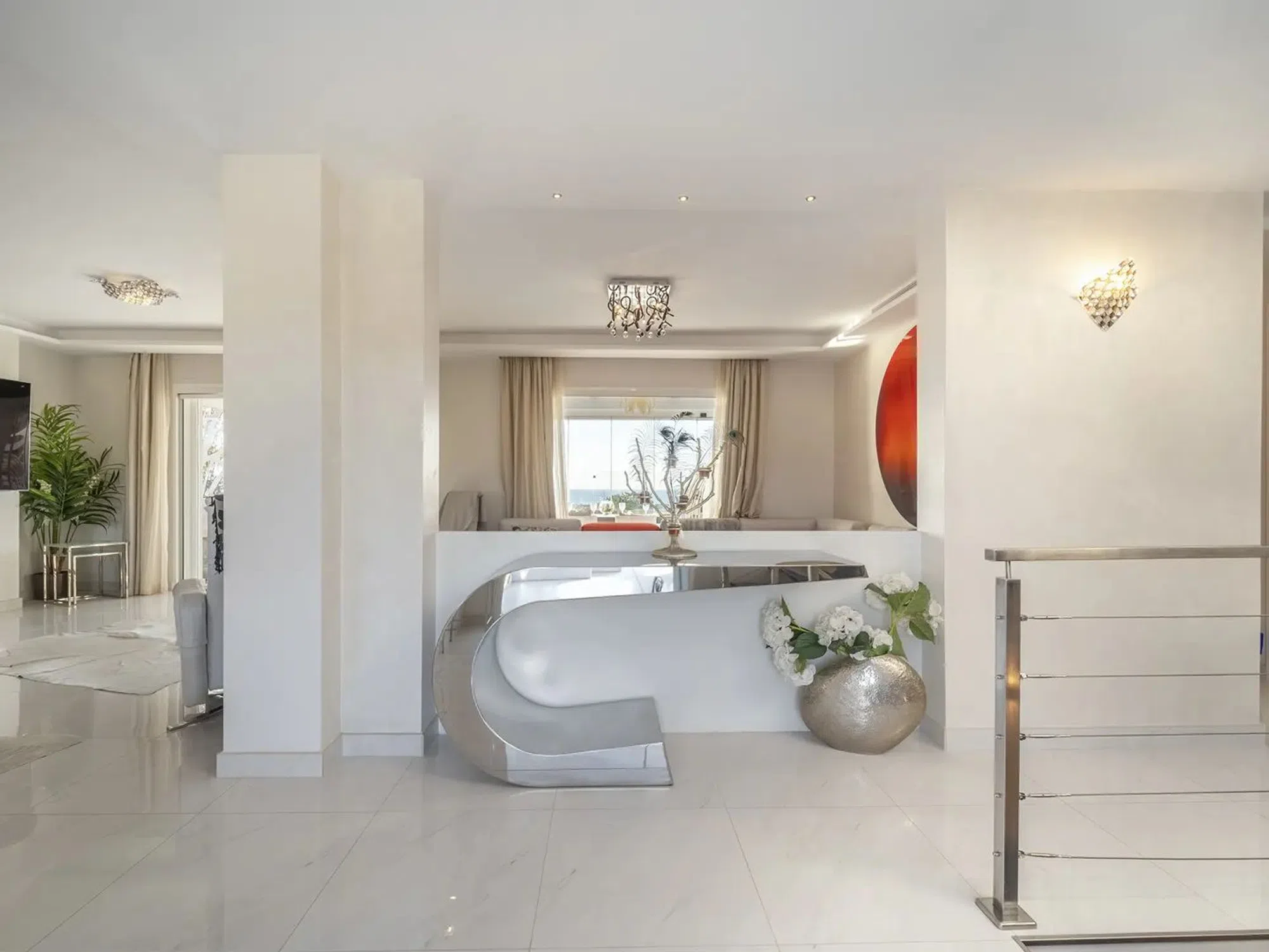 Ubicada en el exclusivo barrio de Nueva Andalucía, esta villa contemporánea ofrece una combinación perfecta de lujo, comodidad y conveniencia. Diseñada con una elegancia moderna, la propiedad presume de impresionantes vistas al mar y a la montaña, además de estar cerca de tiendas, restaurantes, colegios y centros deportivos. La villa cuenta con cinco amplios dormitorios, tres de ellos con baño en suite, además de una habitación de servicio con baño privado. El salón y comedor de planta abierta están bañados por luz natural, conectando perfectamente con las zonas exteriores y ofreciendo vistas pintorescas. La cocina totalmente equipada dispone de electrodomésticos de alta gama, una isla central y acceso directo a una gran terraza orientada al oeste. En el exterior, la villa impresiona con amplias terrazas alrededor de la piscina privada, jardines con árboles frutales y un encantador chiringuito con barbacoa, ideal para el entretenimiento. La terraza en la azotea ofrece una experiencia de lujo con cocina al aire libre, jacuzzi y vistas panorámicas espectaculares. Otras características incluyen un garaje para dos coches y un ascensor que conecta todas las plantas. Ya sea como residencia permanente o como refugio vacacional, esta villa excepcional encarna el estilo de vida moderno de Marbella: sofisticación, comodidad y belleza escénica.