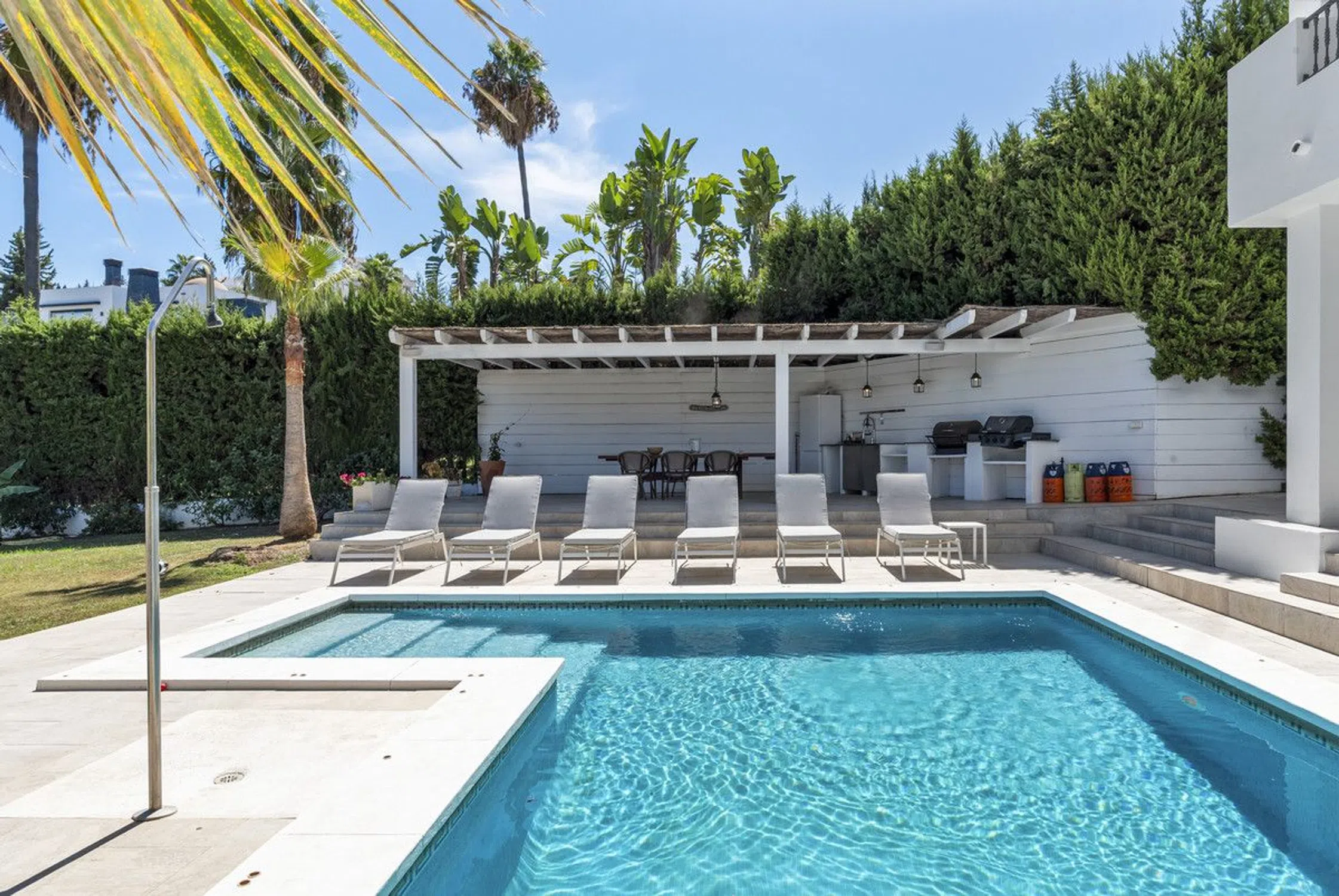Situado en un tranquilo callejón sin salida pero justo en el corazón de Nueva Andalucía, esta villa ofrece una rara mezcla de tranquilidad y accesibilidad. Desde la puerta se puede caminar hasta supermercados, cafeterías, restaurantes, farmacias, gimnasios e incluso algunos de los mejores campos de golf de Marbella. Puerto Banús y su puerto deportivo de lujo se encuentran a solo 25 minutos a pie con centro plaza a solo 15 minutos. Boutiques de diseño, comedor de clase mundial y vida nocturna vibrante a poca distancia. A pesar de estar tan cerca de todo, la villa conserva una sensación de privacidad gracias a su discreta ubicación cul-de-sac. La propiedad ha sido renovada con buen gusto con un enfoque en luz, comodidad y flujo. En la planta baja, amplias zonas de estar y comedor se conectan perfectamente a una cocina elegante y totalmente equipada, lo que lo hace perfecto tanto para la vida familiar como para el entretenimiento. Arriba encontrarás cuatro dormitorios, tres de ellos con baño en-suite, ofreciendo mucho espacio y privacidad tanto para residentes como para invitados. En el exterior, el jardín ajardinado crea un tranquilo retiro con una piscina privada e incluso un pequeño puesto verde, ideal para los amantes del golf. Para los inversores, la oportunidad es excepcional. Villas similares en esta ubicación generan rendimientos de alquiler alrededor del 10% de ROI, mientras que los desarrolladores están expandiendo y revender activamente viviendas cercanas por €4M+. Ya sea que elija mantenerlo como un alquiler de alto rendimiento o redevelop para reventa, la ubicación inmejorable garantiza el valor a largo plazo y los rendimientos fuertes. Características clave: - Amplia planta baja con salón abierto y comedor además de una cocina moderna totalmente equipada - Cuatro dormitorios, incluyendo tres en suite, ofreciendo privacidad y comodidad - Jardín con piscina privada y una mini puesta verde - potencial de inversión de alquiler con ROI de 10%+ en propiedades similares - oportunidad de redesarrollo, con villas comparables que reventan por 4M+ - Situado en el Valle del golf de Marbella, cerca de Las Brisas, Aloha y Los Naranjos Golf Esta propiedad es igualmente atractiva como una casa familiar, un alquiler de alto rendimiento o un proyecto de redesarrollo en una de las zonas más deseadas de Marbella.