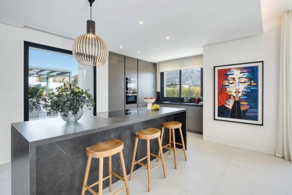Cerquilla 54B es una villa moderna en la exclusiva zona residencial de La Cerquilla, que ofrece una combinación excepcional de lujo y comodidad. Ubicada en el codiciado Valle del Golf de Marbella, la propiedad disfruta de vistas al mar y a la montaña, además de estar a solo minutos de todas las comodidades clave. Su diseño contemporáneo maximiza la luz natural, con puertas correderas de cristal de suelo a techo que conectan a la perfección los espacios interiores y exteriores. La distribución de planta abierta mejora tanto la funcionalidad como la sofisticación, con una elegante cocina moderna que cuenta con una isla central de mármol y electrodomésticos de última generación integrados. Diseñados para disfrutar durante todo el año, los espacios exteriores están pensados para la relajación y el entretenimiento. Las amplias terrazas ofrecen zonas de comedor al aire libre y espacios de descanso, mientras que la piscina privada se complementa con una elegante pérgola en su extremo. Una kitchenette exterior con barbacoa integrada añade atractivo a la propiedad, convirtiéndola en un lugar ideal para reuniones sociales. La escalera flotante conduce a la primera planta, donde cinco dormitorios bien distribuidos garantizan confort y privacidad. La suite principal destaca por su amplitud, con acceso directo a la terraza y un lujoso baño en suite que refleja la esencia del alto standing. La villa también cuenta con un impresionante nivel de entretenimiento, equipado con un bar a medida y una zona de televisión, perfecta para socializar. Una cuidada iluminación realza la propiedad por la noche, transformando la atmósfera tanto en el interior como en las terrazas cubiertas. Un camino privado conduce a la entrada cerrada y a la zona de aparcamiento, garantizando privacidad y exclusividad. Cerquilla 54B es una opción refinada para quienes buscan un hogar moderno en una de las ubicaciones más deseadas de Marbella.