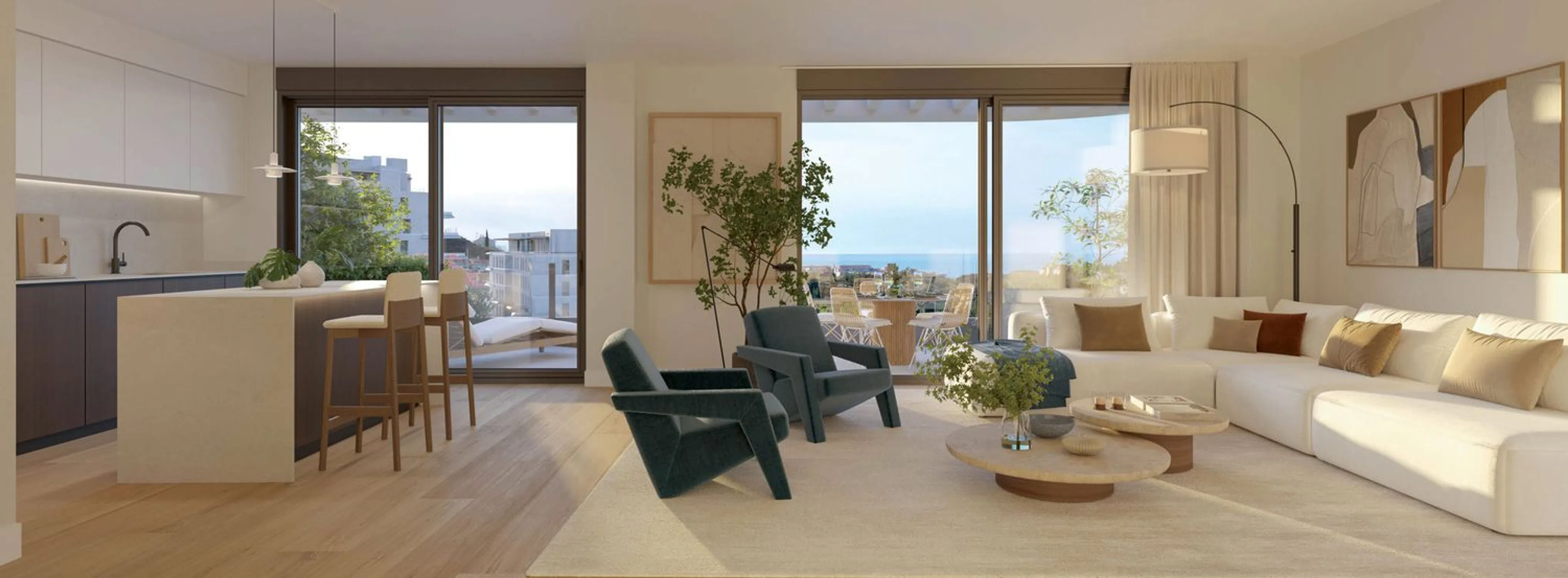 Estas viviendas de 2 y 3 dormitorios han sido cuidadosamente diseñadas para ofrecer el máximo confort y funcionalidad. Disponen de interiores luminosos, distribuciones eficientes, acabados de alta calidad y amplias terrazas con espectaculares vistas al mar Mediterráneo y a jardines privados.