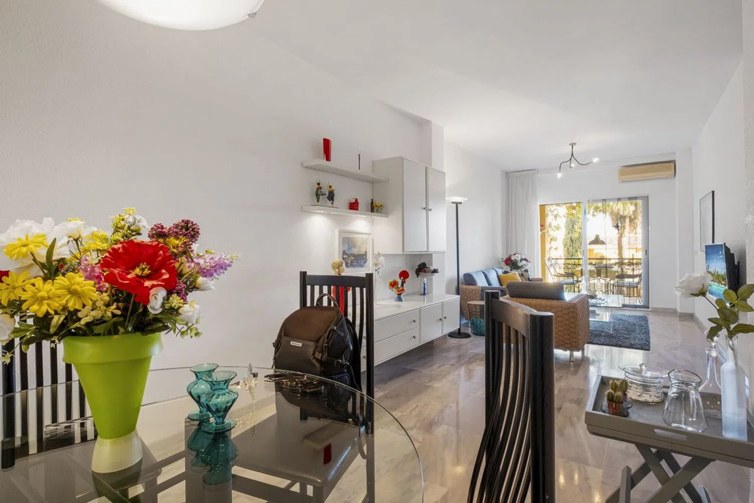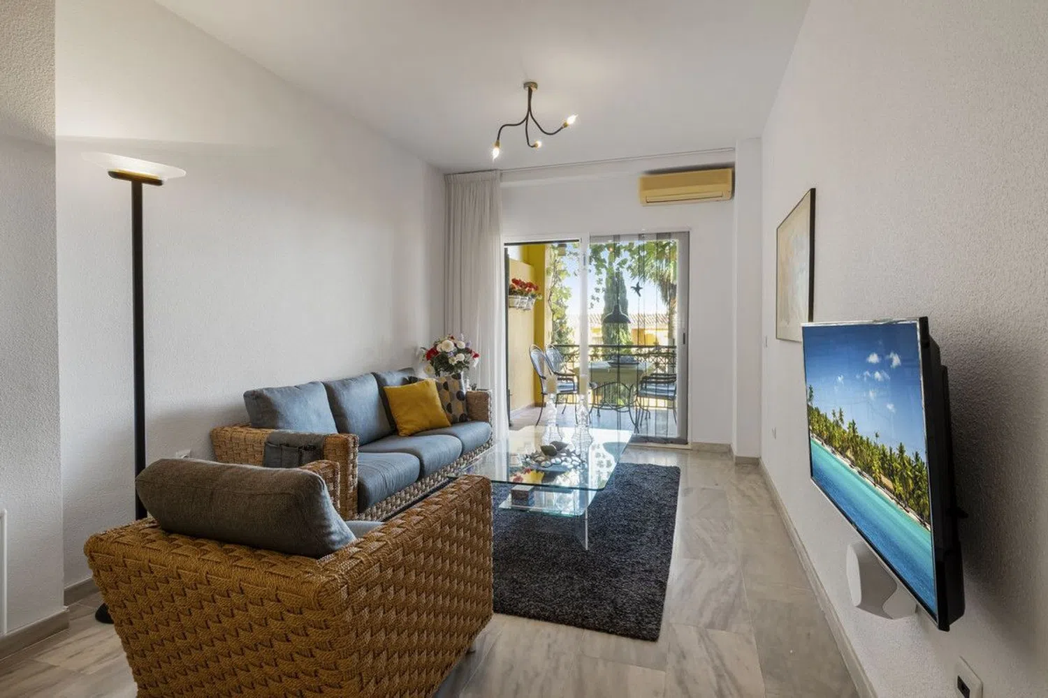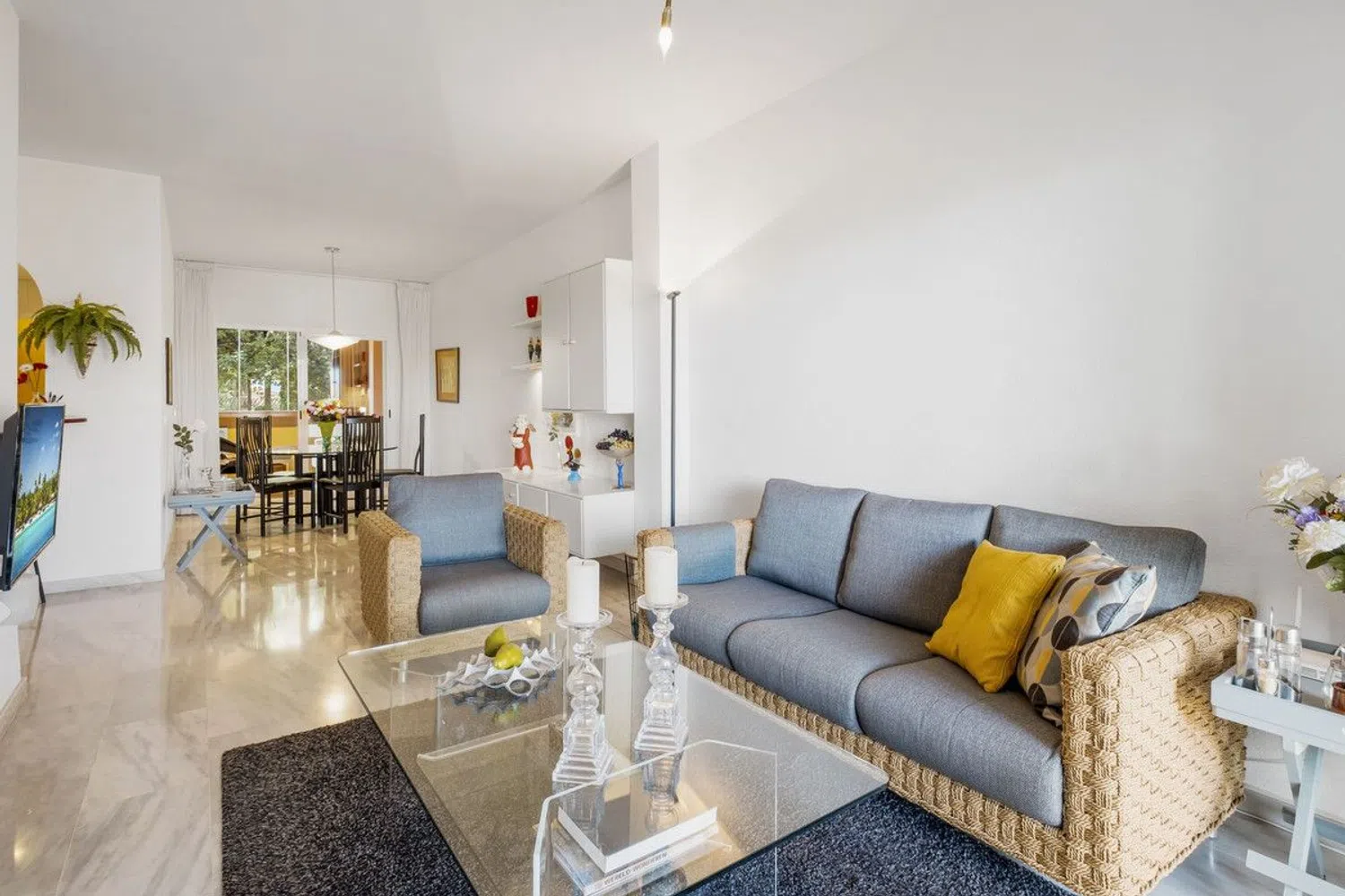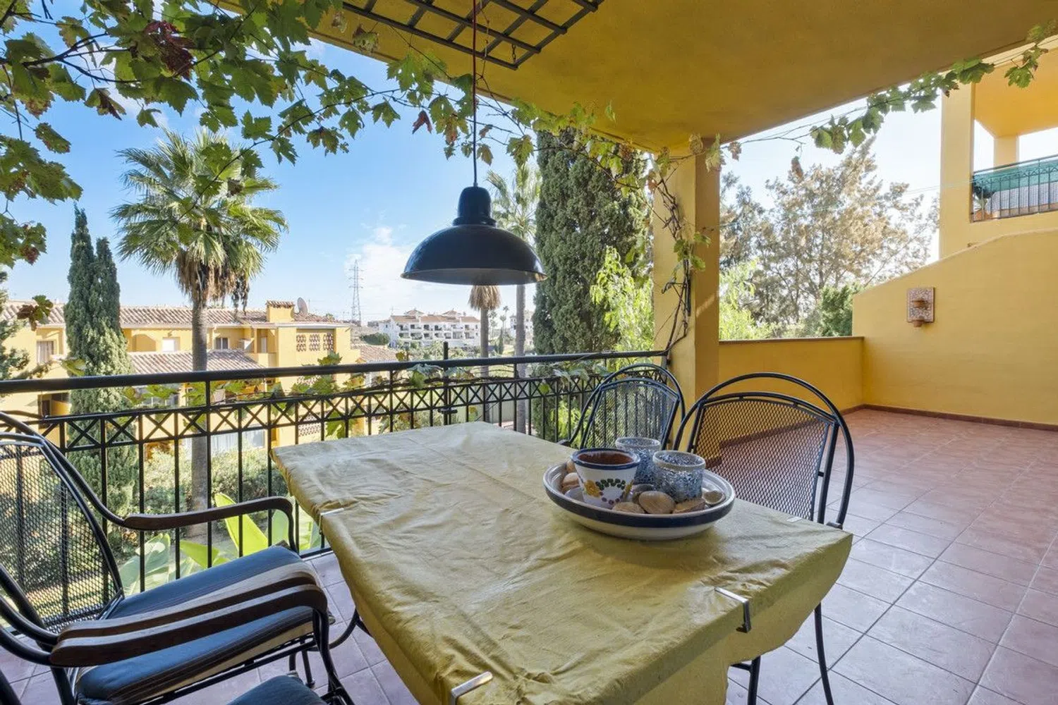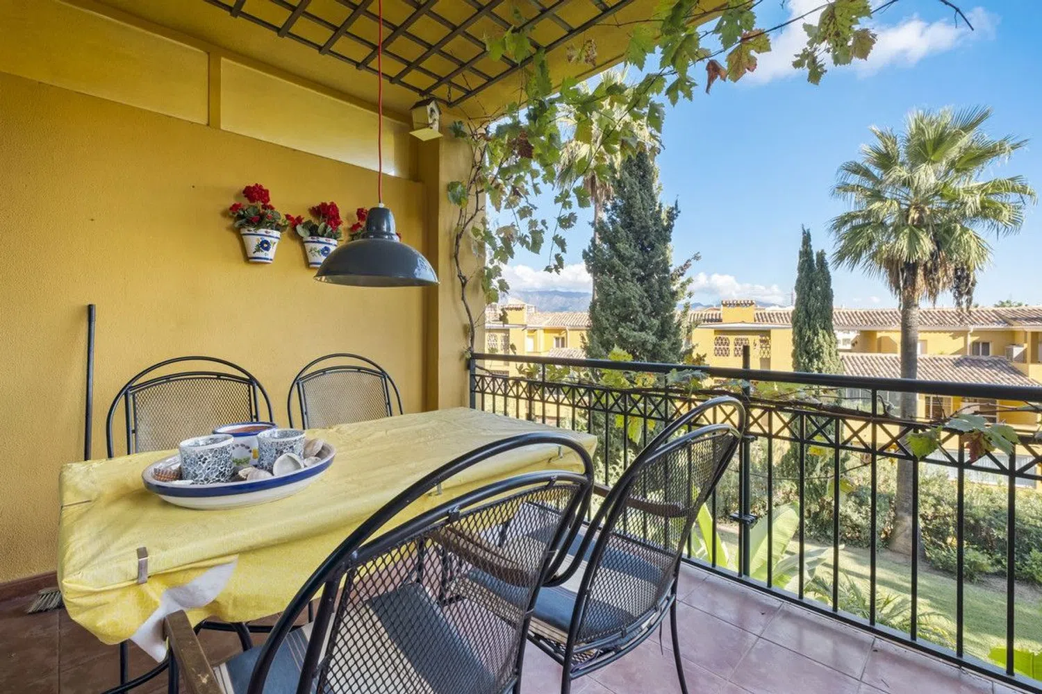 Bienvenido a este hermoso apartamento en el corazón de Mijas, que ofrece una combinación perfecta de comodidad y elegancia. Esta espaciosa propiedad de 2 dormitorios y 2 baños se extiende sobre 100 m² de espacio habitable, con 51 m² adicionales de terrazas en la parte delantera y trasera, ideales para adoptar el estilo de vida mediterráneo. Este apartamento es una opción fantástica como casa de vacaciones y una excelente oportunidad de inversión. Está en impecables condiciones y listo para toques personales o mejoras. La sala de estar es cálida y acogedora, y con 2 terrazas, hay mucho espacio para relajarse. La cocina totalmente equipada incluye una encantadora barra de desayuno con dos taburetes, perfecta para una cena informal o un café por la mañana. Salga a disfrutar de las impresionantes vistas al campo de golf, un telón de fondo sereno para relajarse en las terrazas. La propiedad está ubicada en una urbanización bien mantenida que ofrece comodidades adicionales, que incluyen una piscina compartida y una cancha de pádel para los entusiastas del deporte. Las terrazas también están realzadas por las vides, añadiendo un toque de encanto mediterráneo a su espacio al aire libre. La hermosa playa está a solo 2 kilómetros de distancia, ideal para un paseo por la playa o un día relajante junto al mar, y los restaurantes más cercanos están a solo 500 metros de distancia, ofreciendo una variedad de opciones para comer cerca. Para los amantes del golf, la propiedad está cerca del Club de Golf Miraflores, lo que se suma a su atractivo. Ubicada en la encantadora zona de Mijas, esta casa está rodeada de restaurantes locales, campos de golf y toda la belleza que la región tiene para ofrecer. Estamos encantados de presentarle esta propiedad excepcional. No pierda la oportunidad de hacerla suya: un paraíso de lujo, comodidad y naturaleza en la Costa del Sol.