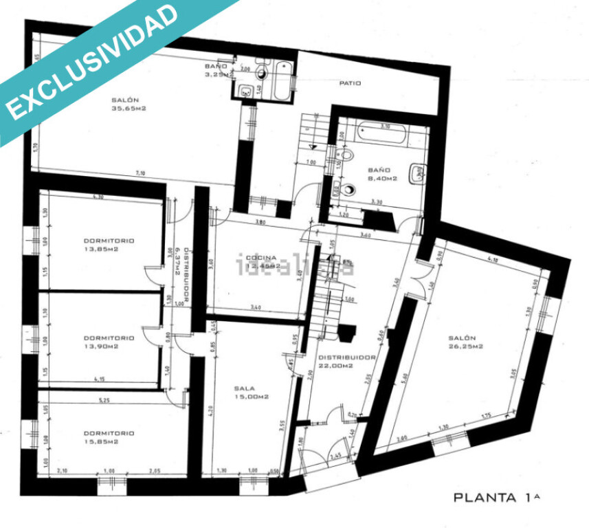 Tiene una monumental fachada de unos 42 m que hace que todas las dependencias sean exteriores.