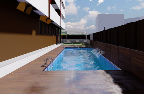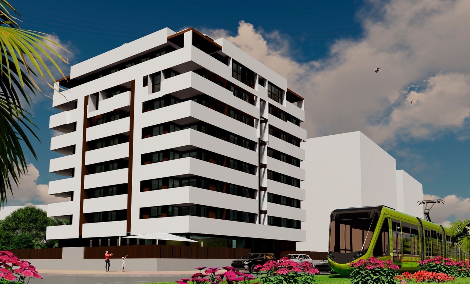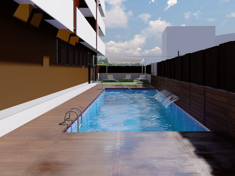 . INICIO de OBRASEdificio de diseño contemporáneo con arquitectura de vanguardia, materiales de alta calidad, eficiencia energética A.41 viviendas de 2, 3 y 4 dormitoriosÁticos de 2,3 y 4 dormitoriosMemoria de calidades:Zona ajardinada, piscina, gimnasio y sala usos múltiples Incluye plaza de garaje con preinstalación para coche eléctrico y amplio trasteroCocina alta gama totalmente instalada incluidos los electrodomésticos marca Bosch.Aire acondicionado totalmente instalado con uso independiente en cada una de las estancias con maquina frio-calor incluida.Suelos para elegir entre 15 opciones de tarima de madera o porcelánico gran formato marca KerabenArmarios empotrados forrados en textil con cajones, altillo y barra incorporadosPuertas para elegir entre dm lacado en blanco o madera robleBaños de diseño de diseño sanitarios marca Duravit Grifería alta calidad marca HansgrohePersianas de aluminio con accionamiento motorizadoAmplias terrazas.