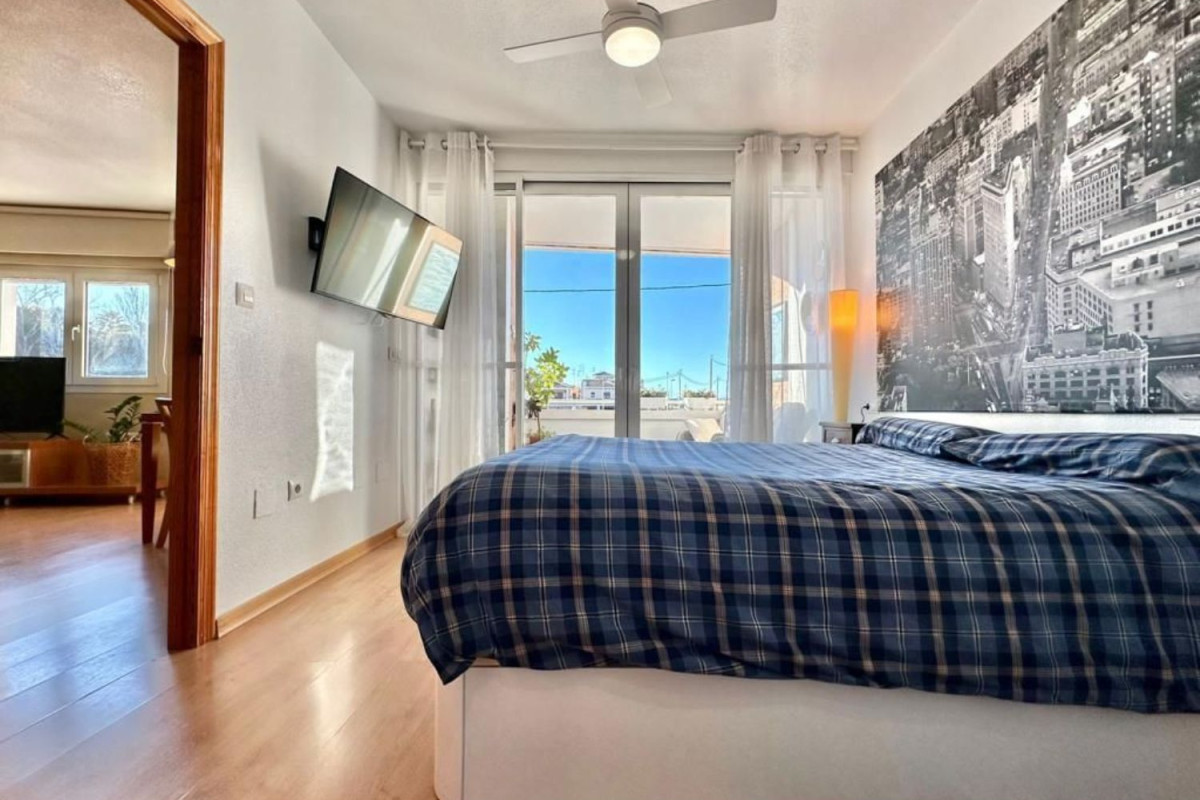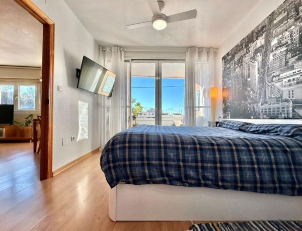 Piso en San Pedro del Pinatar de 80 metros cuadrados. Tiene dos habitaciones, una de ellas con vestidor y dos baños, uno de ellos con ducha e hidromasaje, cocina independiente equipada y con un patio que se puede usar como lavadero, salón-comedor. Un balcón precioso con sillones, que ofrece mucha luz natural a la casa. A este balcón puedes acceder desde el dormitorio principal. Edificio con buenos vecinos. [IW].