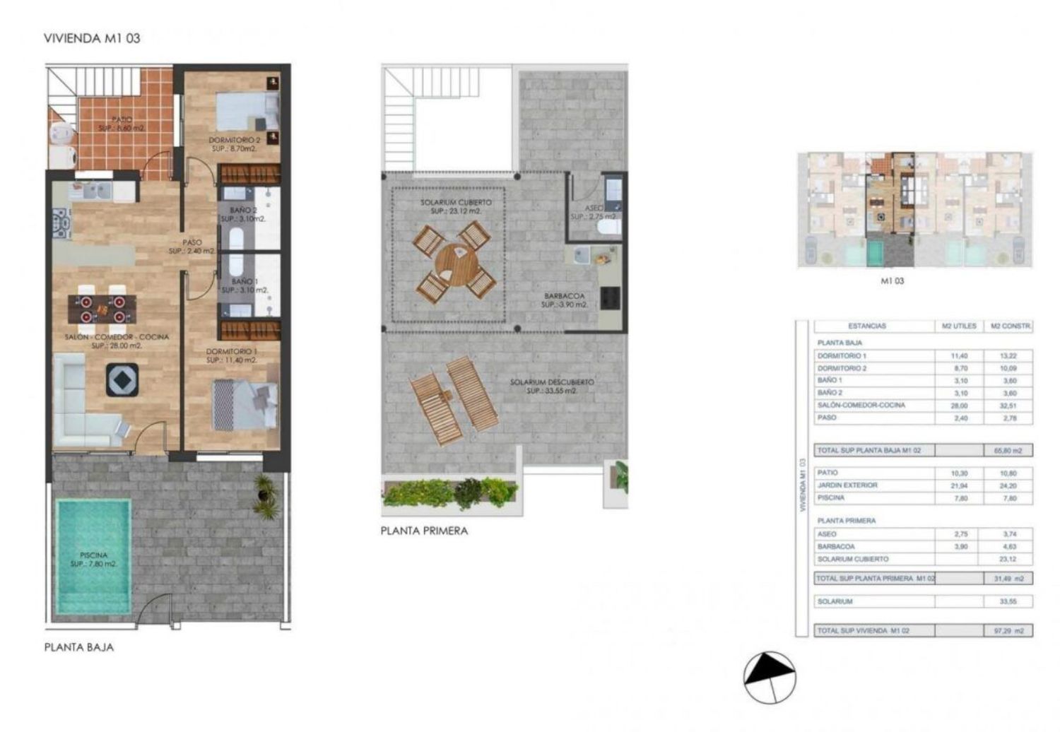 VIVIENDAS DE NUEVA CONSTRUCCIÓN EN TORRE-PACHECO Complejo de nueva construcción de 2 villas adosadas estilo bungalow en esquina y 2 adosados situados en Torre Pacheco, Costa Cálida, España. Propiedades de diseño a estrenar con fabulosas terrazas en la azotea con cocina exterior, barbacoa y aseo. Interiores de lujo y los mejores accesorios. Propiedades disponibles con una selección de estilos de unidades de cocina y azulejos. Las piscinas son un extra opcional y hay una gran zona de patio y aparcamiento seguro. Situado en una zona codiciada de Torre Pacheco, un pequeño pueblo tradicional español a 20 minutos del Mar Menor. Esta ubicación ideal le da mucho más por su dinero. A poca distancia de los servicios locales y muchos bares y restaurantes. Torre Pacheco está rodeado de galardonados campos de golf y toda la región está considerada como uno de los lugares más saludables de España. El sol brilla una media de 320 días al año. No en vano, esta franja costera recibe el nombre de "Costa Cálida". Los niveles de humedad son muy bajos. Todo ello da lugar a una combinación perfecta de mar, clima subtropical, mucha luz y aire limpio. Las fantásticas playas de la Costa Cálida están a 10 minutos. Red de autopistas en las cercanías para poder desplazarse a otras zonas de forma rápida y sencilla. El flamante aeropuerto internacional de Murcia está a 20 minutos.