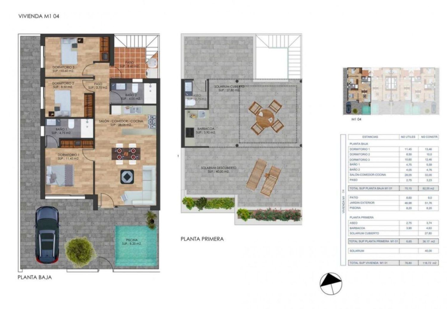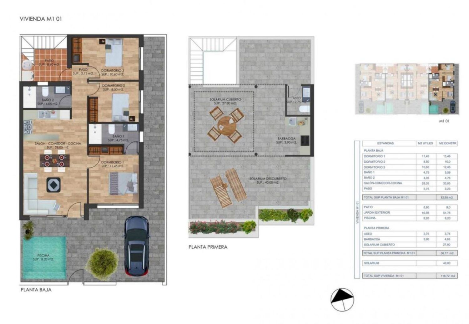 VIVIENDAS DE NUEVA CONSTRUCCIÓN EN TORRE-PACHECO Complejo de nueva construcción de 2 villas adosadas estilo bungalow en esquina y 2 adosados situados en Torre Pacheco, Costa Cálida, España. Propiedades de diseño a estrenar con fabulosas terrazas en la azotea con cocina exterior, barbacoa y aseo. Interiores de lujo y los mejores accesorios. Propiedades disponibles con una selección de estilos de unidades de cocina y azulejos. Las piscinas son un extra opcional y hay una gran zona de patio y aparcamiento seguro. Situado en una zona codiciada de Torre Pacheco, un pequeño pueblo tradicional español a 20 minutos del Mar Menor. Esta ubicación ideal le da mucho más por su dinero. A poca distancia de los servicios locales y muchos bares y restaurantes. Torre Pacheco está rodeado de galardonados campos de golf y toda la región está considerada como uno de los lugares más saludables de España. El sol brilla una media de 320 días al año. No en vano, esta franja costera recibe el nombre de "Costa Cálida". Los niveles de humedad son muy bajos. Todo ello da lugar a una combinación perfecta de mar, clima subtropical, mucha luz y aire limpio. Las fantásticas playas de la Costa Cálida están a 10 minutos. Red de autopistas en las cercanías para poder desplazarse a otras zonas de forma rápida y sencilla. El flamante aeropuerto internacional de Murcia está a 20 minutos.
