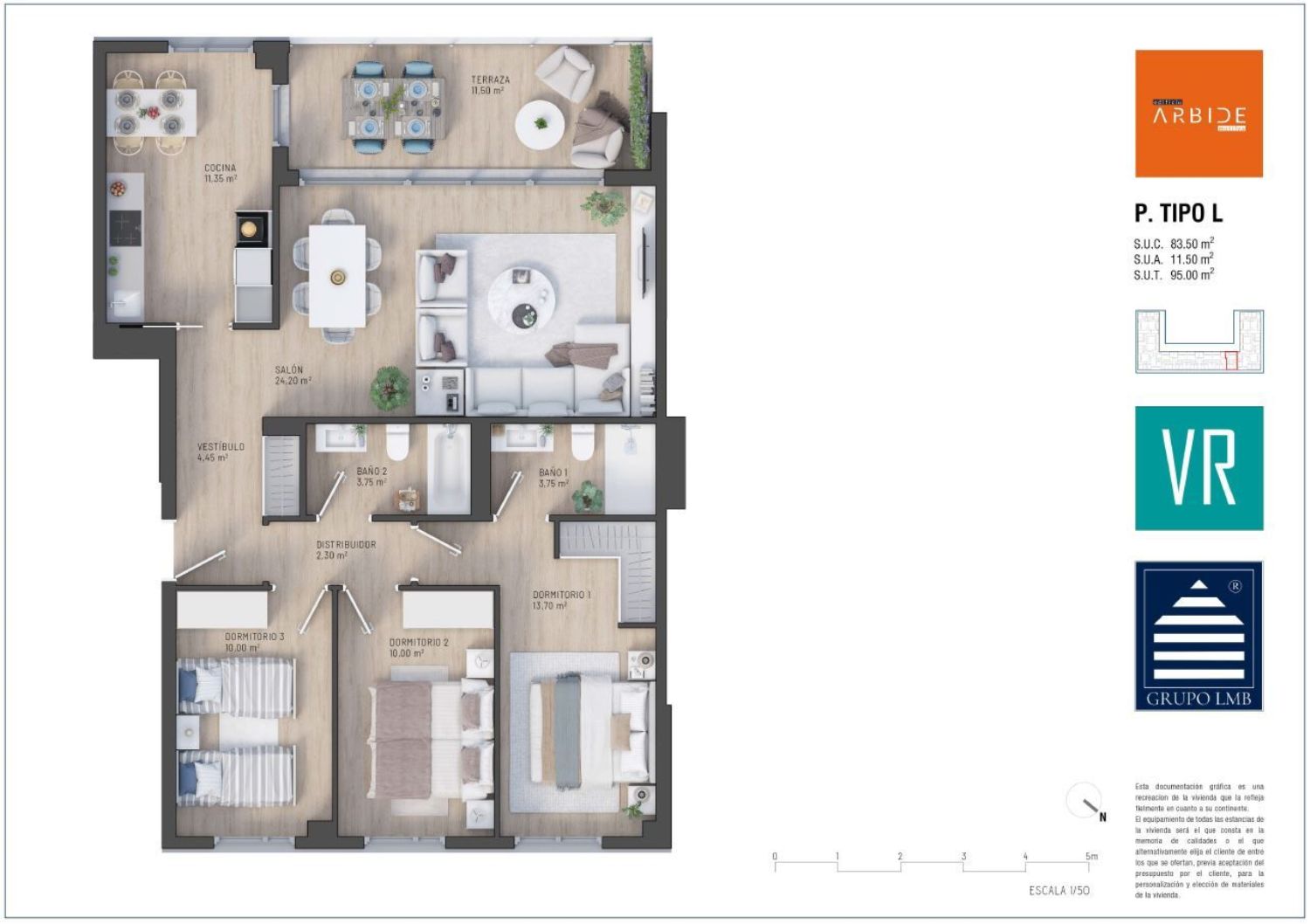 Edificio ARBIDE es una nueva promoción de 92 viviendas libres, situadas en la calle Arbide. es un edificio de 4 alturas, con viviendas de 1,2 y 3 dormitorios con terraza y bajos con jardín. La urbanización pública la conforma una gran zona ajardinada con arbolado y parque infantil convirtiéndose en zona de encuentro esparcimiento y relax para los vecinos. Diseño, luminosidad y confort. El salón y la terraza se fusionan en un único espacio según distribuciones, mediante la apertura de un amplio ventanal aportando gran luminosidad y continuidad entre las dos estancias.Según tipología de viviendas la cocina puede estar integrada en el salón comedor (cocina con isla en diferentes acabados) ó de forma independiente con óptima distribución de espacio y gran capacidad de almacenaje con diseño en líneas rectas con varias combinaciones tanto en muebles como en encimeras.Baños equipados con mueble de lavabo, espejo, inodoro, ducha extraplana termostática en baños principal y bañera en baño de vestíbulo.Armarios empotrados en habitación dormitorio principal y vestíbulo según tipología de vivienda, con acabado exterior en blanco, acabado interior con forro, balda maletero y balda para colgar.Terrazas con iluminación mediante focos led empotrados. En terrazas principales punto de corriente estanco y toma de agua.Persianas motorizadas en salón y cocina.Garajes y trasteros vinculados en el sótano del edificio. El edificio dispondrá de Calificación Energética A.